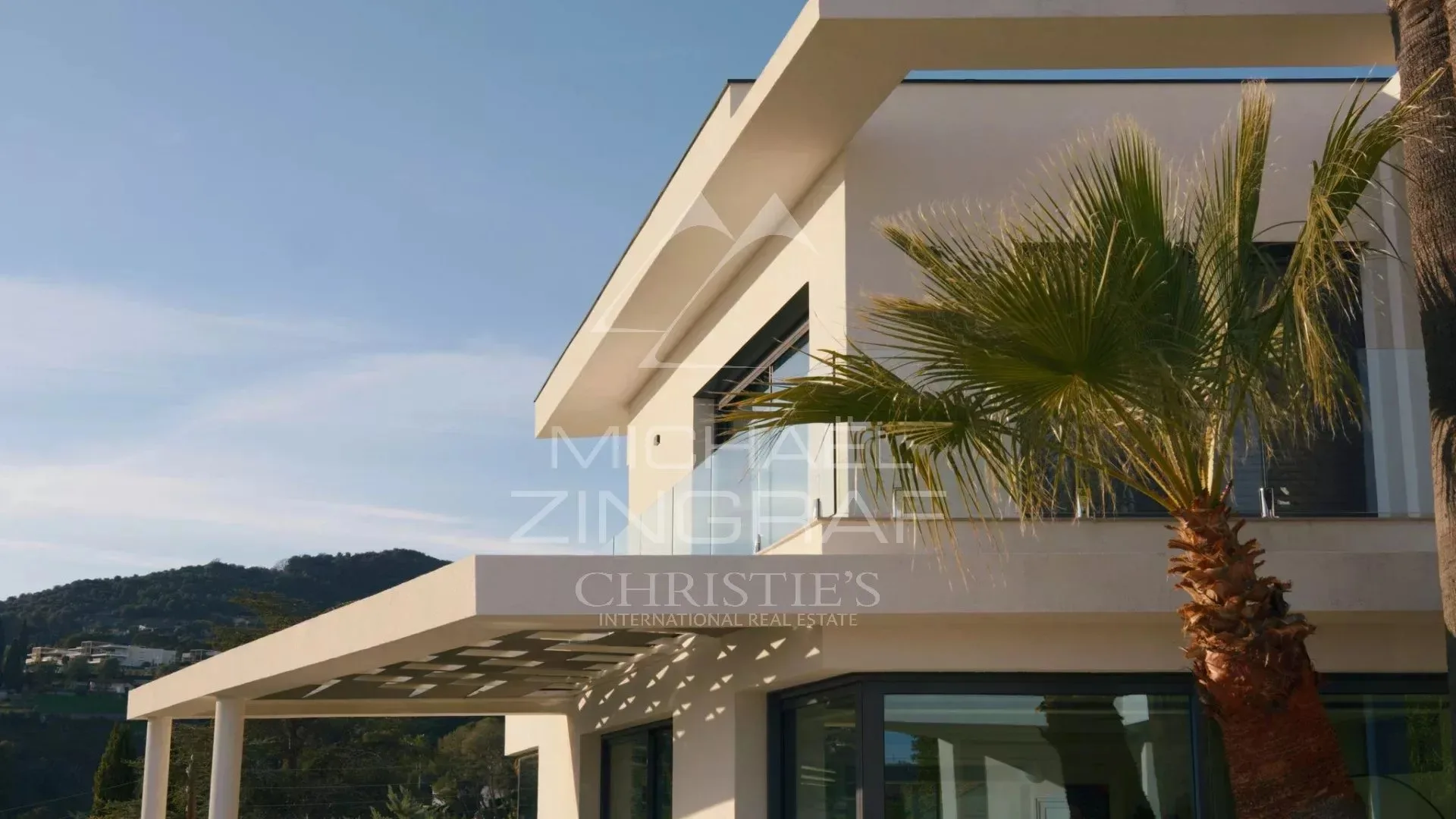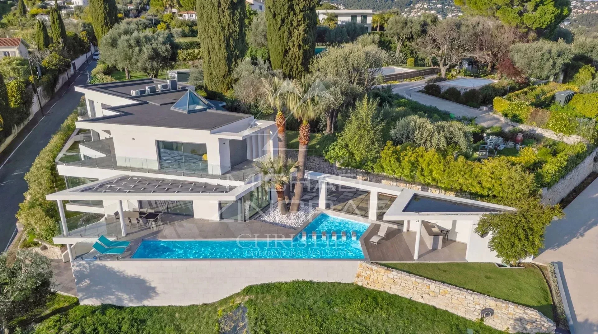 Located in the residential neighbourhood of Rimiez, overlooking Nice, within a private estate, this contemporary villa enjoys a commanding position offering unobstructed views of the city of Nice and the Mediterranean Sea. Set on landscaped grounds of over 3,000 m², the property is spread over three levels, served by an internal lift, and is distinguished by its natural light and generous volumes.