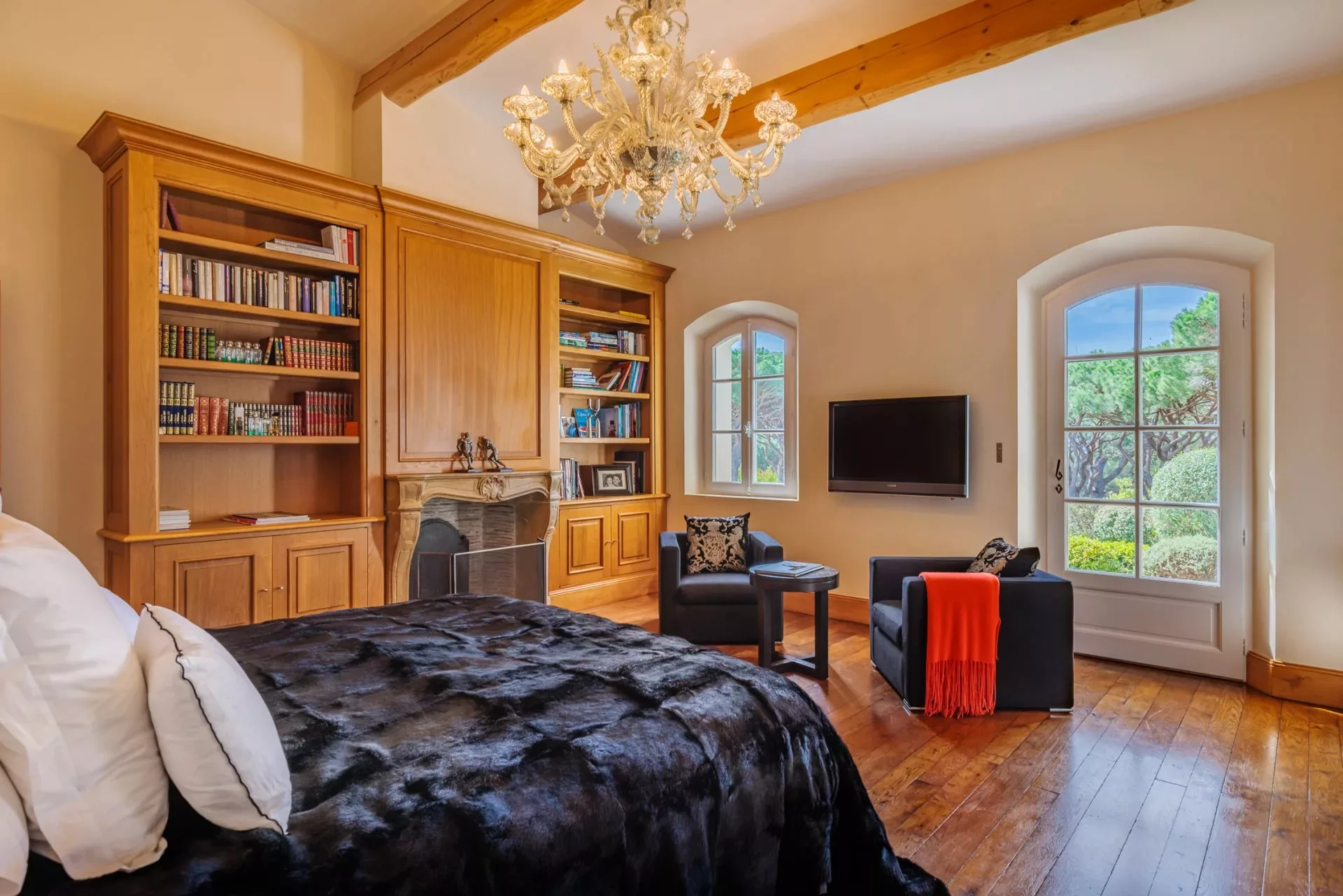 It has a master bedroom with fireplace and bathroom with shower, toilet and dressing room communicating with the second bedroom en suite, as well as 3 other bedrooms with bathroom or showers and a library.