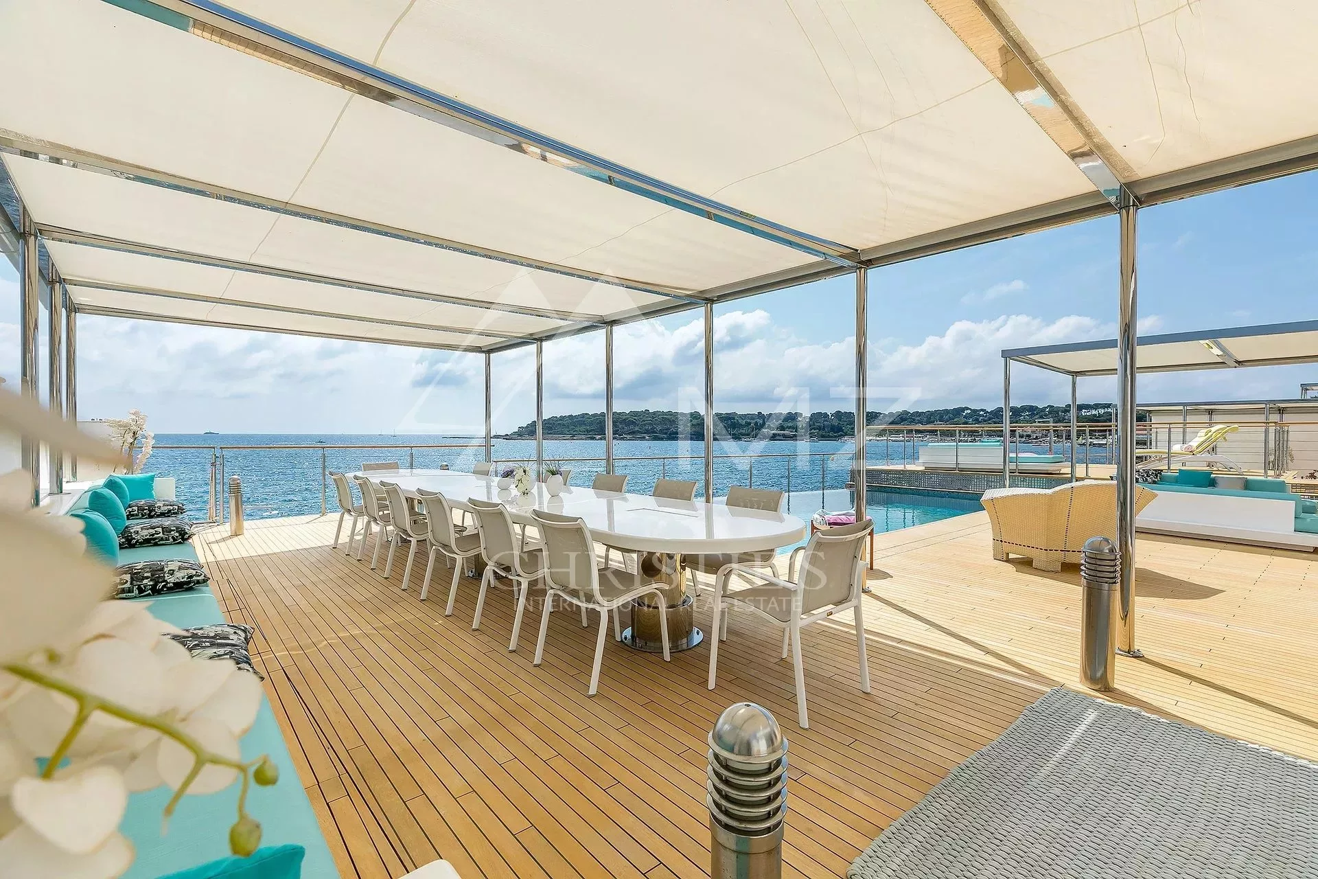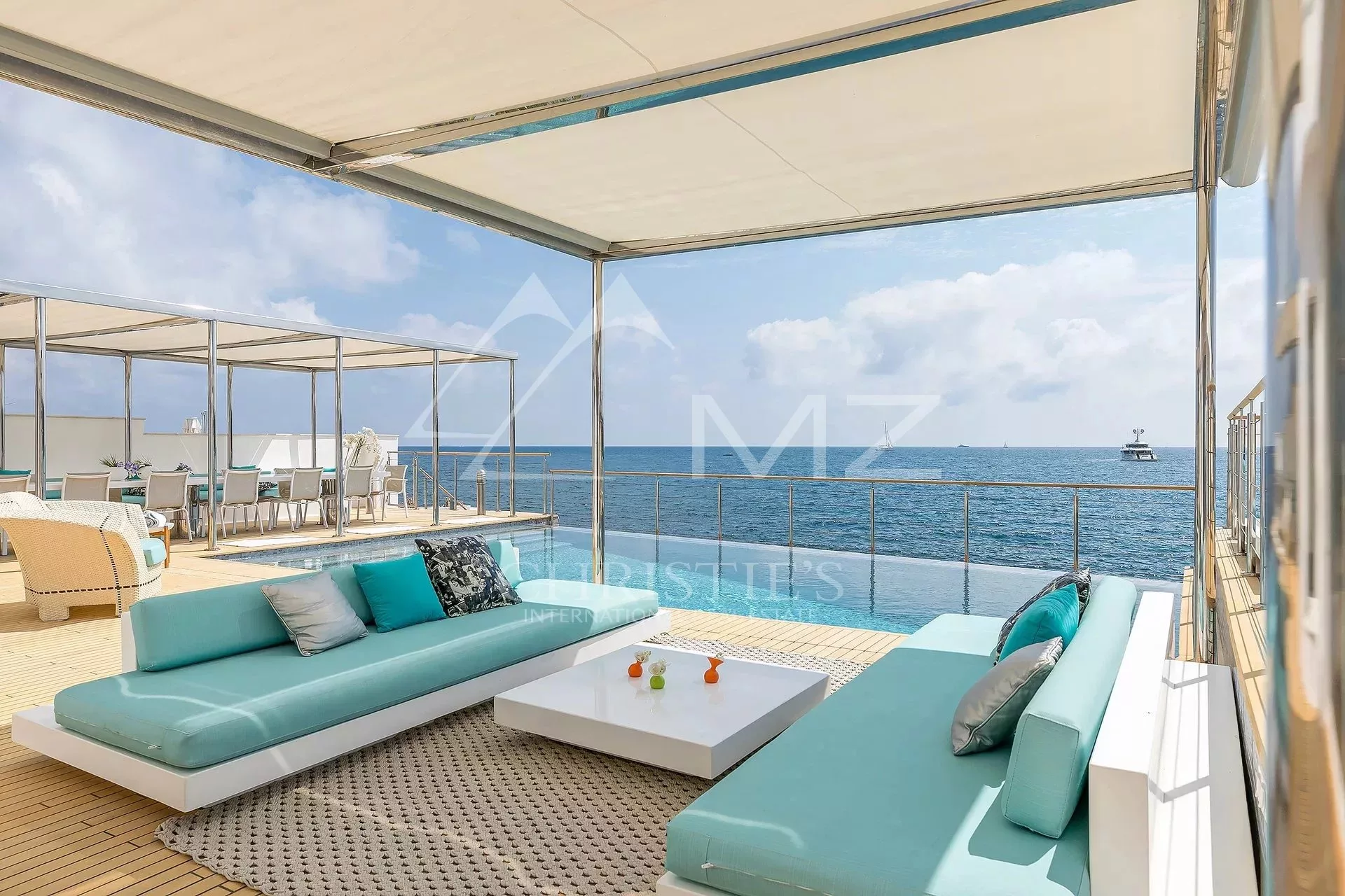 D’excellent standing et avec des prestations haut de gamme cette magnifique villa contemporaine d’environ 160 m2 offre calme, raffinement, ainsi qu’un accès direct à la mer. Composée d’une terrasse d’environ 309 m2 avec sa piscine à débordement, 3 chambres avec salle de bains, hammam, salle de sport, la propriété bénéficie d’une vue mer spectaculaire.