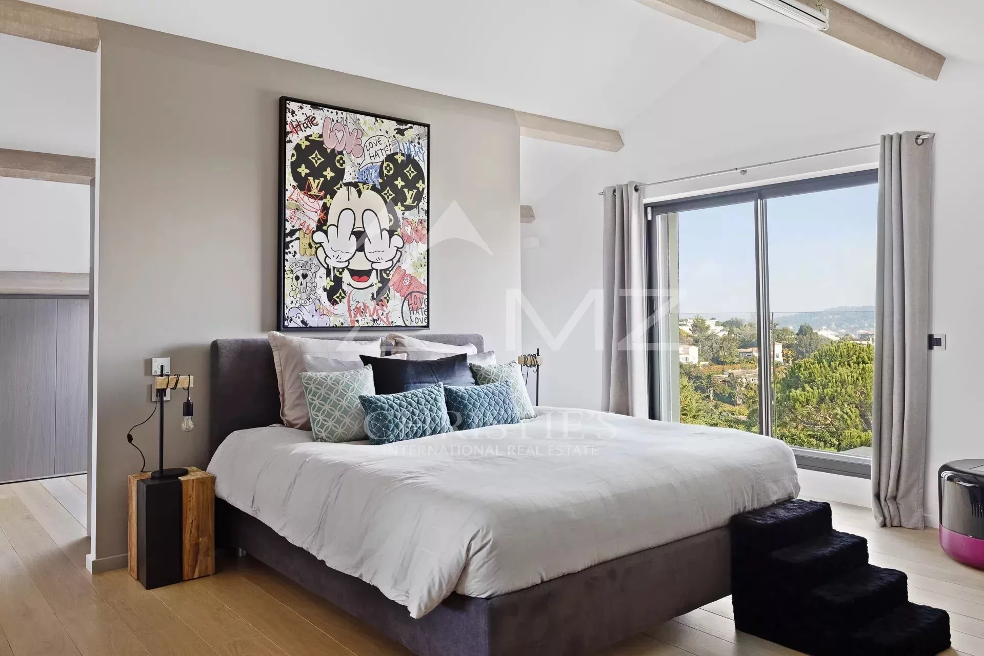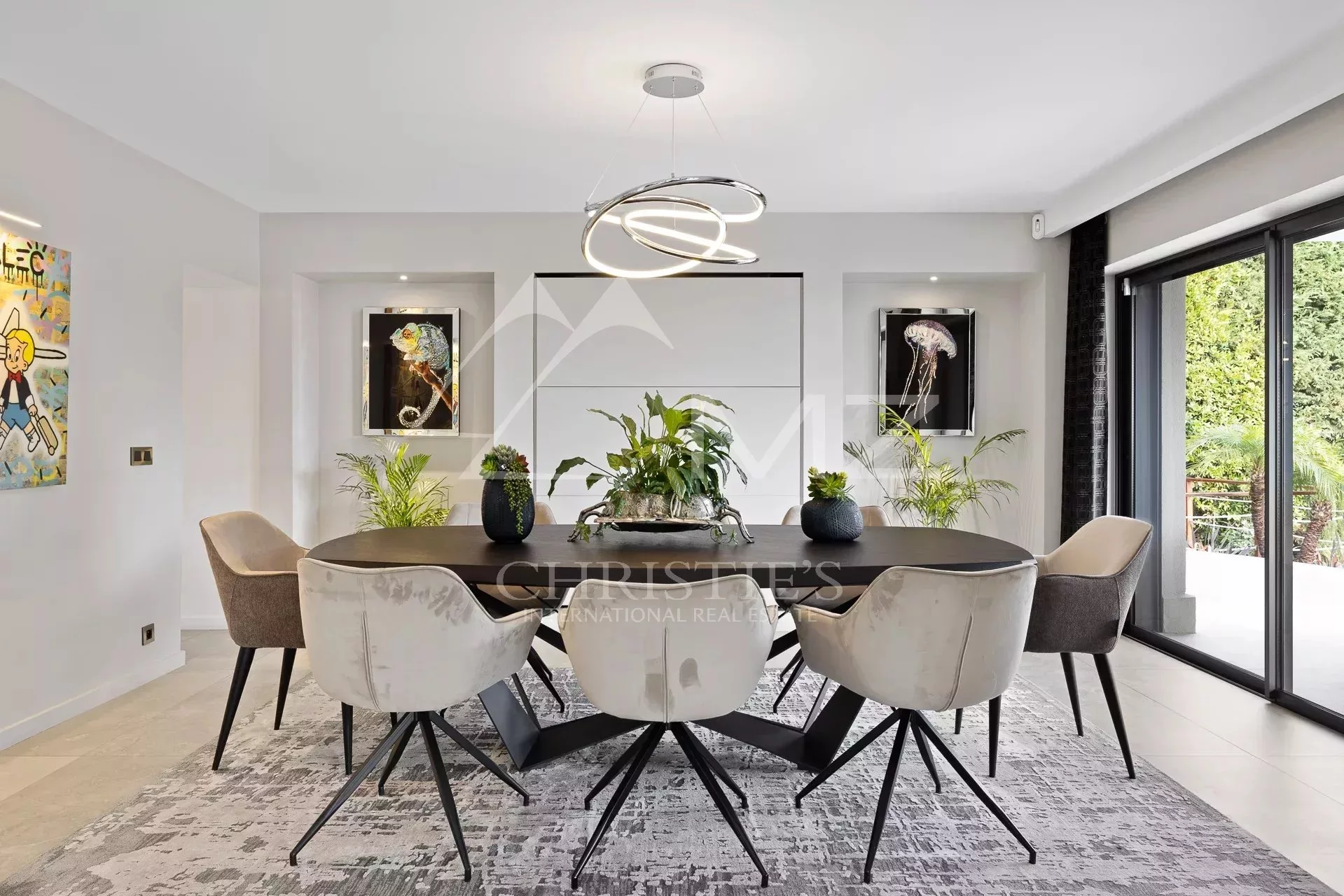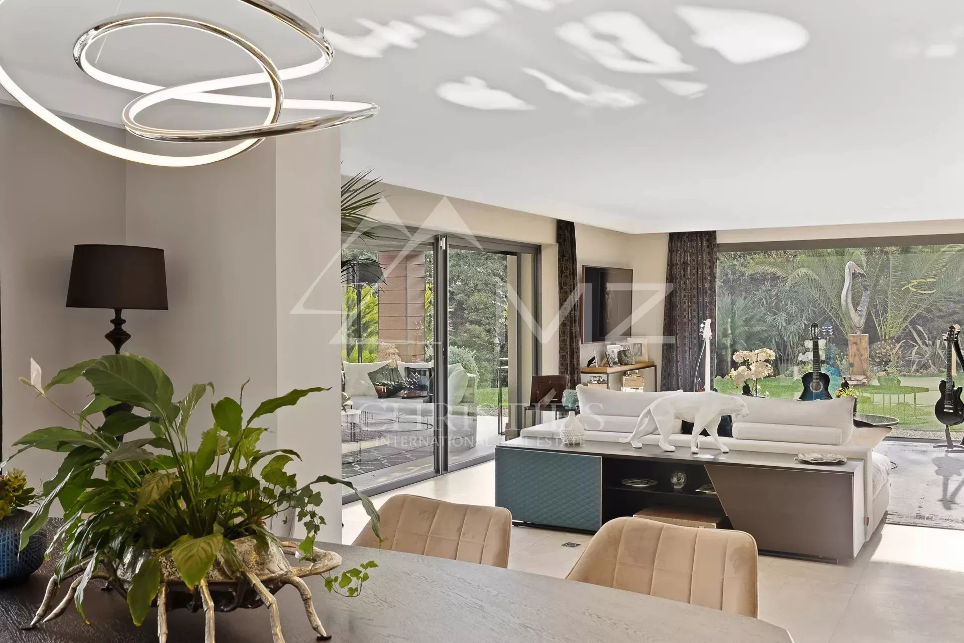 Idéalement située en plein cœur du quartier résidentiel de Super Cannes, superbe rénovation pour cette propriété moderne aux volumes généreux, d'environ 440 m2, offrant 5 suites, une cuisine, un séjour, une salle à manger, un studio de service et un studio d’enregistrement. Jardin de 2168m². Idéal musicien et famille.
