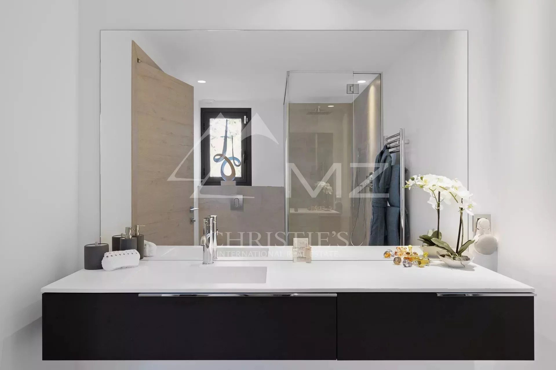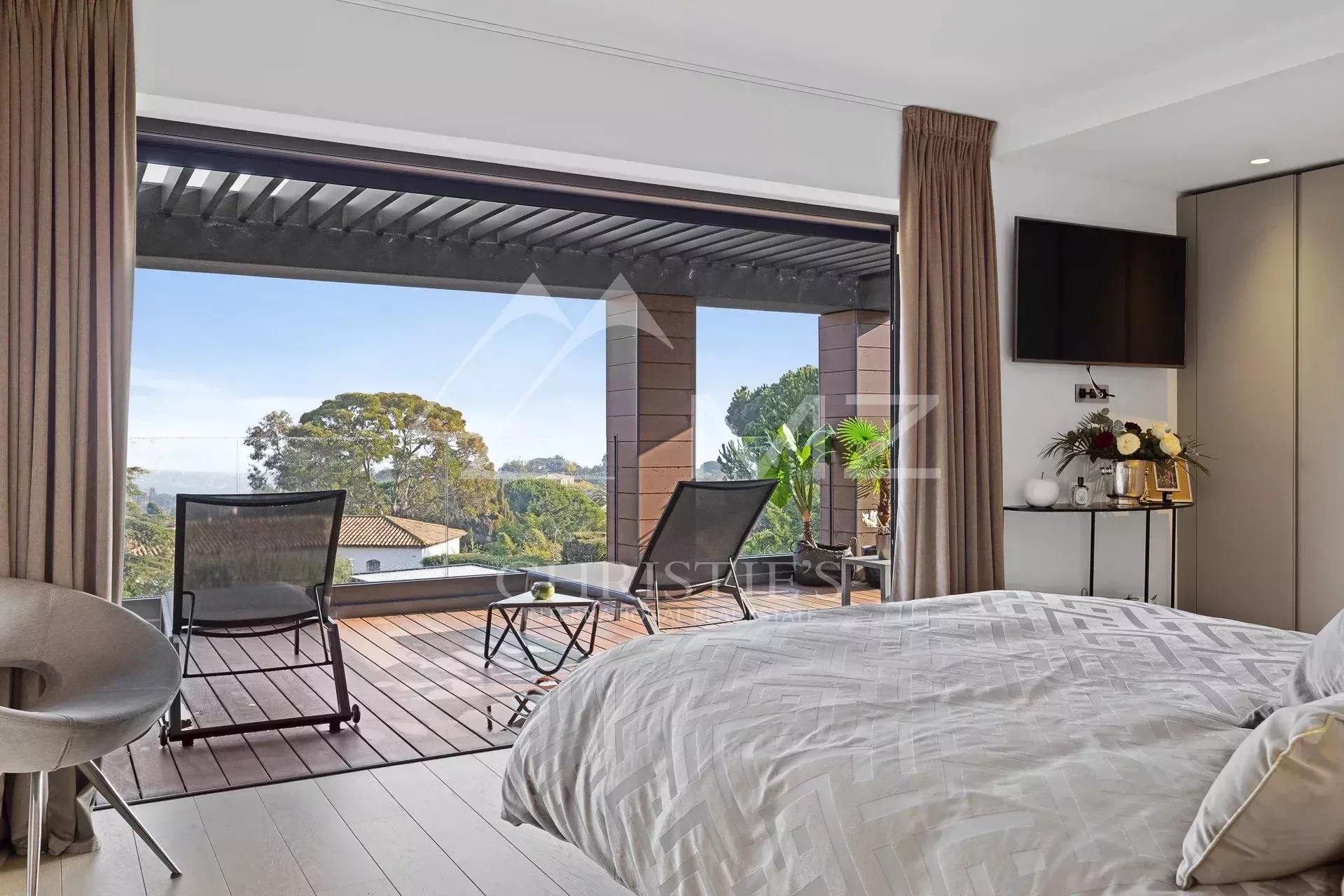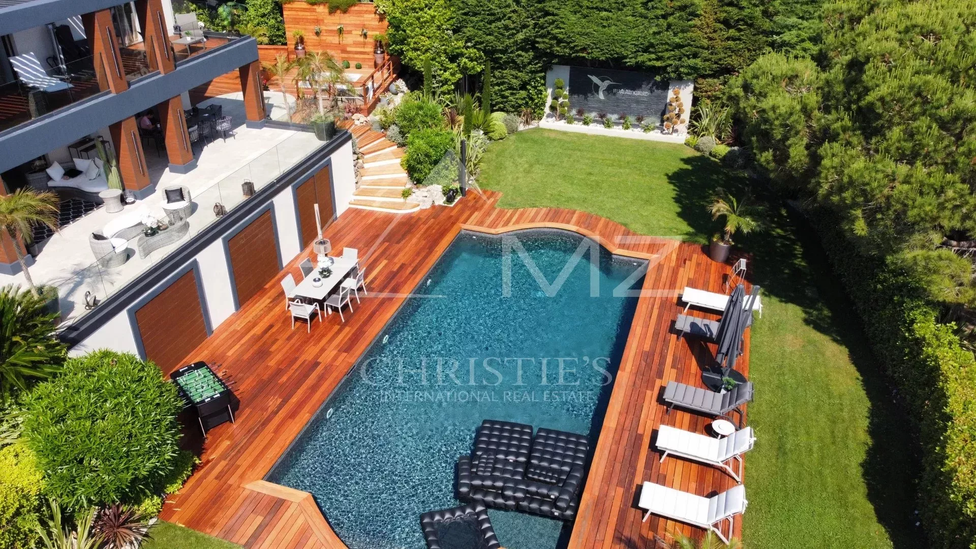 Idéalement située en plein cœur du quartier résidentiel de Super Cannes, superbe rénovation pour cette propriété moderne aux volumes généreux, d'environ 440 m2, offrant 5 suites, une cuisine, un séjour, une salle à manger, un studio de service et un studio d’enregistrement. Jardin de 2168m². Idéal musicien et famille.