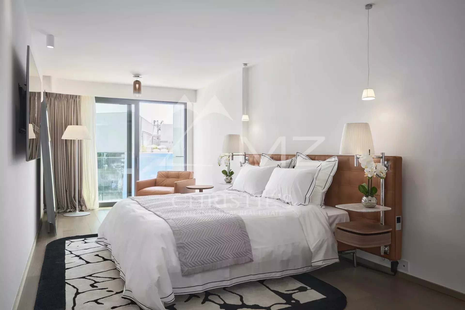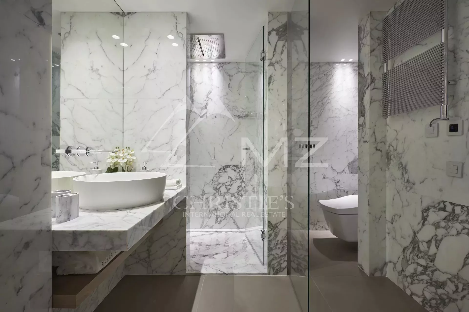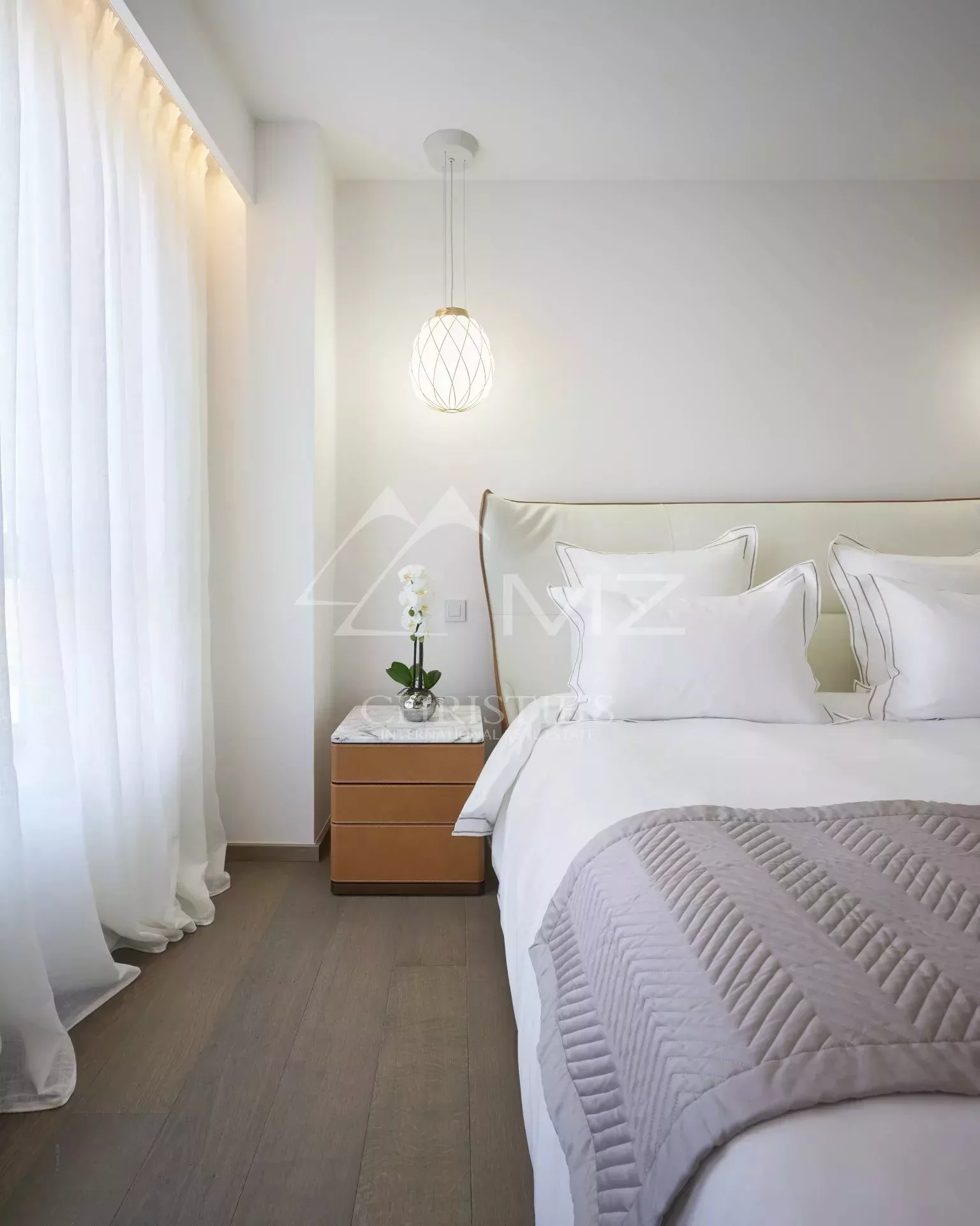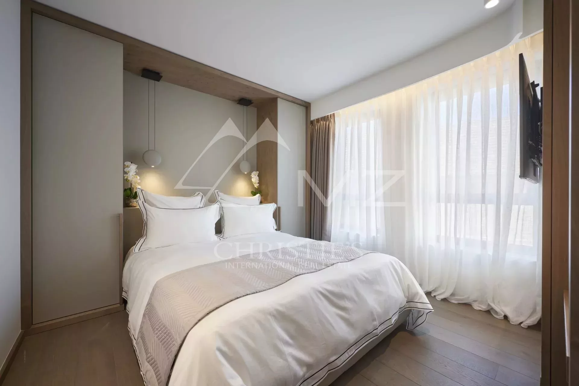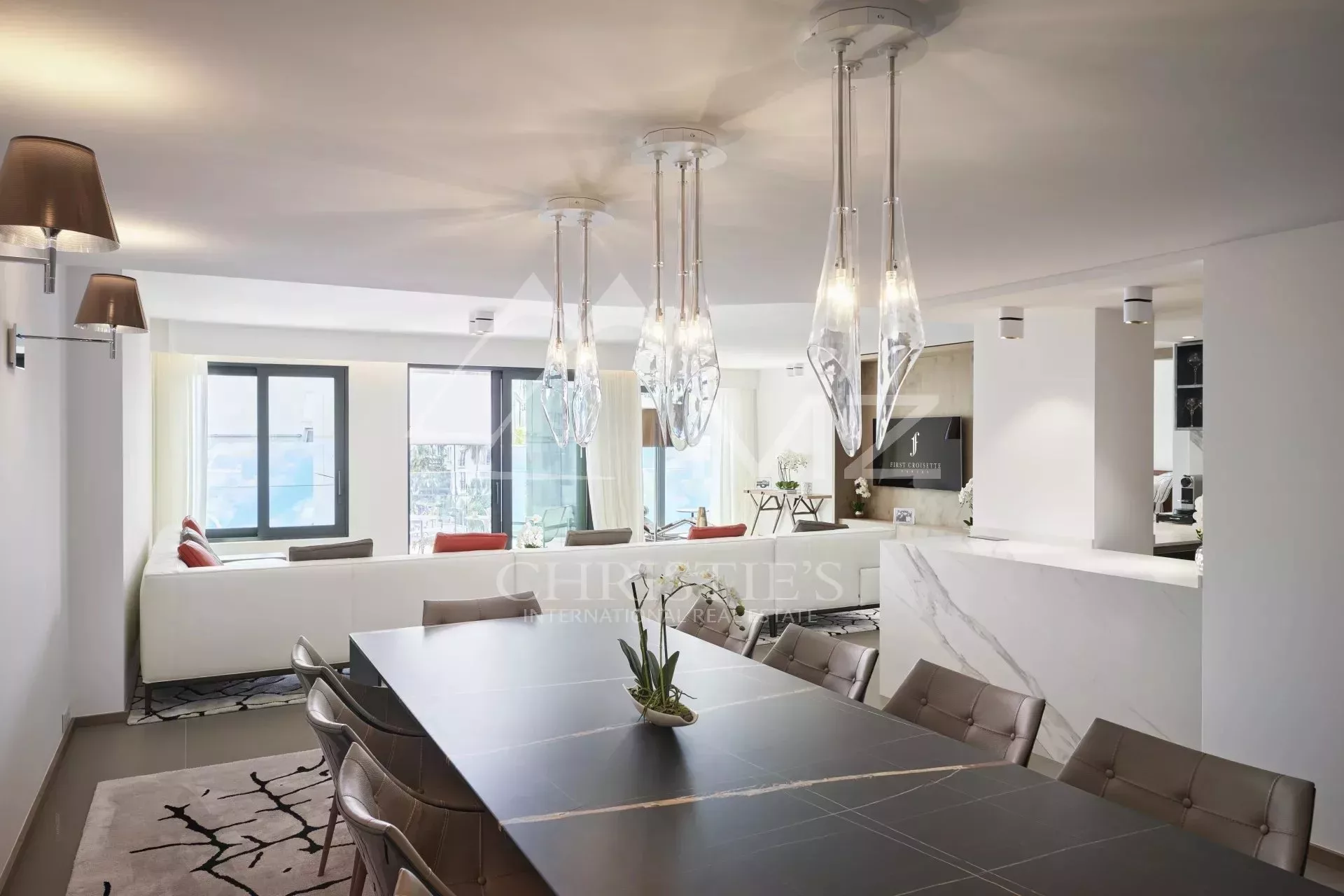 602 - Situé dans un immeuble neuf de la croisette, en face du palais des festivals, appartement de 174m² environ, comprenant : un séjour, une salle à manger, une cuisine équipée, deux chambres en suite avec salle de bains et douche, et une chambre avec salle d'eau. Service conciergerie sur place. Idéal congrès et vacances.