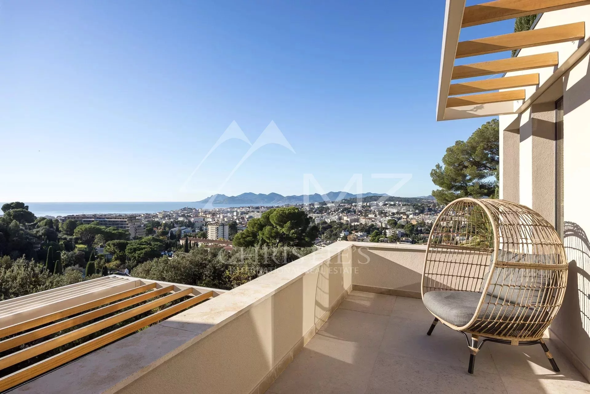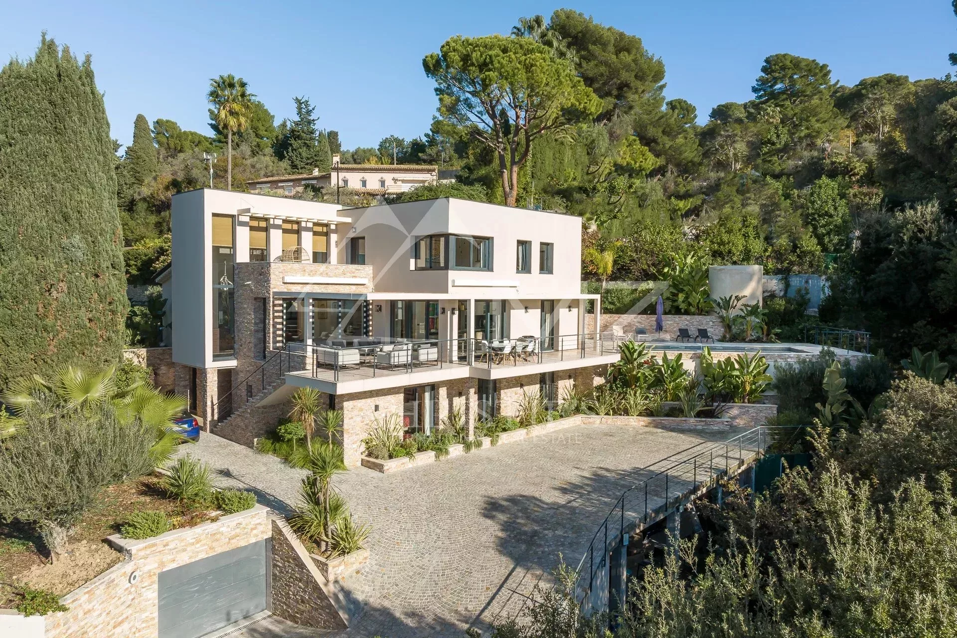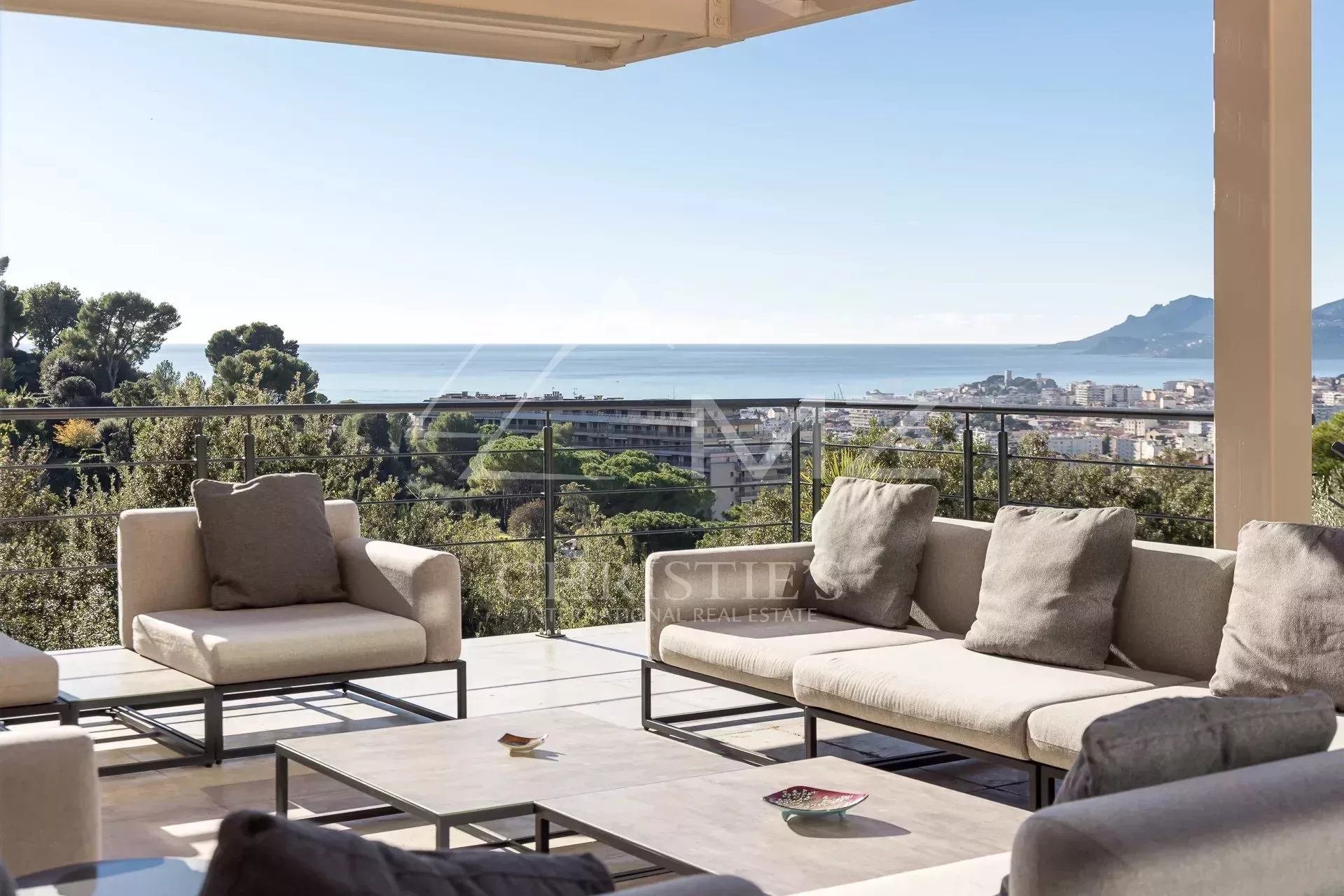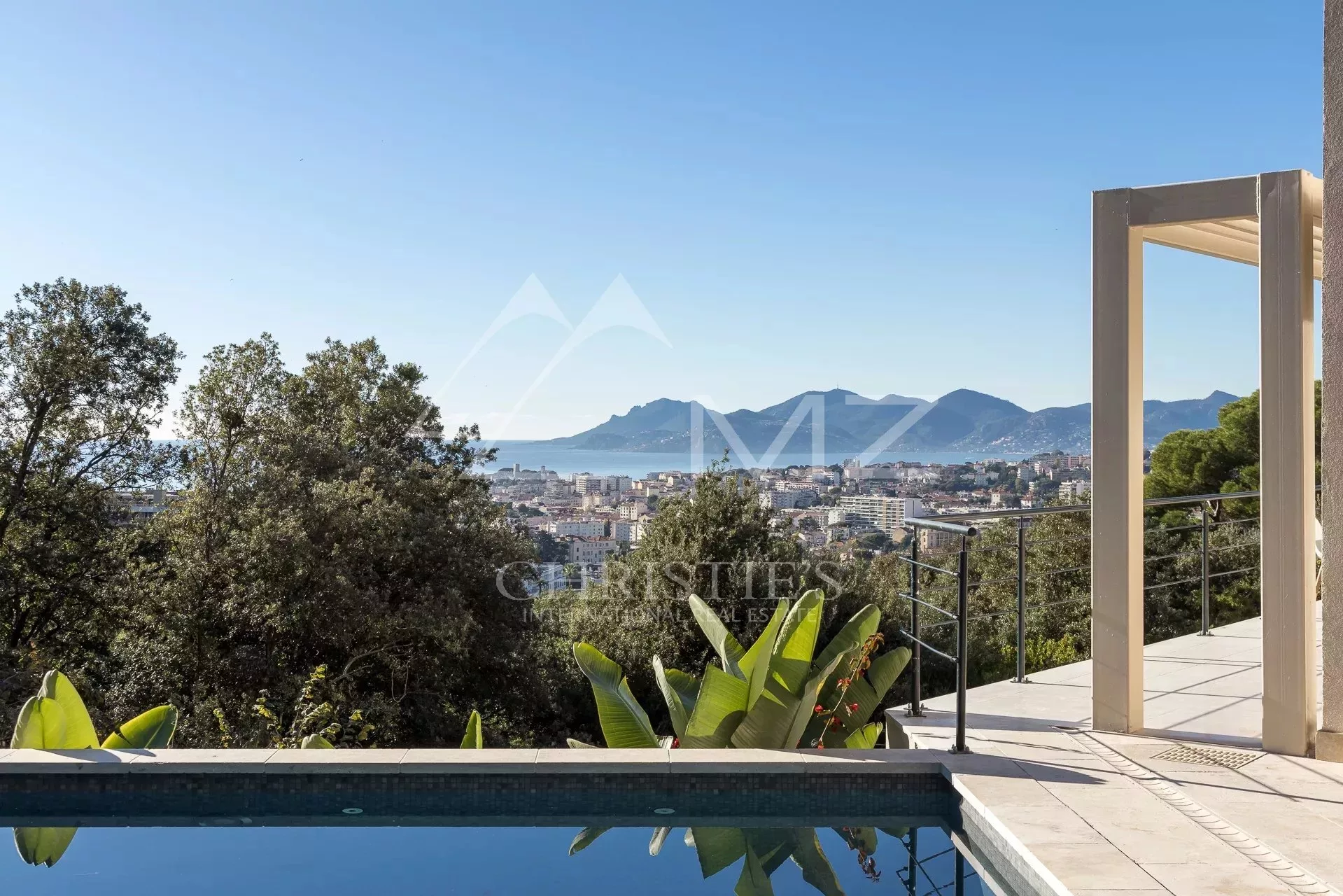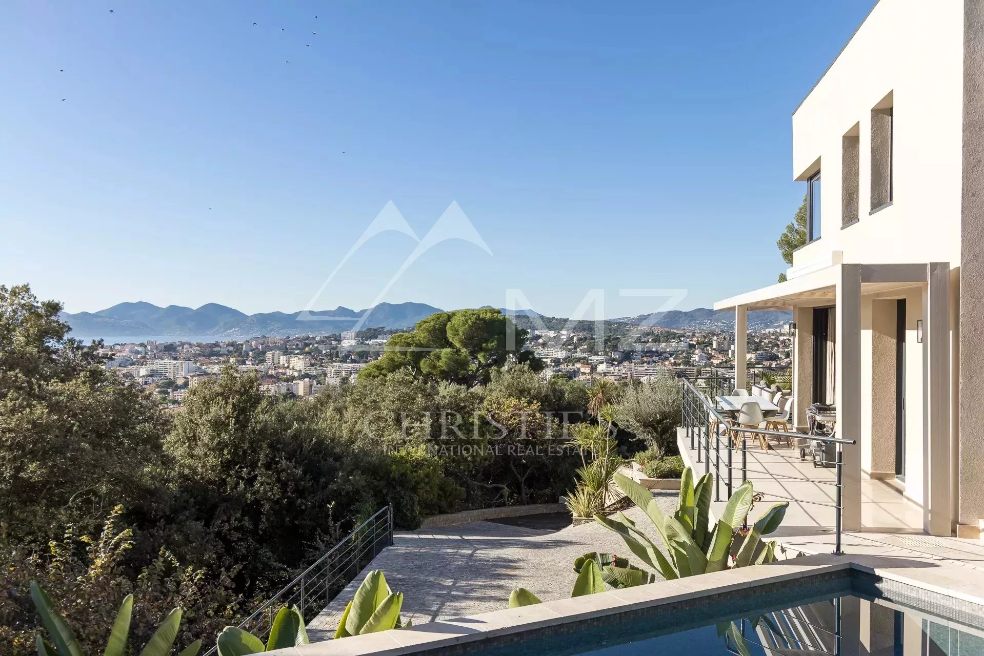 Exceptionnelle propriété contemporaine à la décoration raffinée, de 300m² environ. Offrant une vue mer sur la rade de Cannes et l'Estérel, 5 chambres en suite, salon, salle à manger, cuisine, solarium, buanderie. Terrain avec piscine chauffée entièrement paysager. Garage.