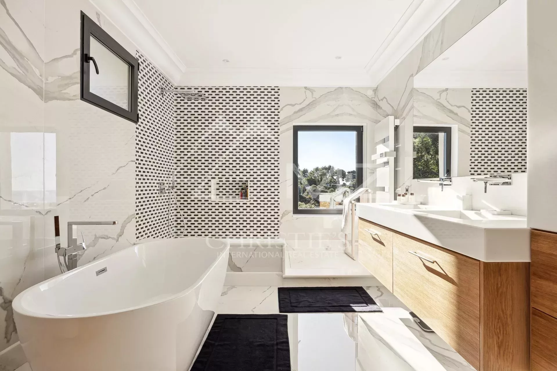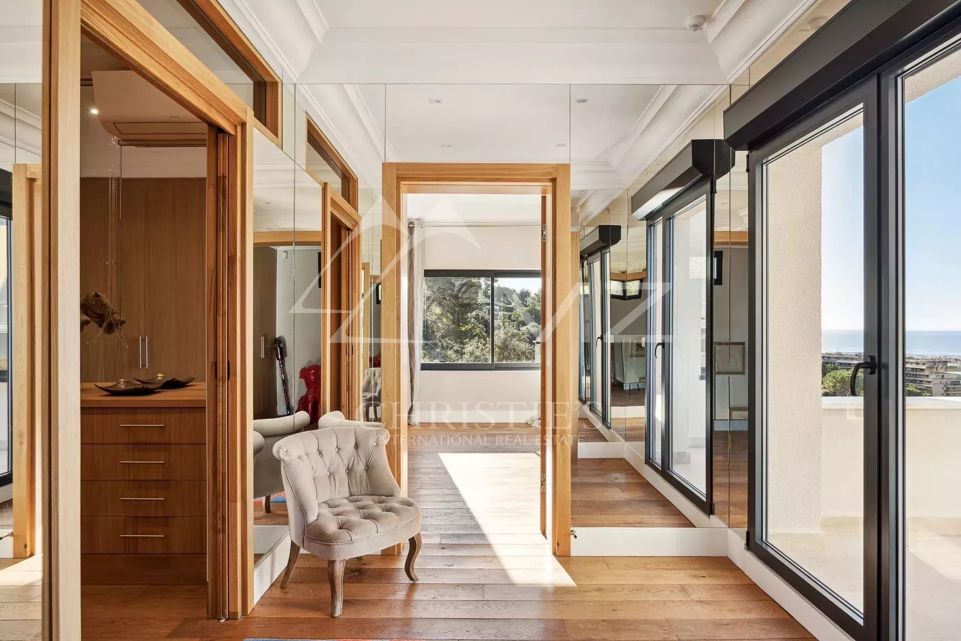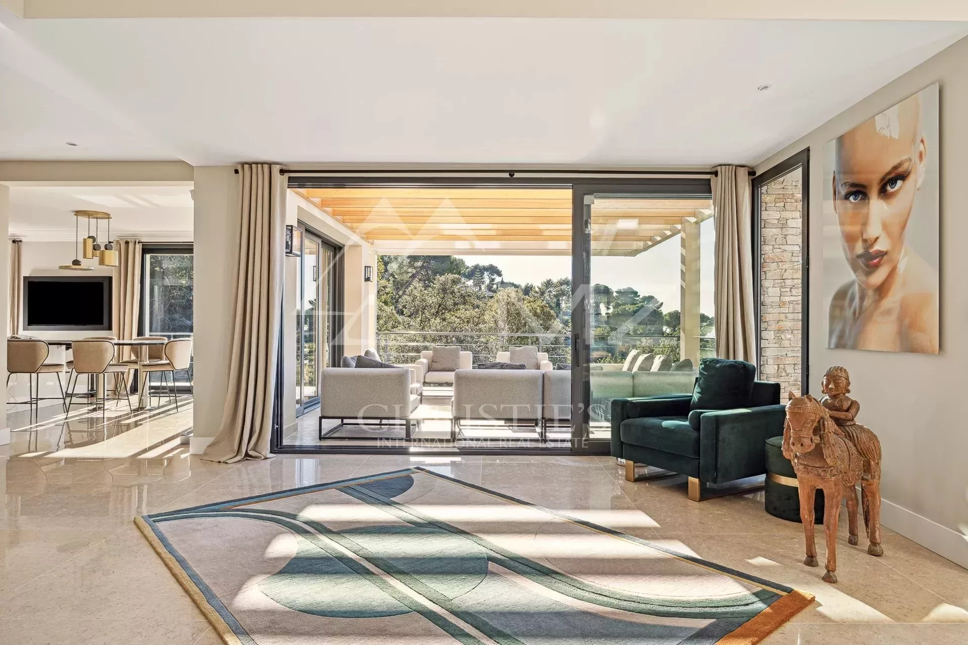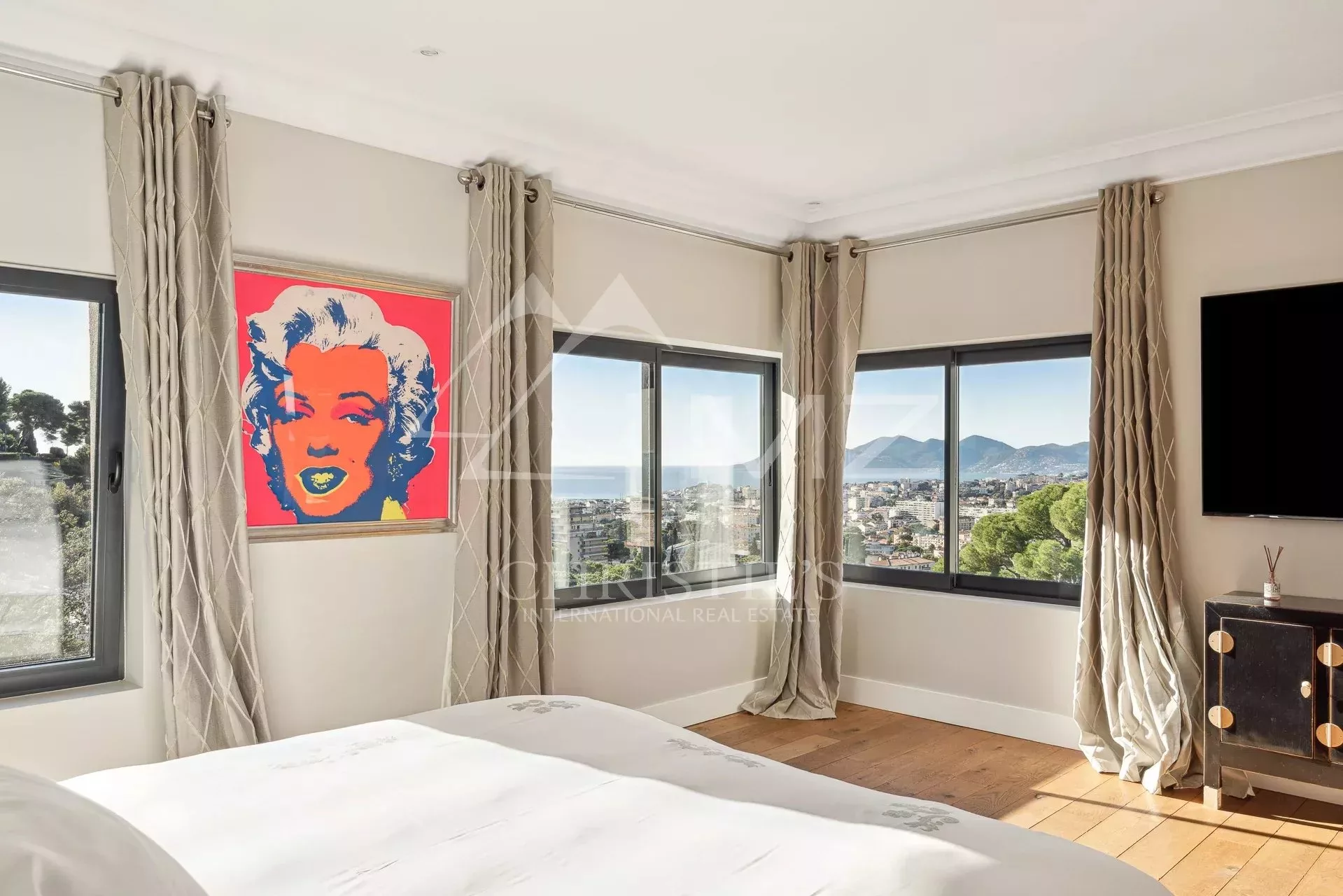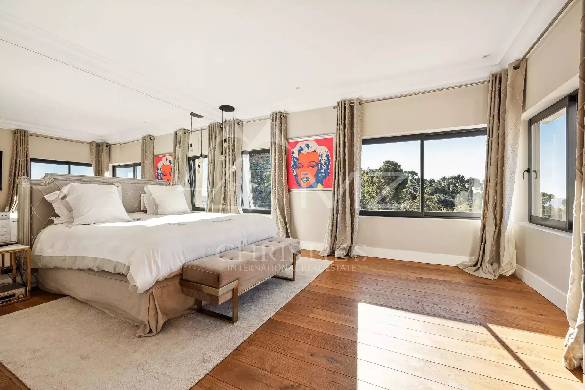 Exceptionnelle propriété contemporaine à la décoration raffinée, de 300m² environ. Offrant une vue mer sur la rade de Cannes et l'Estérel, 5 chambres en suite, salon, salle à manger, cuisine, solarium, buanderie. Terrain avec piscine chauffée entièrement paysager. Garage.