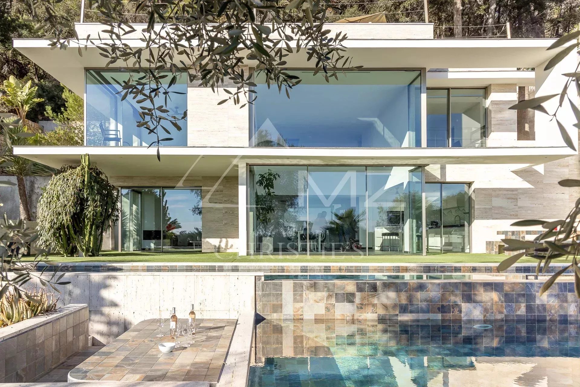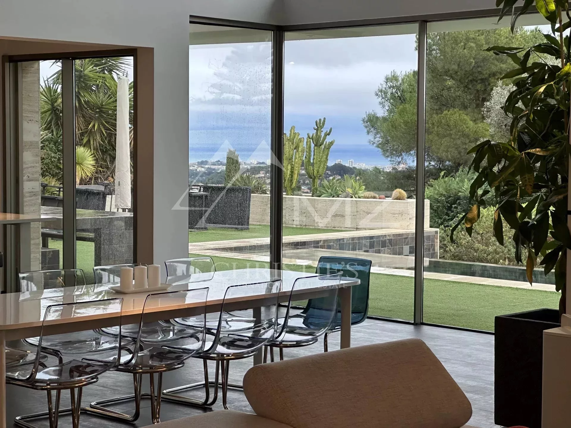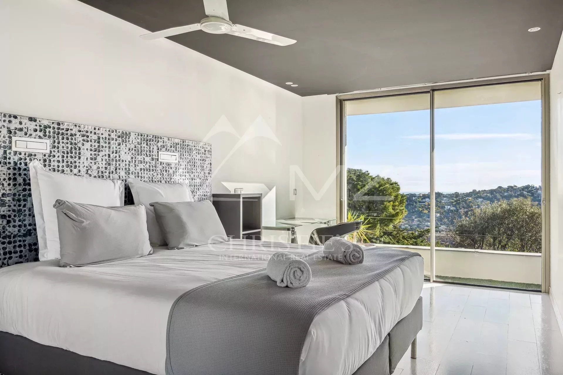 Belle villa contemporaine de 250m² avec vue mer, comprenant : au rez-de-chaussée, un séjour avec accès piscine et vue mer, une salle à manger, une cuisine équipé, 4 chambres en suite, une salle de cinéma, un sauna et un garage. Terrain de 4000m², piscine.