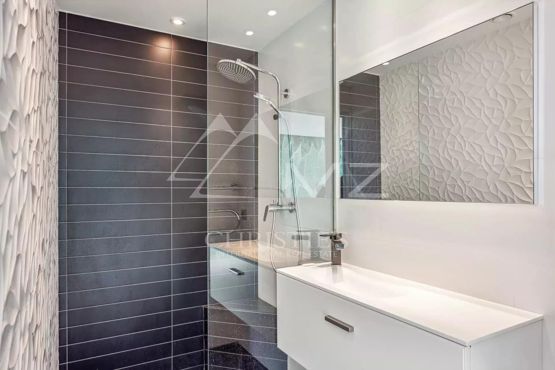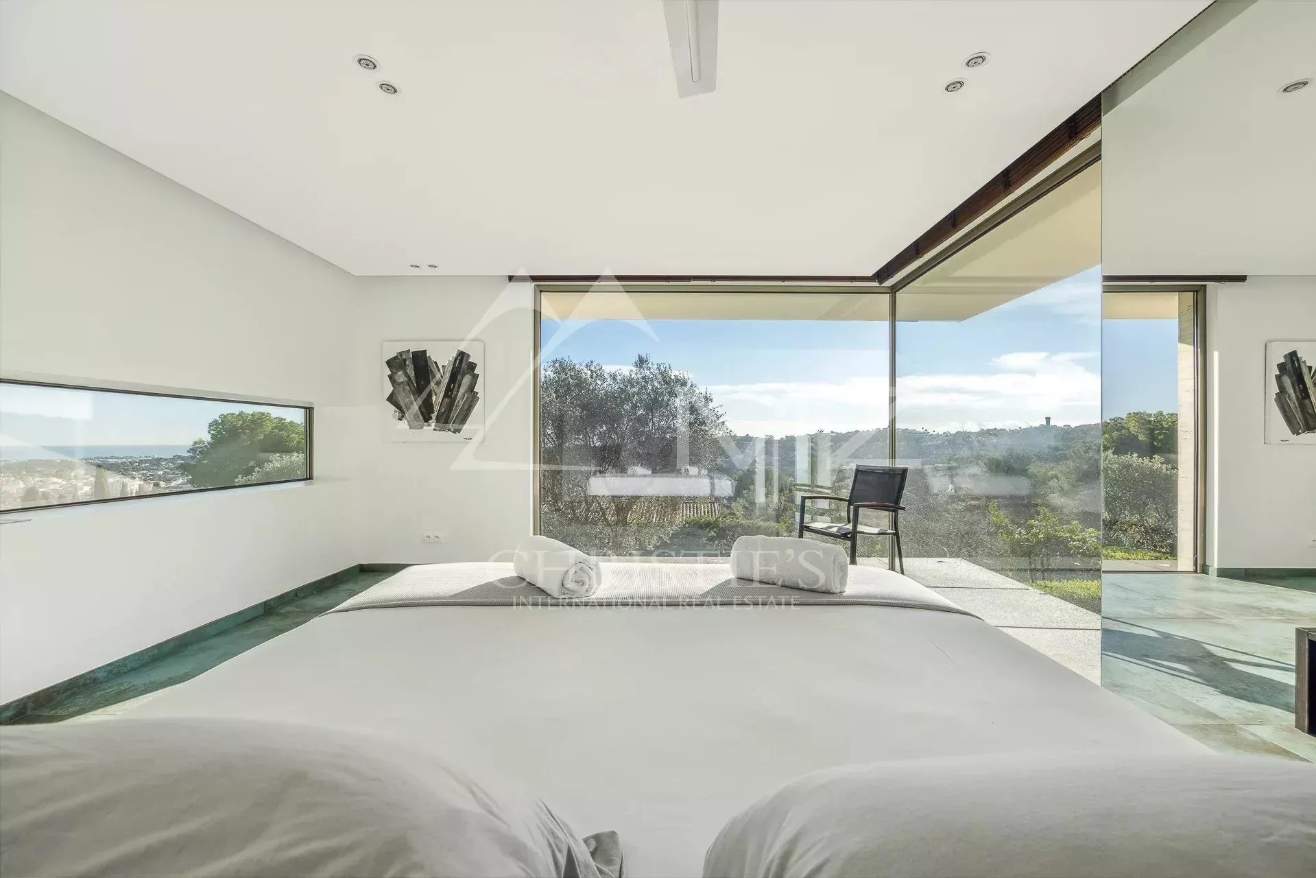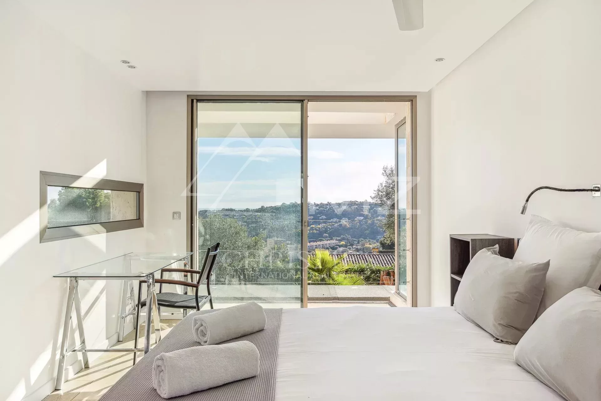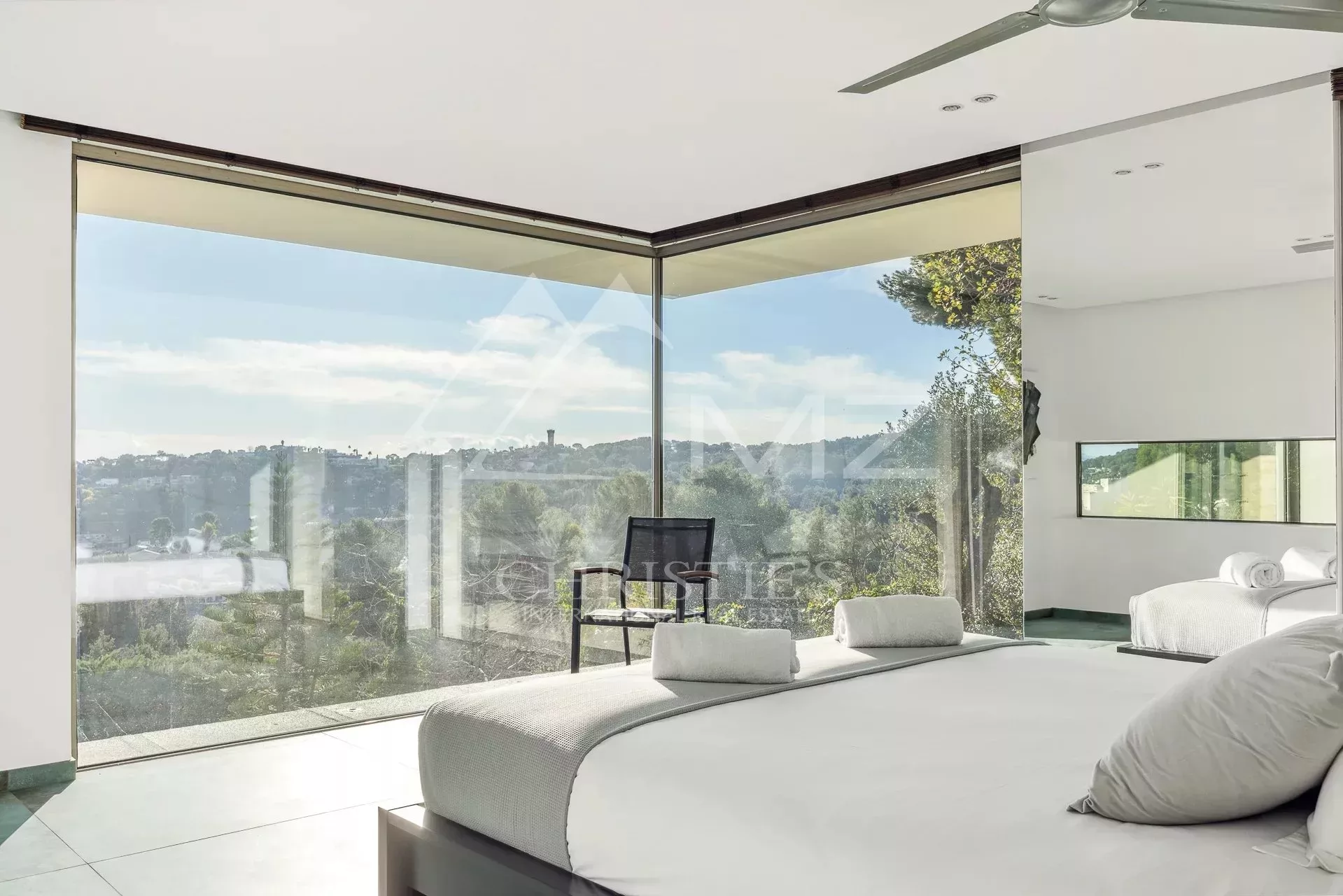 Belle villa contemporaine de 250m² avec vue mer, comprenant : au rez-de-chaussée, un séjour avec accès piscine et vue mer, une salle à manger, une cuisine équipé, 4 chambres en suite, une salle de cinéma, un sauna et un garage. Terrain de 4000m², piscine.