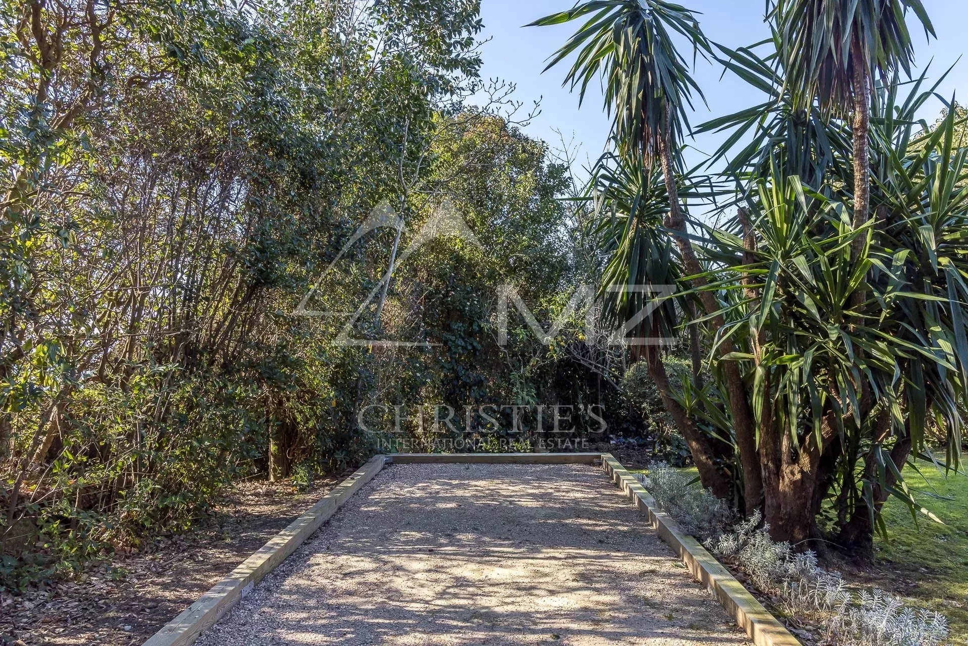 Une maison de gardien, un parking, une piscine 11x5. Terrain plat de 2100m².
