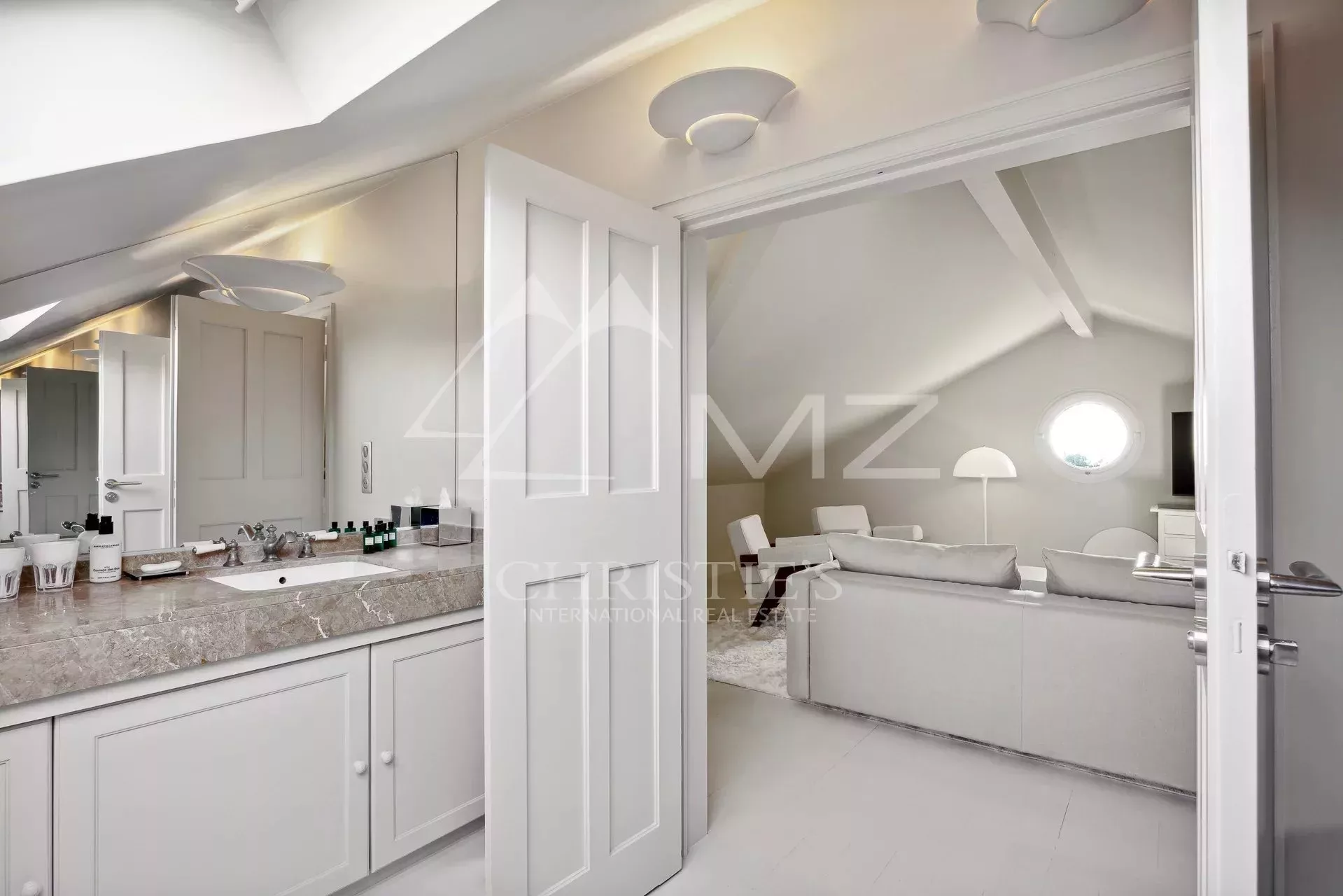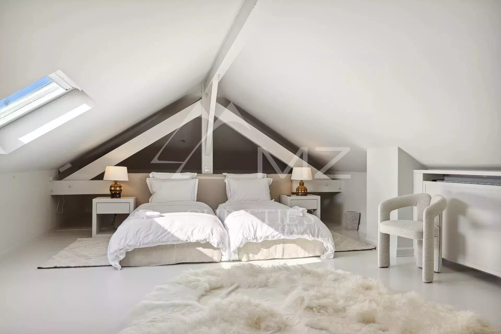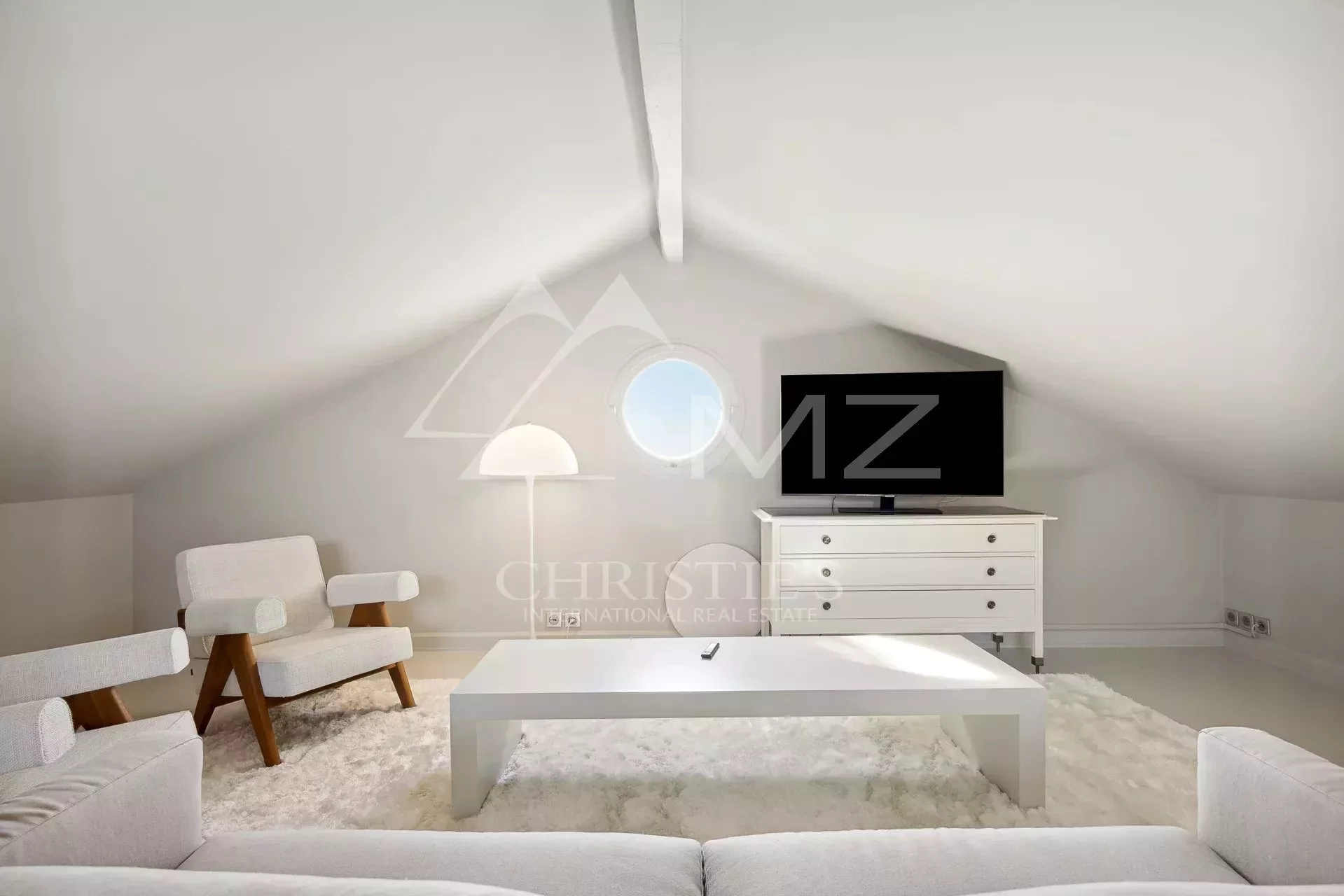 Située à Cannes, cette de villa de 390 m² environ, comprenant au RDC : une entrée, une cuisine équipée, un séjour. Au premier étage, deux chambres en suite et une chambre de maitre avec salle de bains/douche. Au deuxième étage, une chambre avec salle de bains et un salon convertible en chambre.