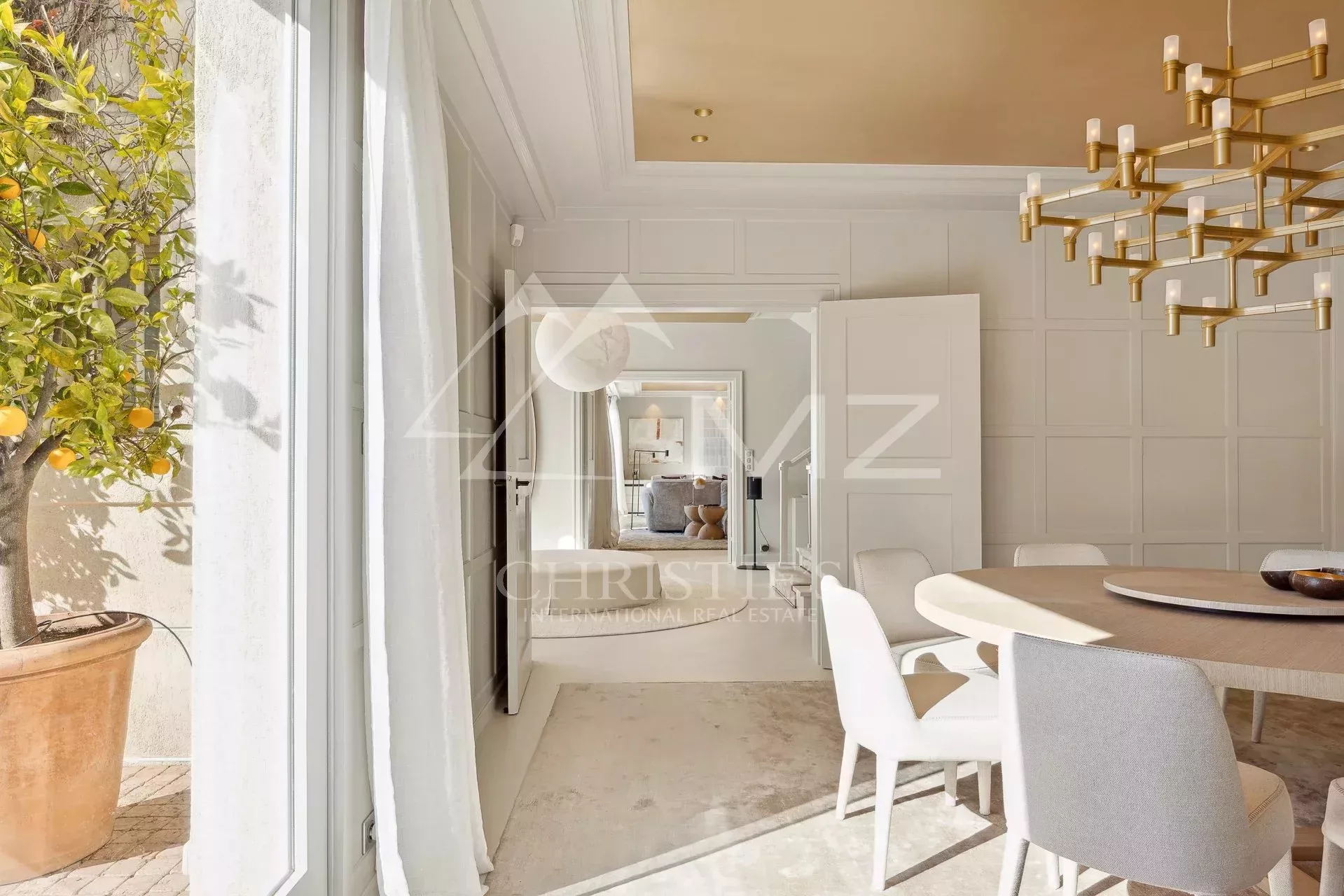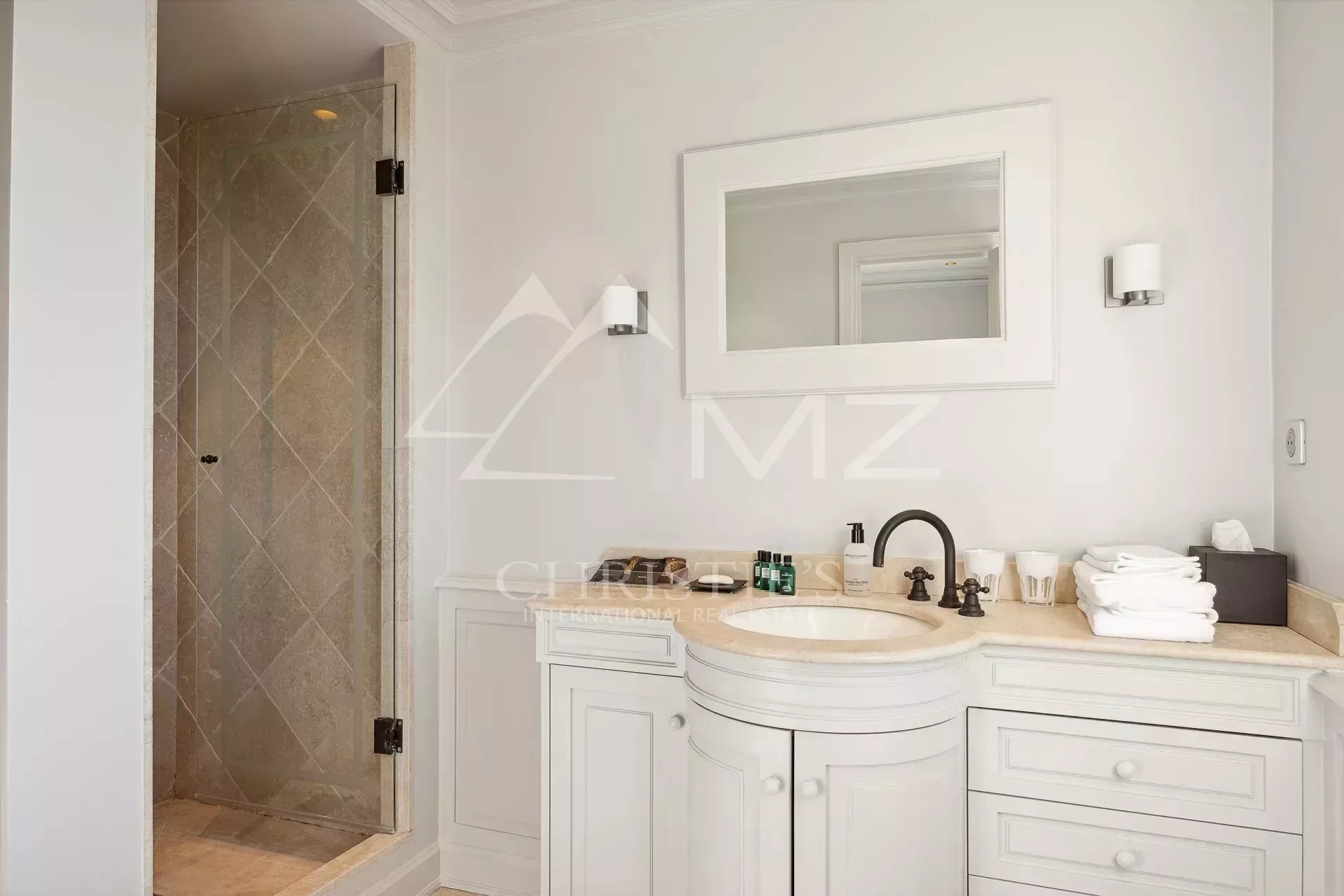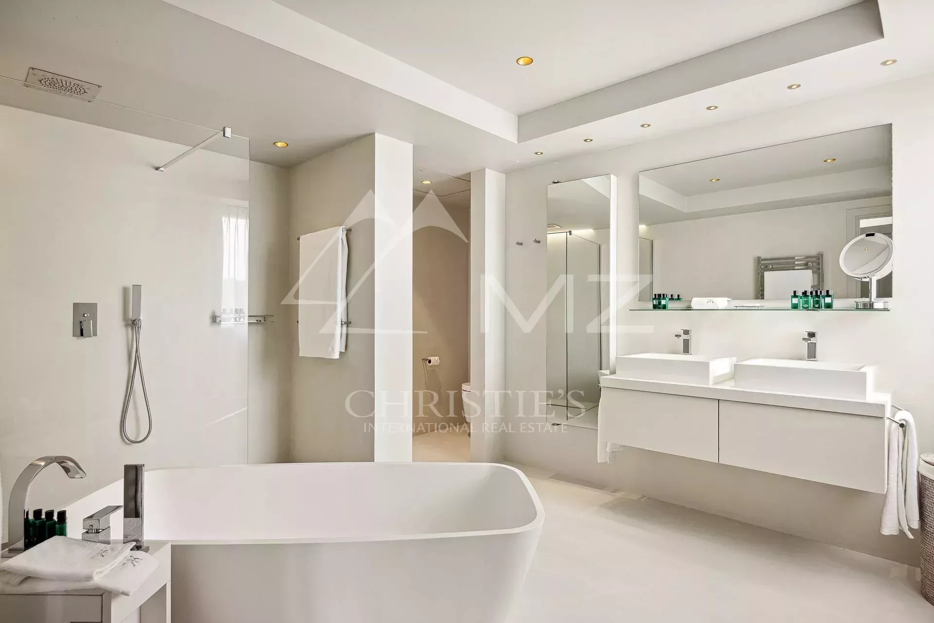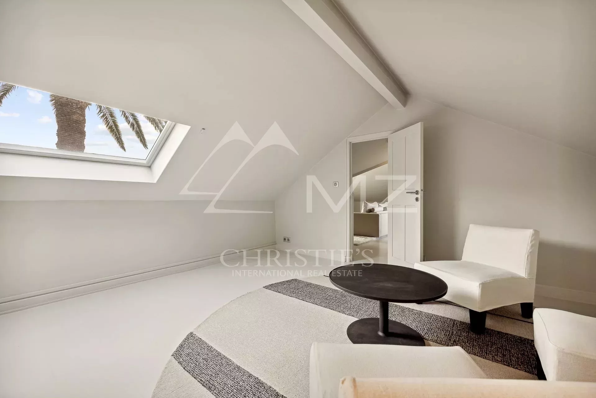 Située à Cannes, cette de villa de 390 m² environ, comprenant au RDC : une entrée, une cuisine équipée, un séjour. Au premier étage, deux chambres en suite et une chambre de maitre avec salle de bains/douche. Au deuxième étage, une chambre avec salle de bains et un salon convertible en chambre.