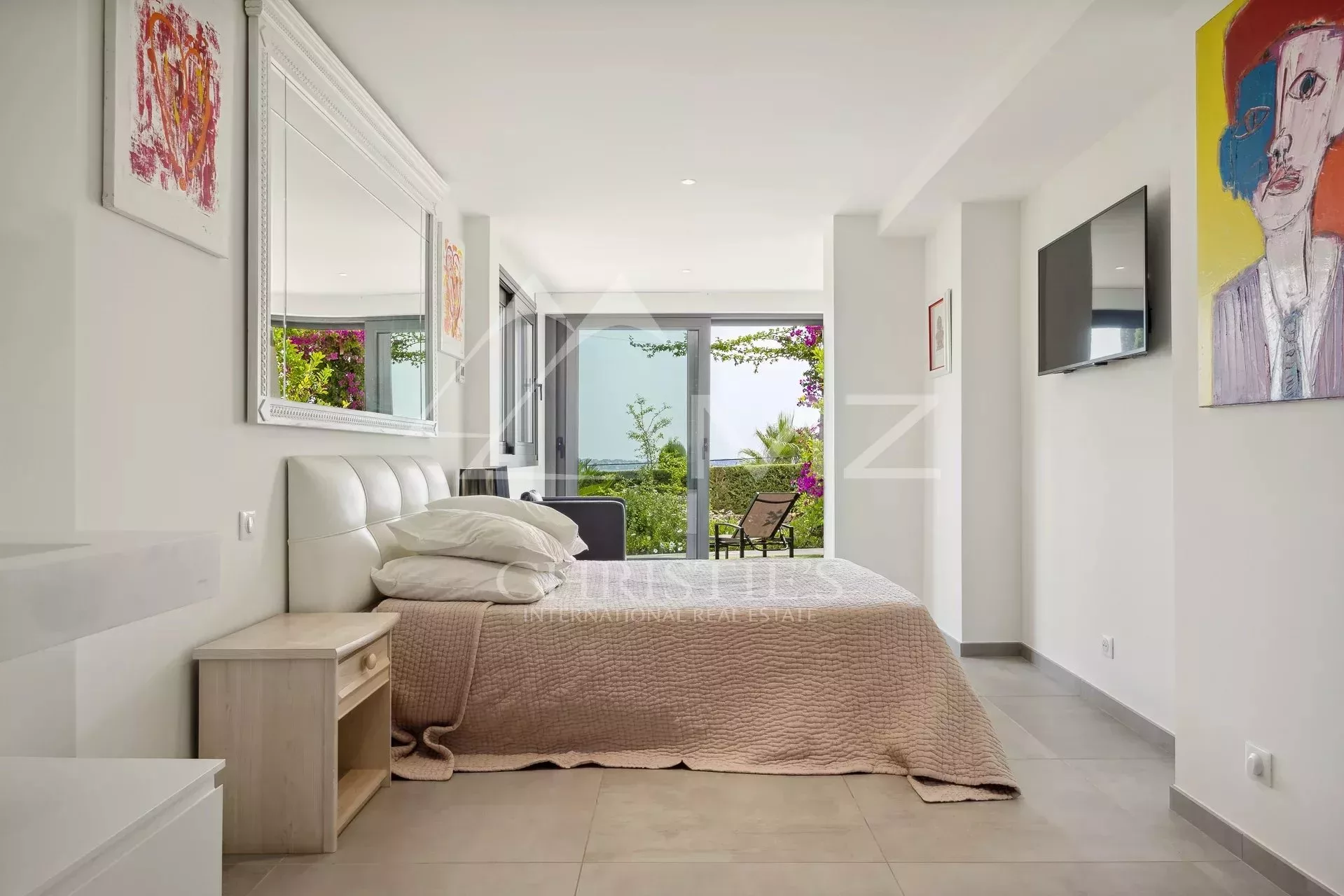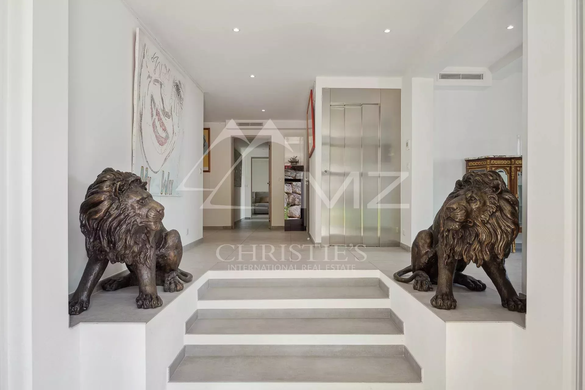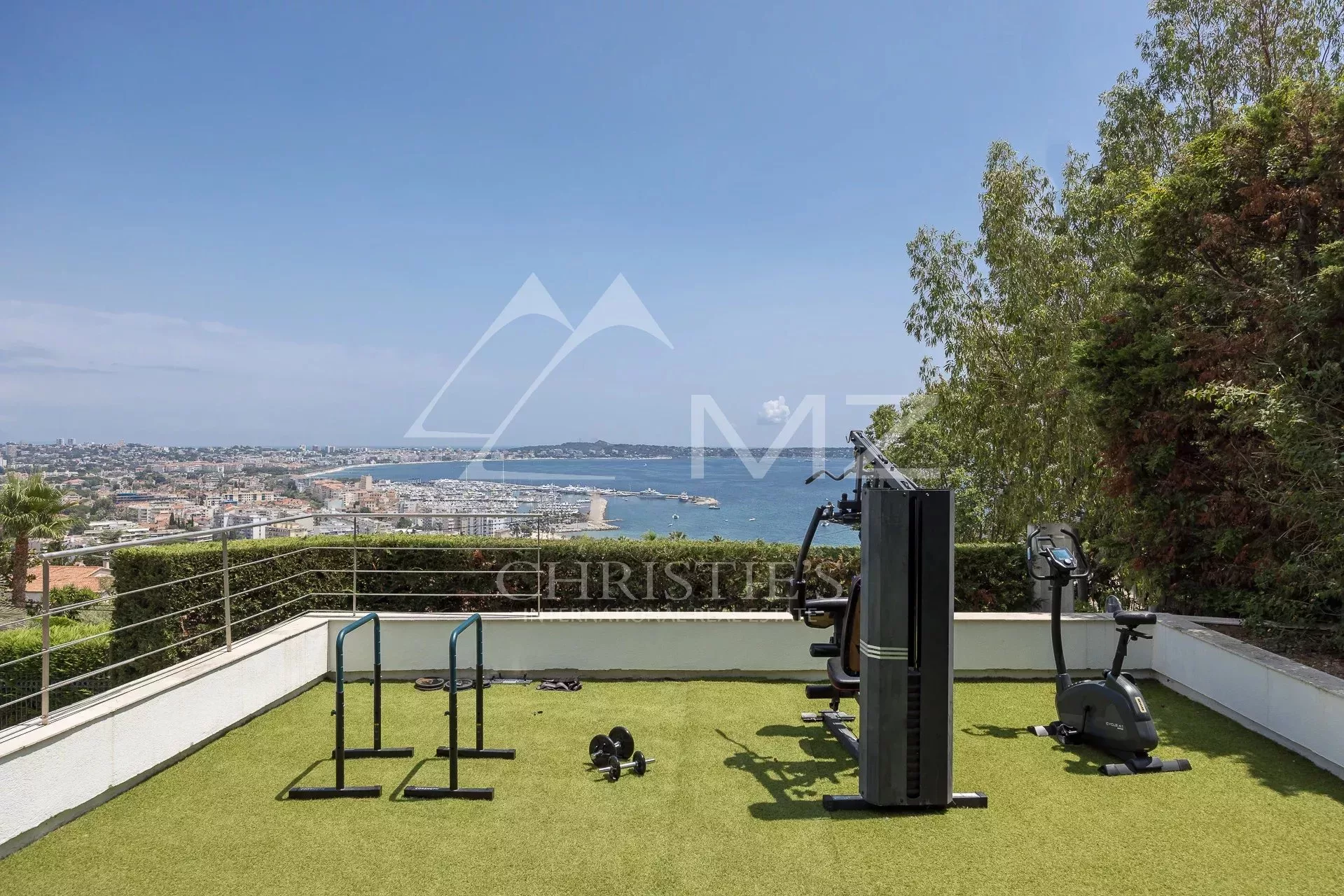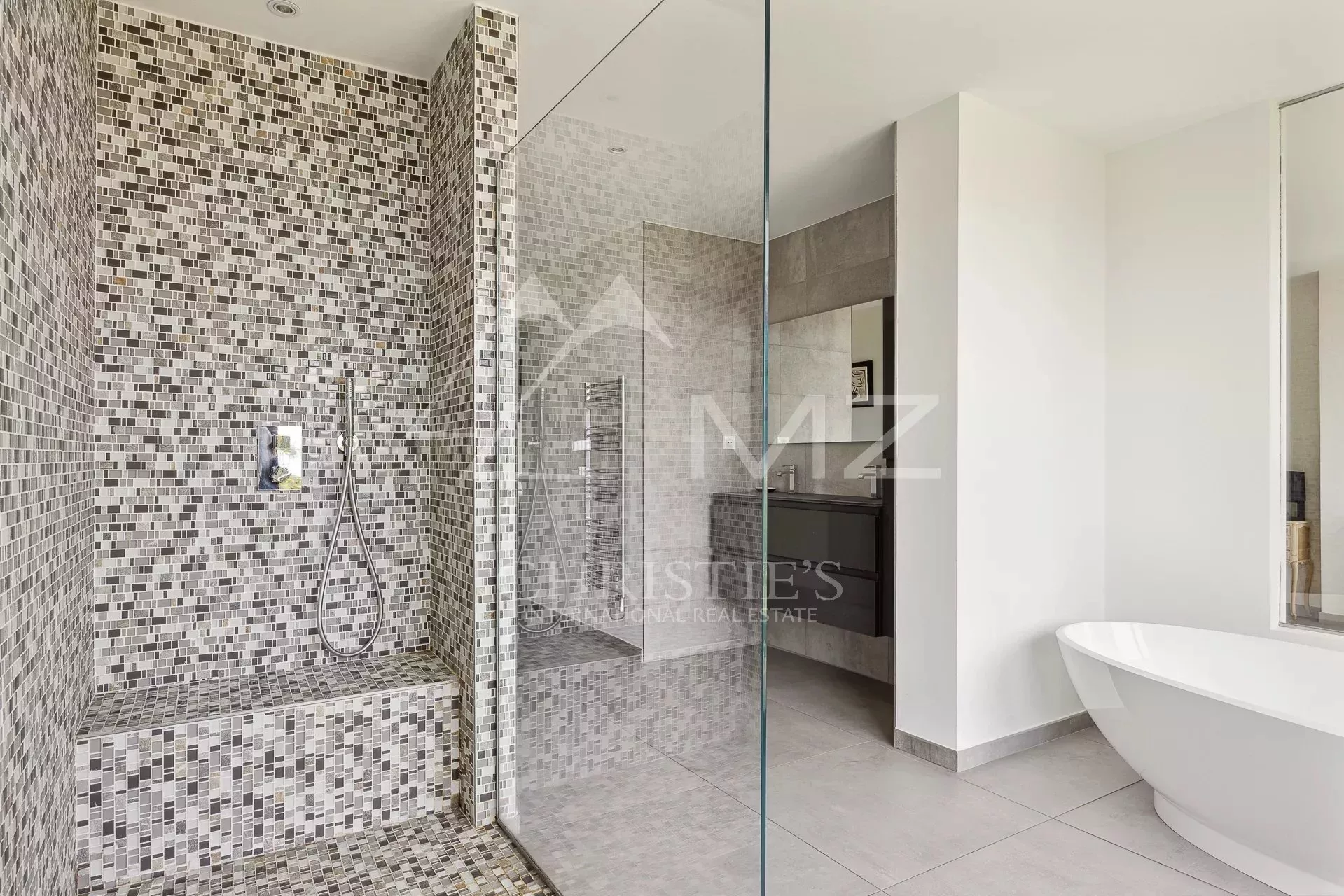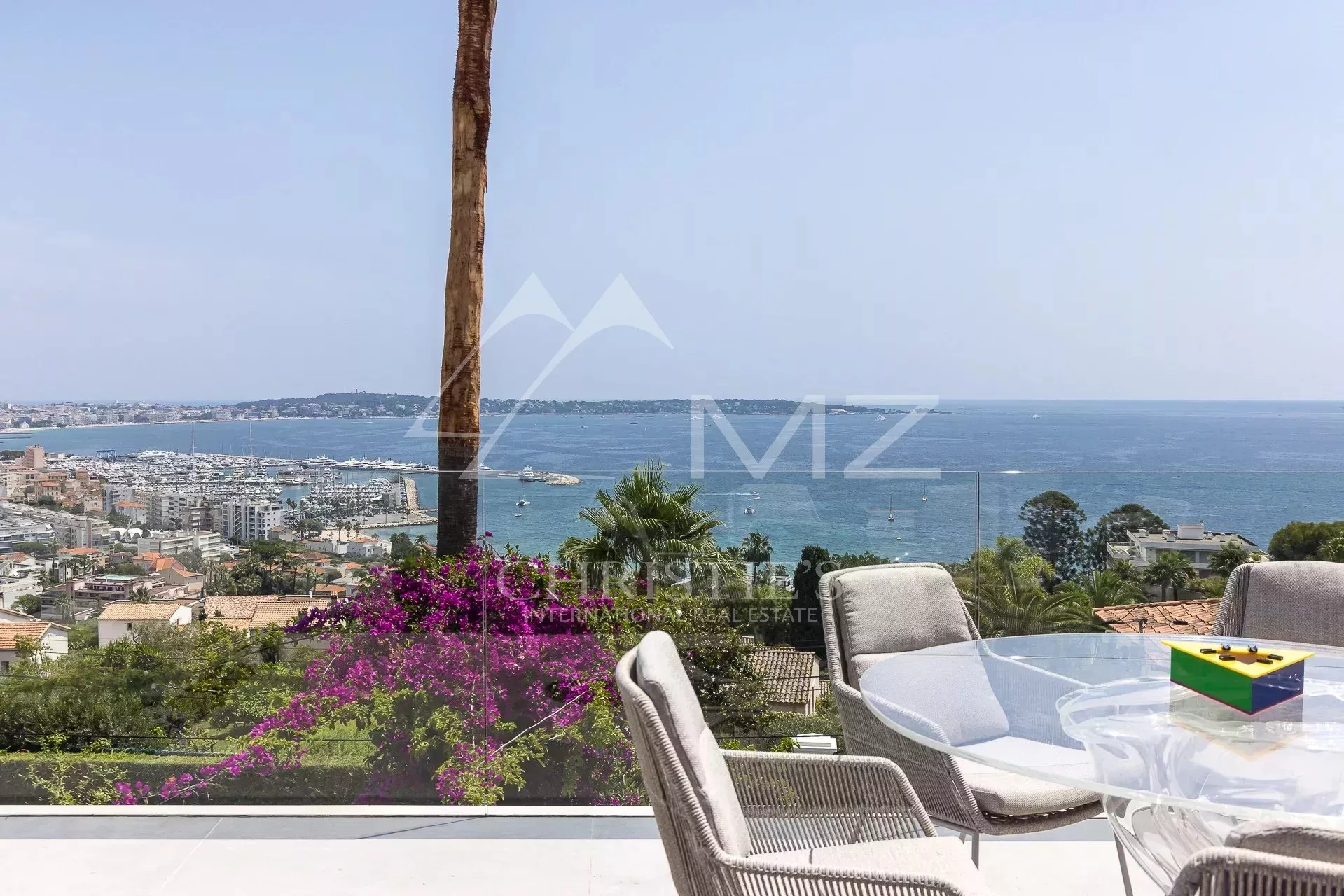 Superbe villa moderne a Golf-Juan de 419 m² environ, comprenant : A l'étage, un séjour avec salle à manger, une cuisine équipée, une chambre de maitre avec salle de douche et bain. Au rez-de-chaussée, 4 chambres en suite. Deux annexes studios. Piscine chauffée 6x11. Terrain d'environ 1500 m². Garage.