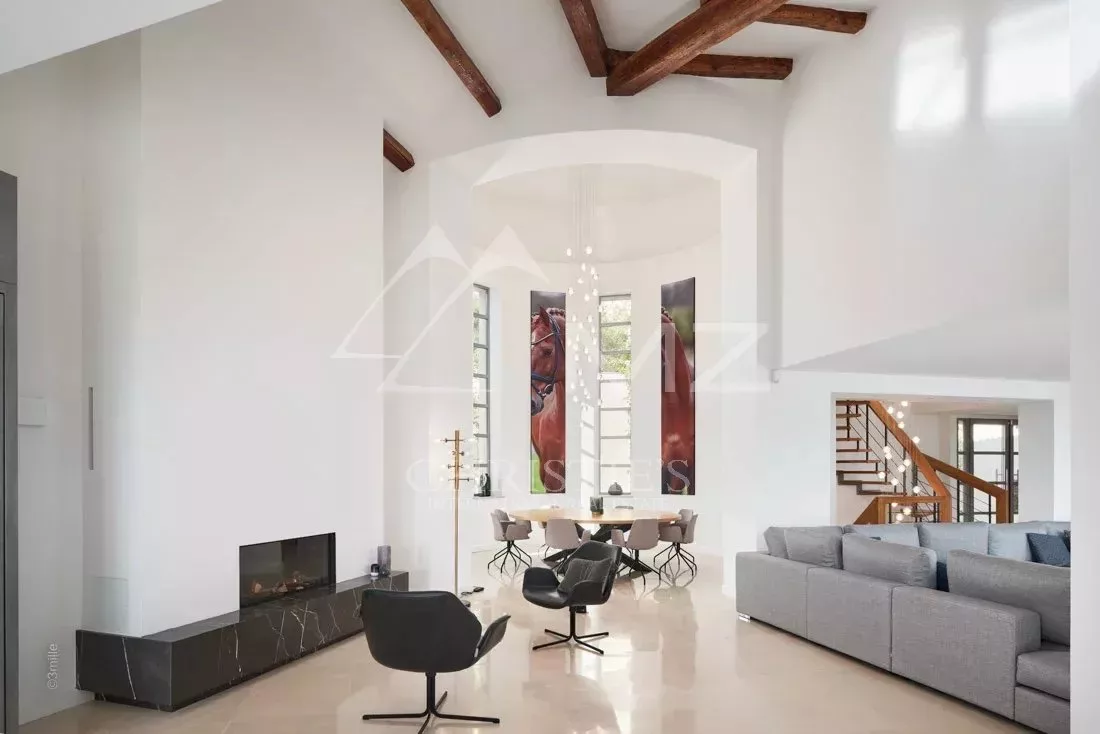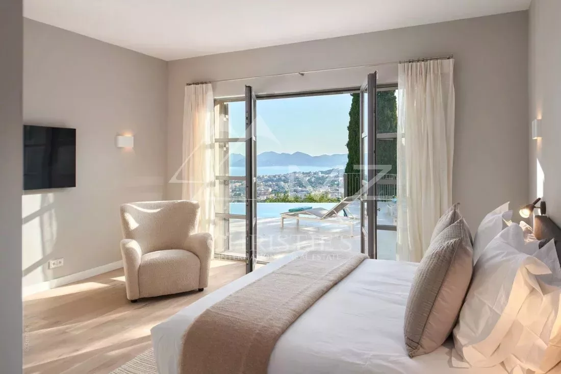 Récemment rénovée à un niveau exceptionnellement élevé, cette belle villa est idéalement située dans l'endroit le plus recherché de Cannes et bénéficie d'une vue imprenable sur le littoral de la Côte d'Azur et sur la mer. Cette propriété accueillante et lumineuse a fait l'objet d'un énorme projet de rénovation au cours des deux dernières années pour devenir cette impressionnante maison, c'est l'endroit idéal pour recevoir amis et famille. Le logement lumineux s'étend sur environ 450 m² et comprend un hall d'entrée, un vestiaire / wc pour les invités, un grand salon / salle à manger avec double hauteur de plafond et une cuisine ouverte sur le salon. Il y a cinq chambres, dont une immense suite parentale au dernier étage avec une grande salle de bains, un dressing et une vaste terrasse couverte avec une vue imprenable, il y a aussi une buanderie et une salle de sport. Le terrain bien entretenu (2 284 m²) comprend une magnifique piscine à débordement flambant neuve et un impressionnant pool house avec cuisine d'été et salon TV, ainsi que de nombreuses places de parking.