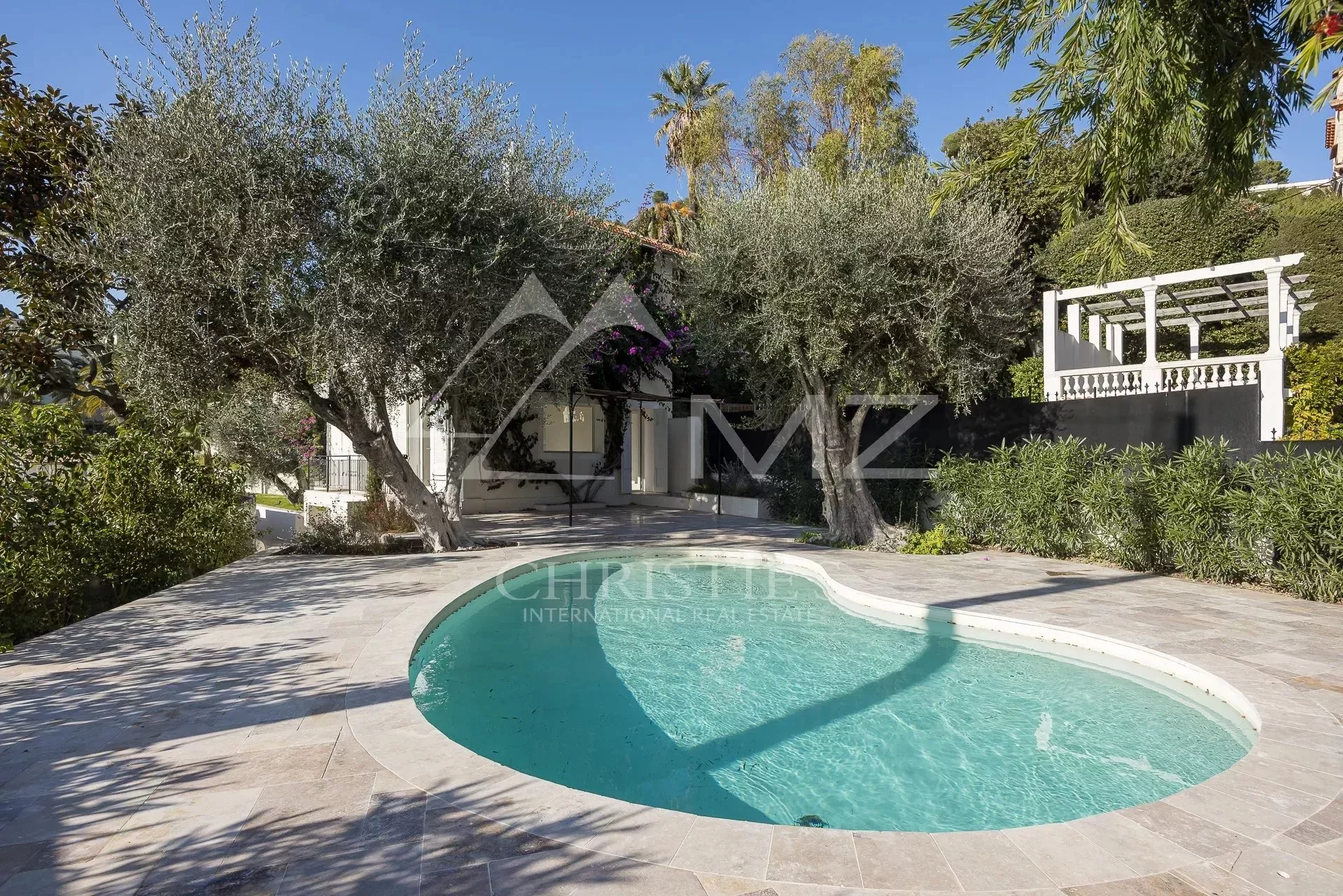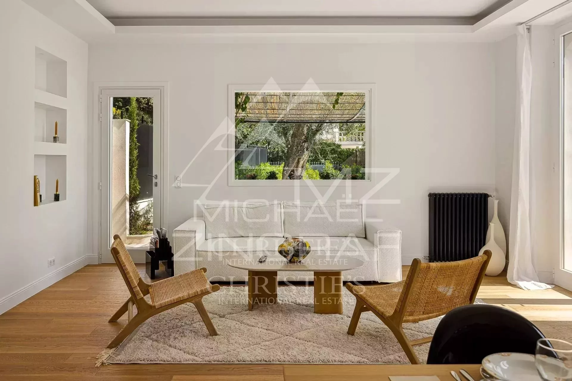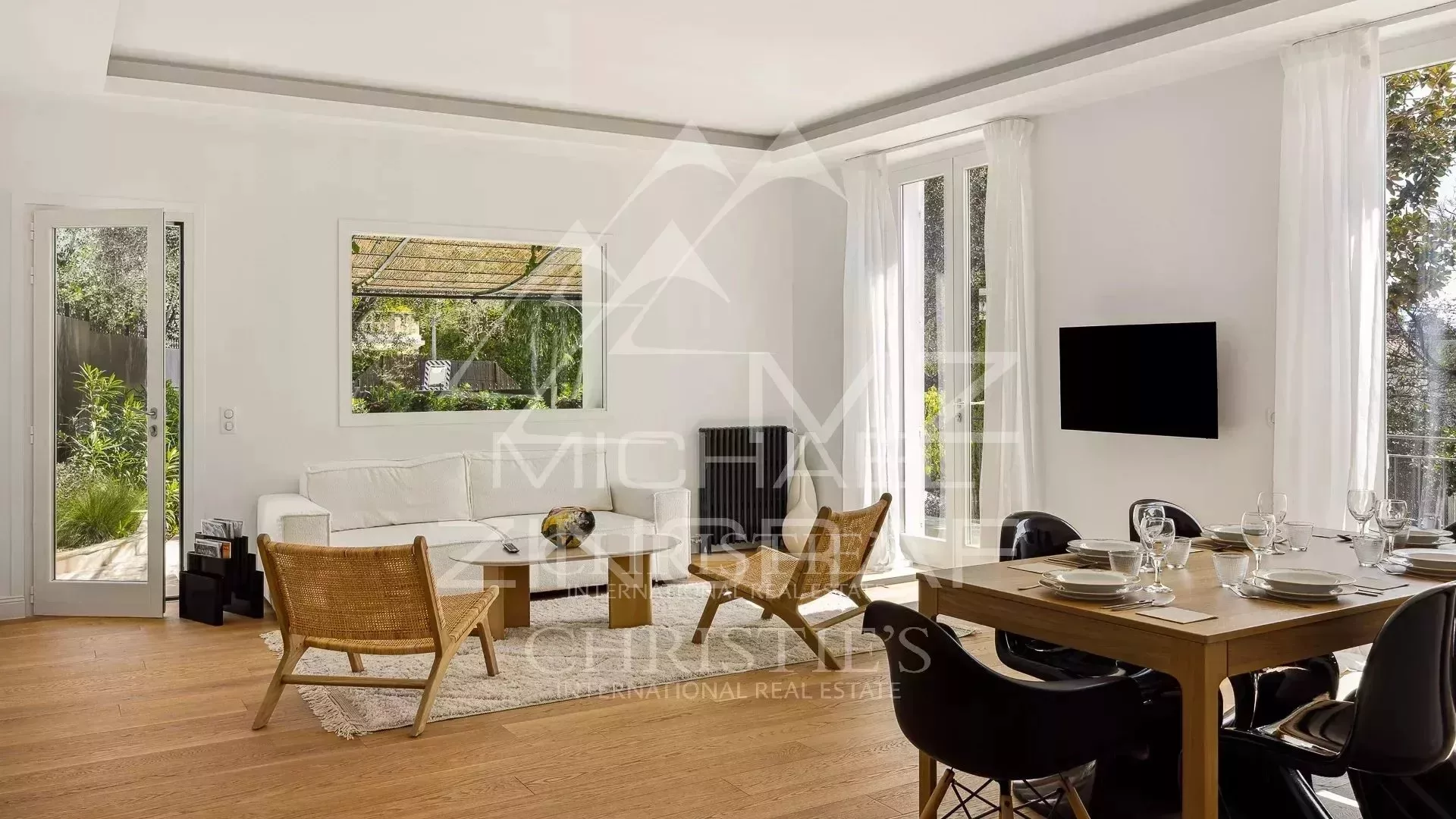 Idéalement située à proximité immédiate du centre historique du Cannet, des commerces et de la place Bellevue, étonnante villa des années 30, d'environ 165m², entièrement rénovée, comprenant 5 chambres en suite dont un studio indépendant.