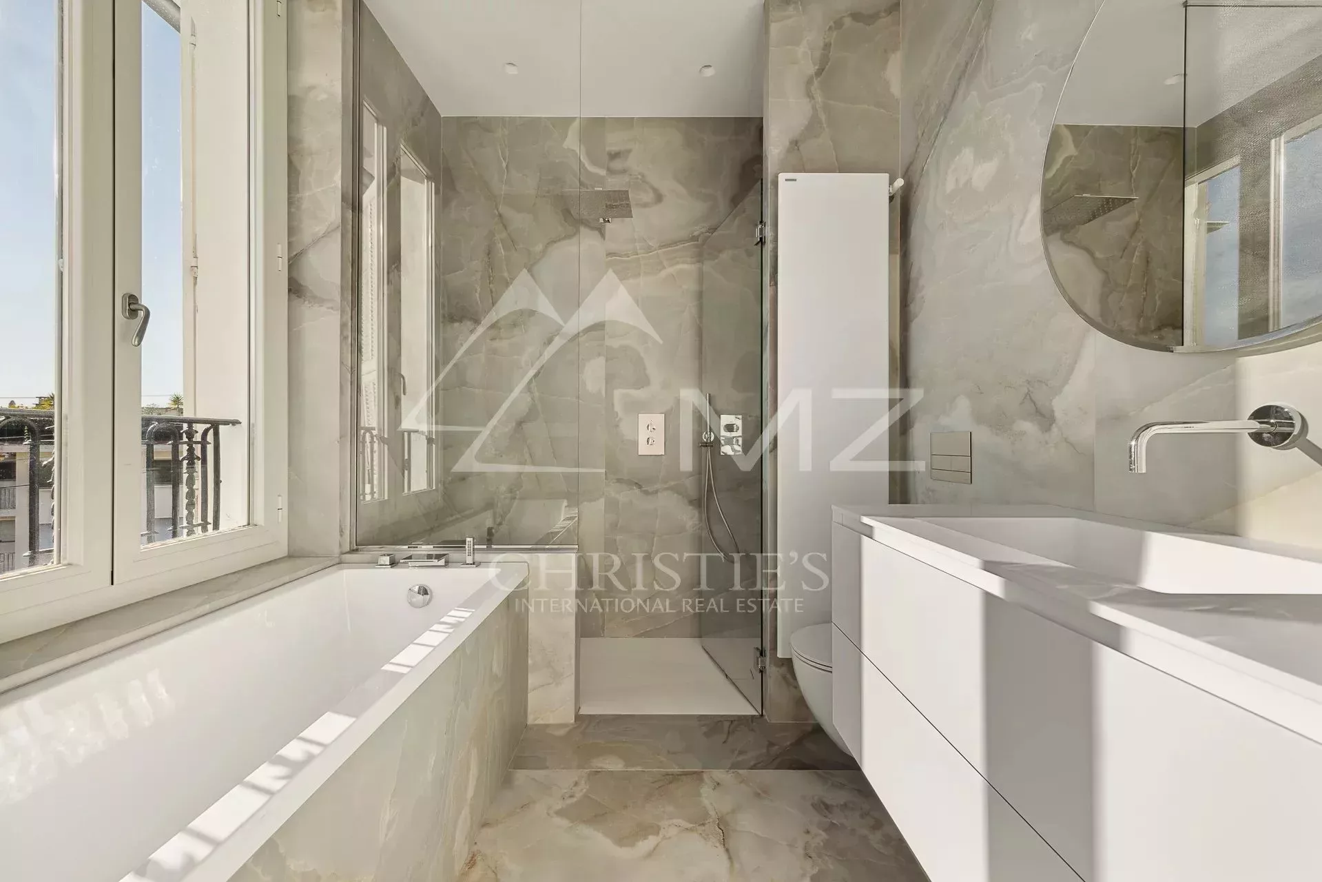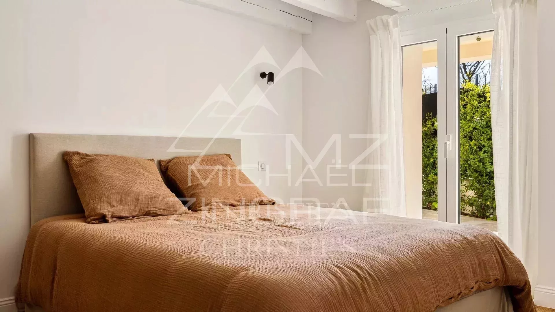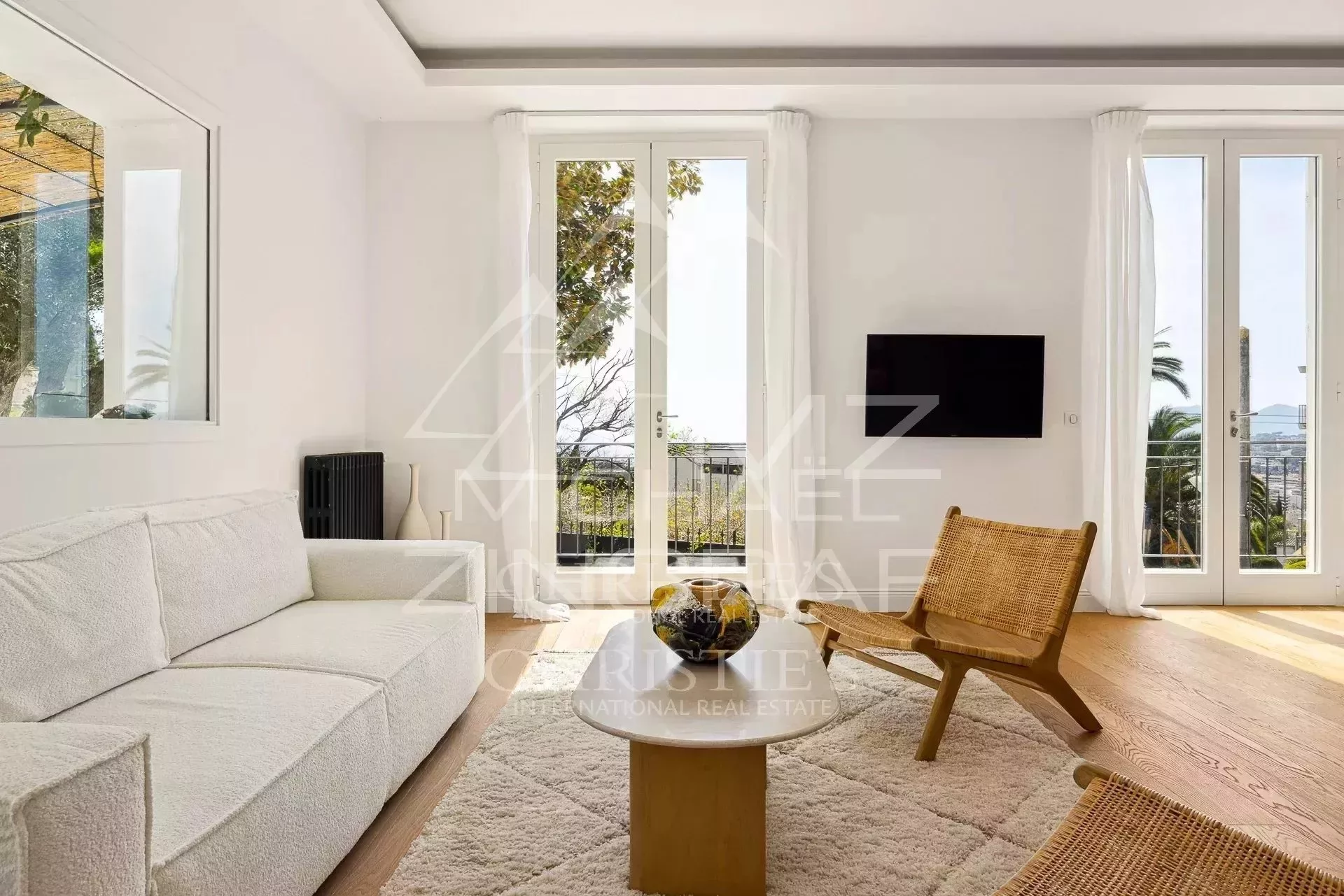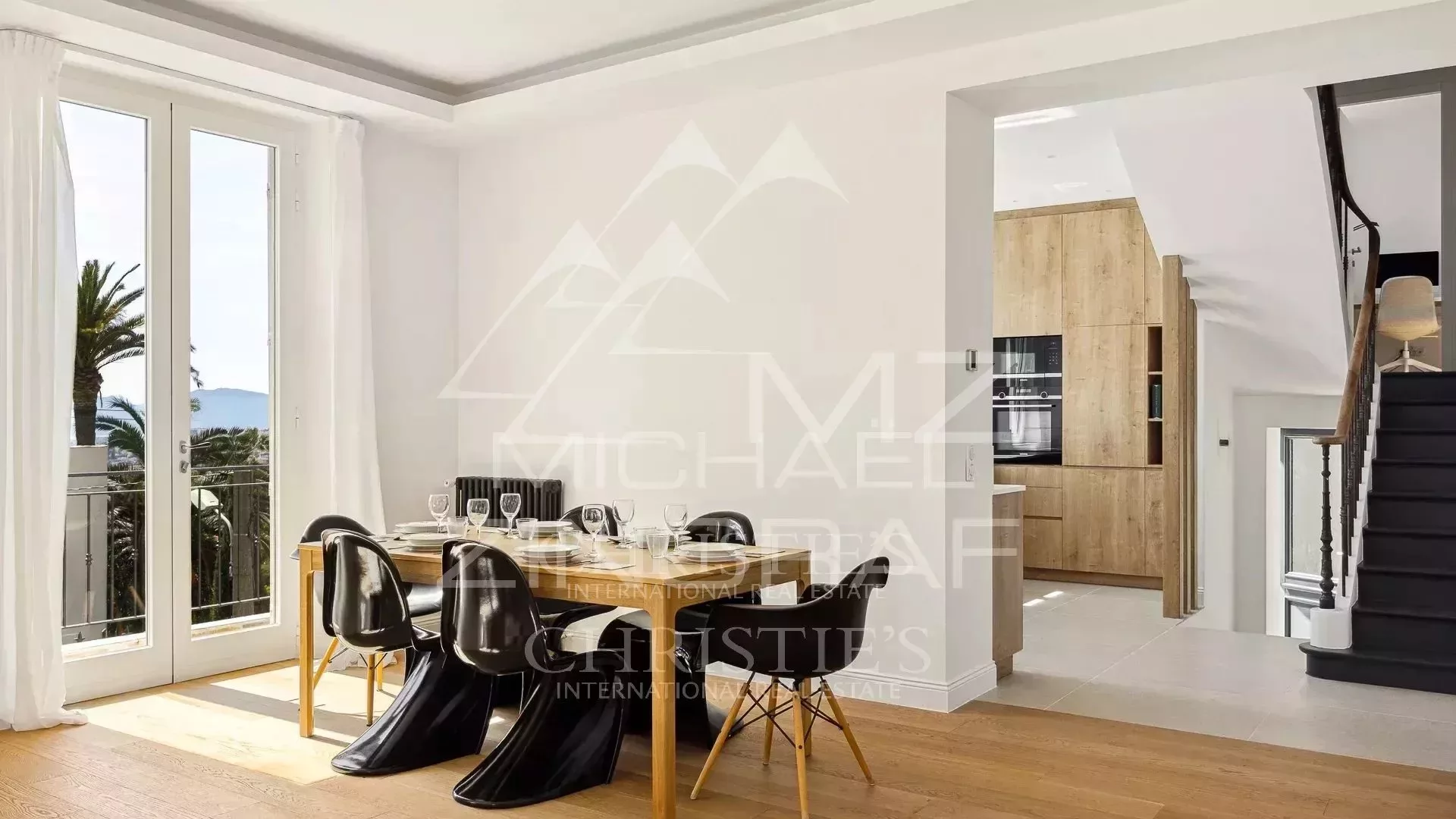 Idéalement située à proximité immédiate du centre historique du Cannet, des commerces et de la place Bellevue, étonnante villa des années 30, d'environ 165m², entièrement rénovée, comprenant 5 chambres en suite dont un studio indépendant.