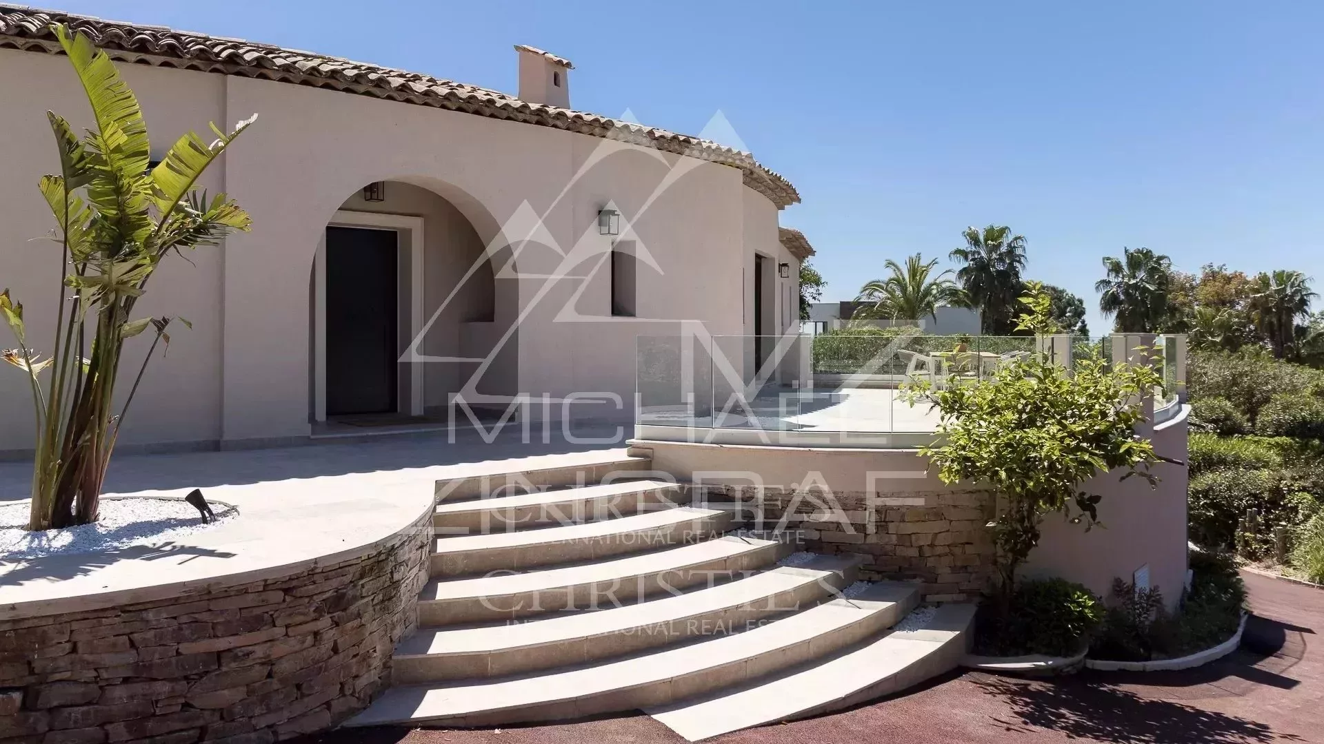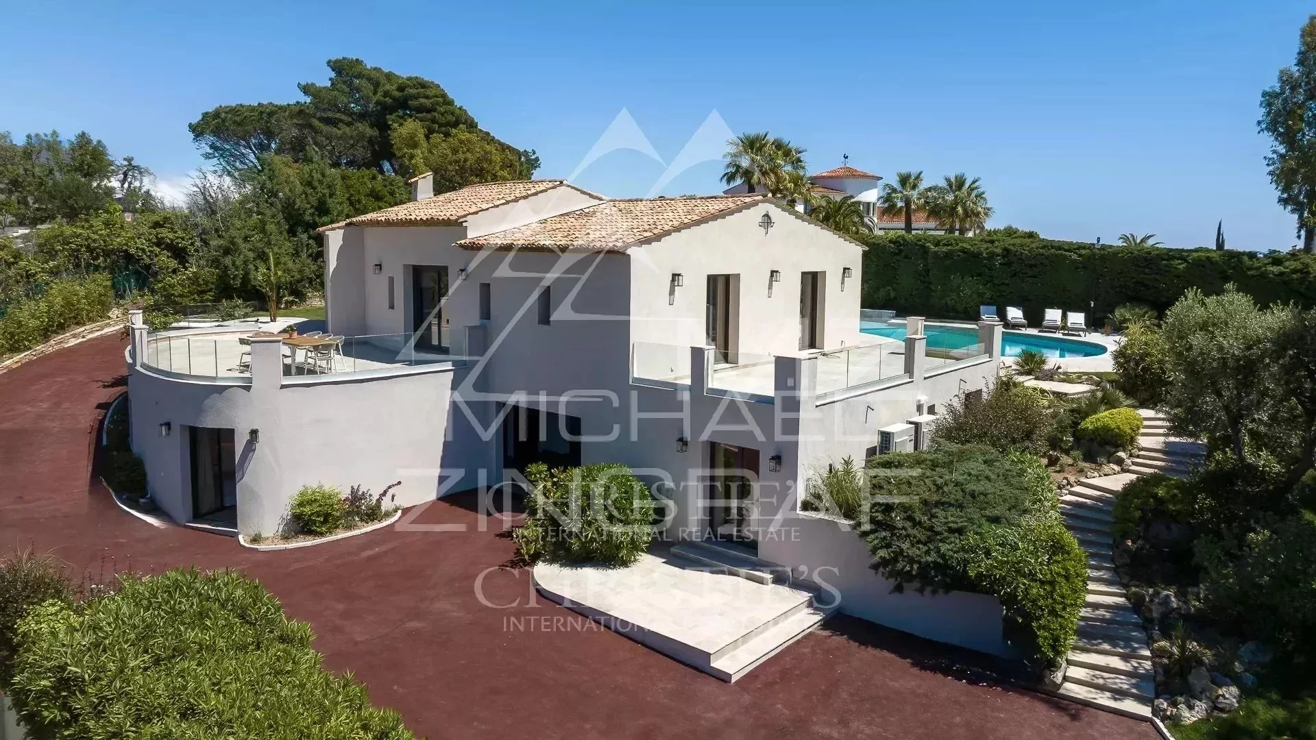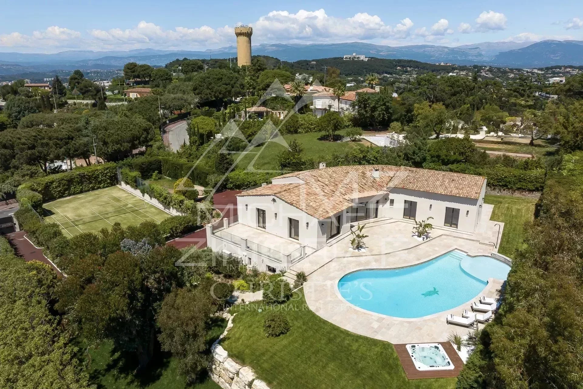 Sur les hauteurs de Cannes, en plein cœur du quartier résidentiel de Super-Cannes, en position dominante, surplombant la mer et l’Estérel, charmante propriété de style provençal moderne, entièrement et récemment rénovée dans l'esprit contemporain. La villa d'environ 355 m2 offre tout le confort et l'intimité à la vie de famille. Avec ses 6 chambres en suite dont 2 indépendantes elle offre la possibilité de recevoir confortablement des amis et / ou d'avoir du personnel à demeure.