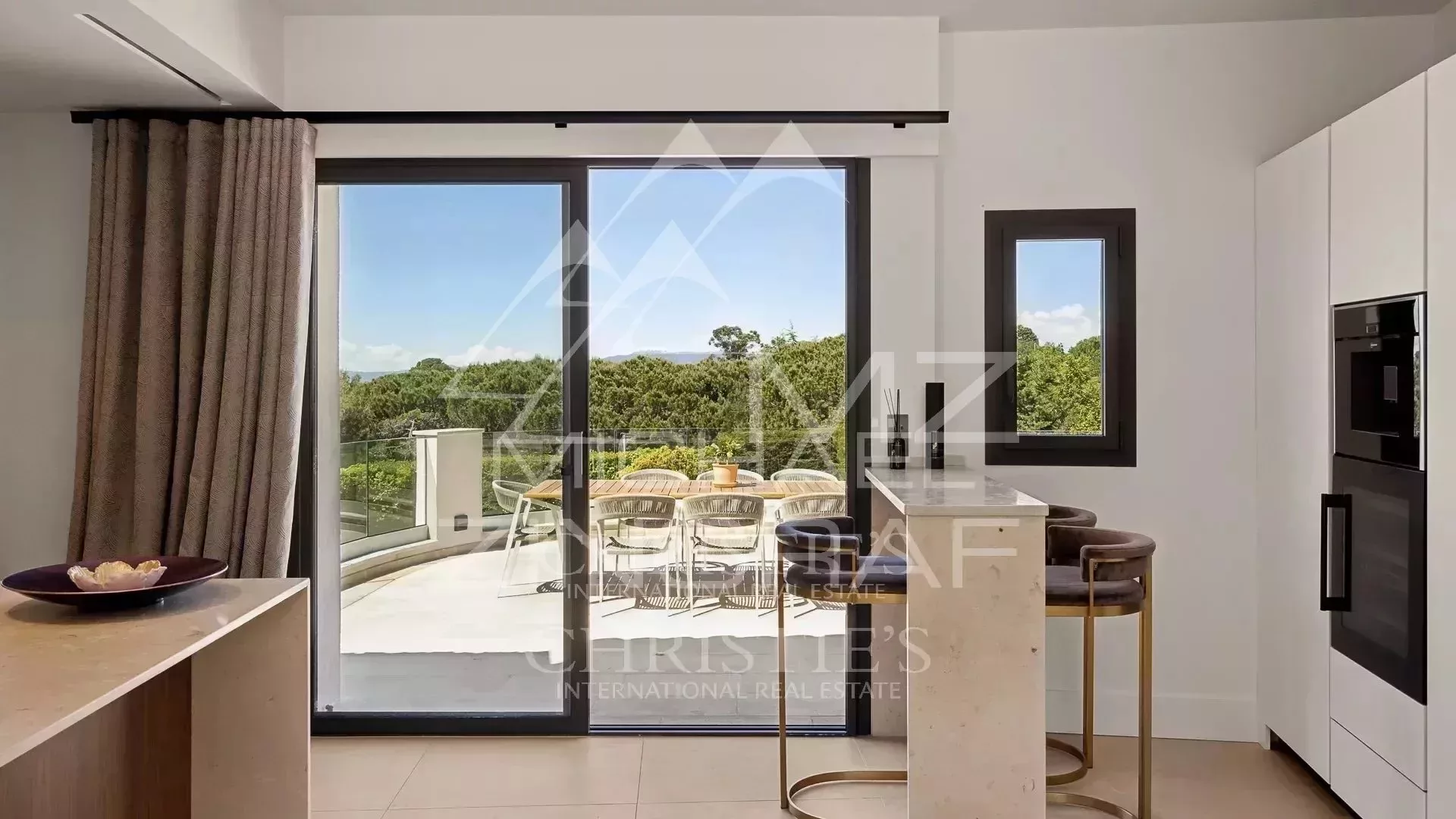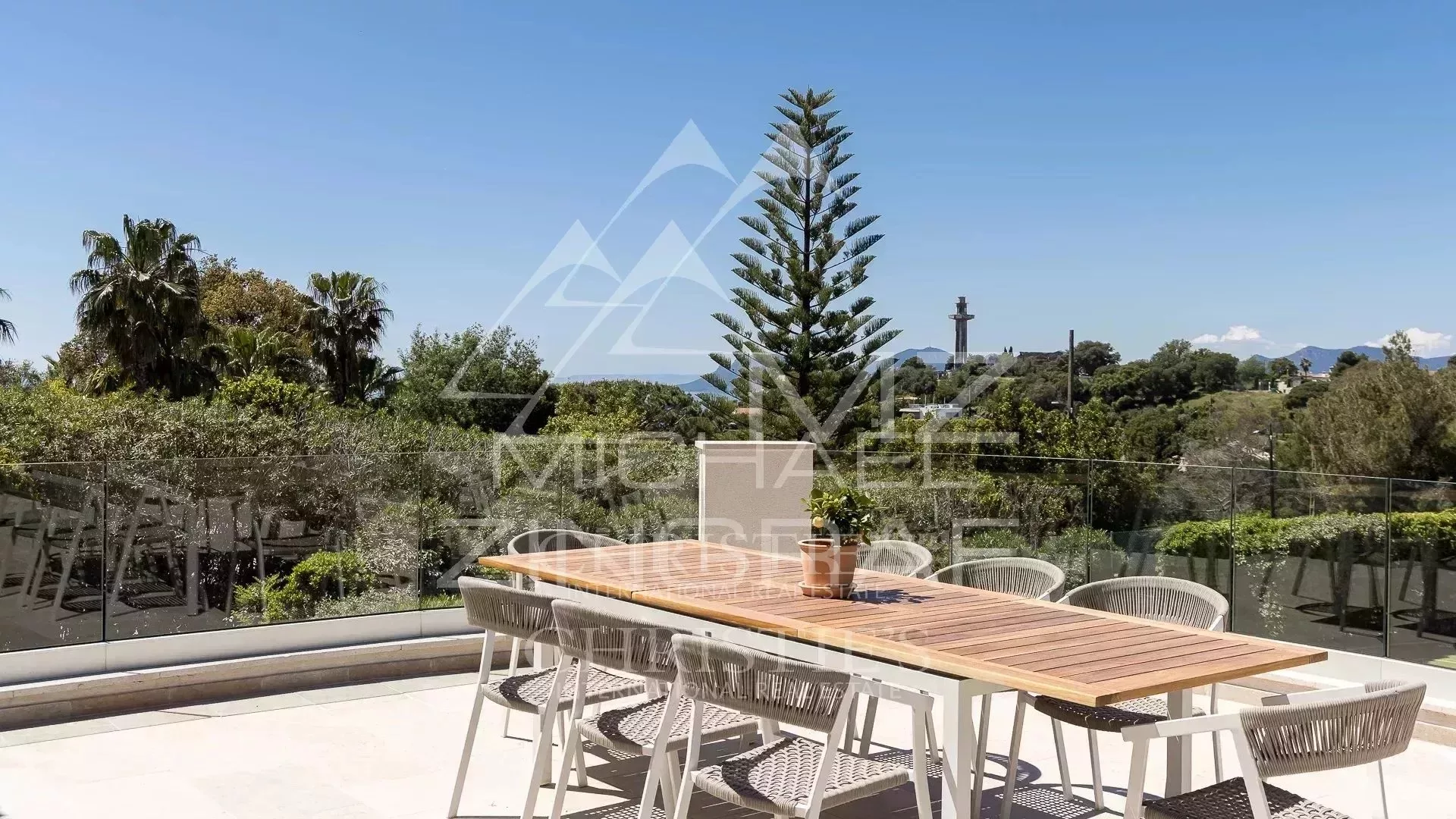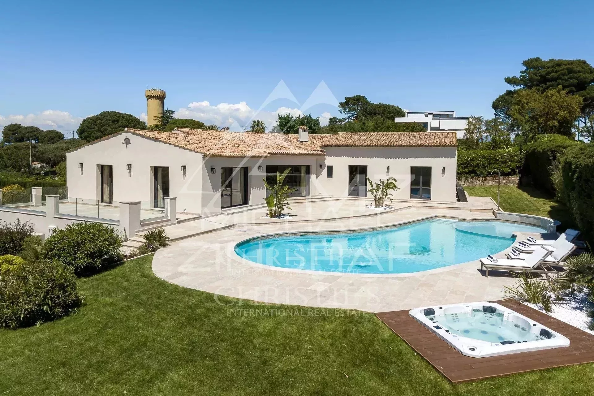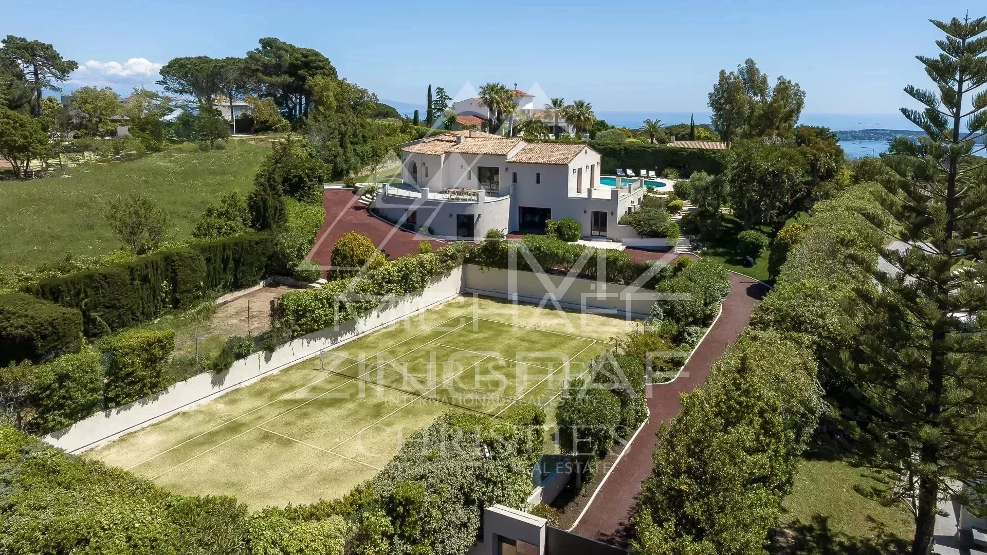 Sur les hauteurs de Cannes, en plein cœur du quartier résidentiel de Super-Cannes, en position dominante, surplombant la mer et l’Estérel, charmante propriété de style provençal moderne, entièrement et récemment rénovée dans l'esprit contemporain. La villa d'environ 355 m2 offre tout le confort et l'intimité à la vie de famille. Avec ses 6 chambres en suite dont 2 indépendantes elle offre la possibilité de recevoir confortablement des amis et / ou d'avoir du personnel à demeure.
