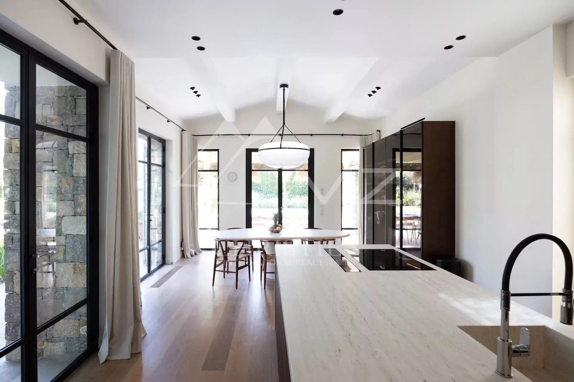 Villa néo-classique située au cœur d'un quartier calme et résidentiel, d'environ 250 m², comprenant : au rez-de-chaussée un séjour avec accès terrasse et une cuisine ouverte équipée, une salon TV, une salle à manger, une chambre de maitre en suite avec salle de bains et douche. A l'étage, trois chambres en suite avec salle d'eau. Buanderie. Piscine traditionnelle chauffée. Beau terrain entièrement paysagé de 1800m². Garage pour 2 voitures.