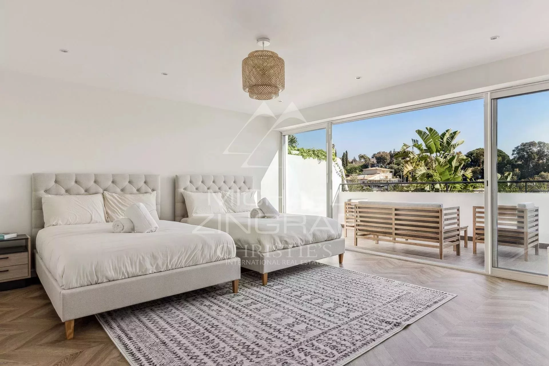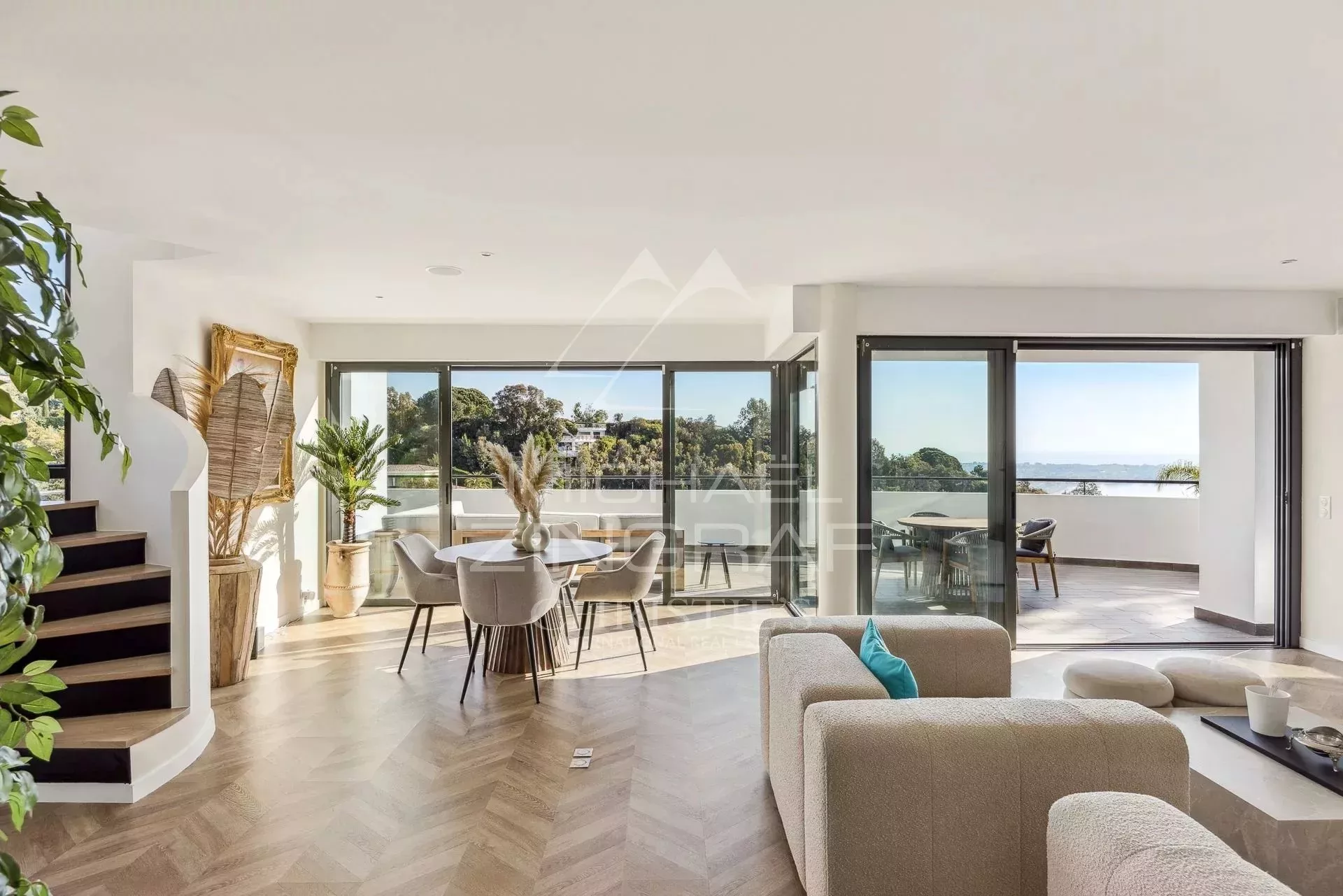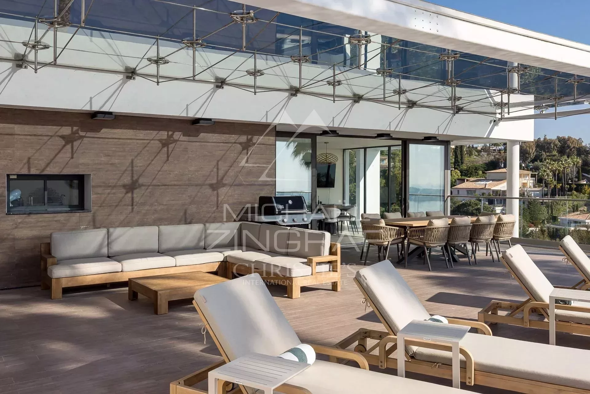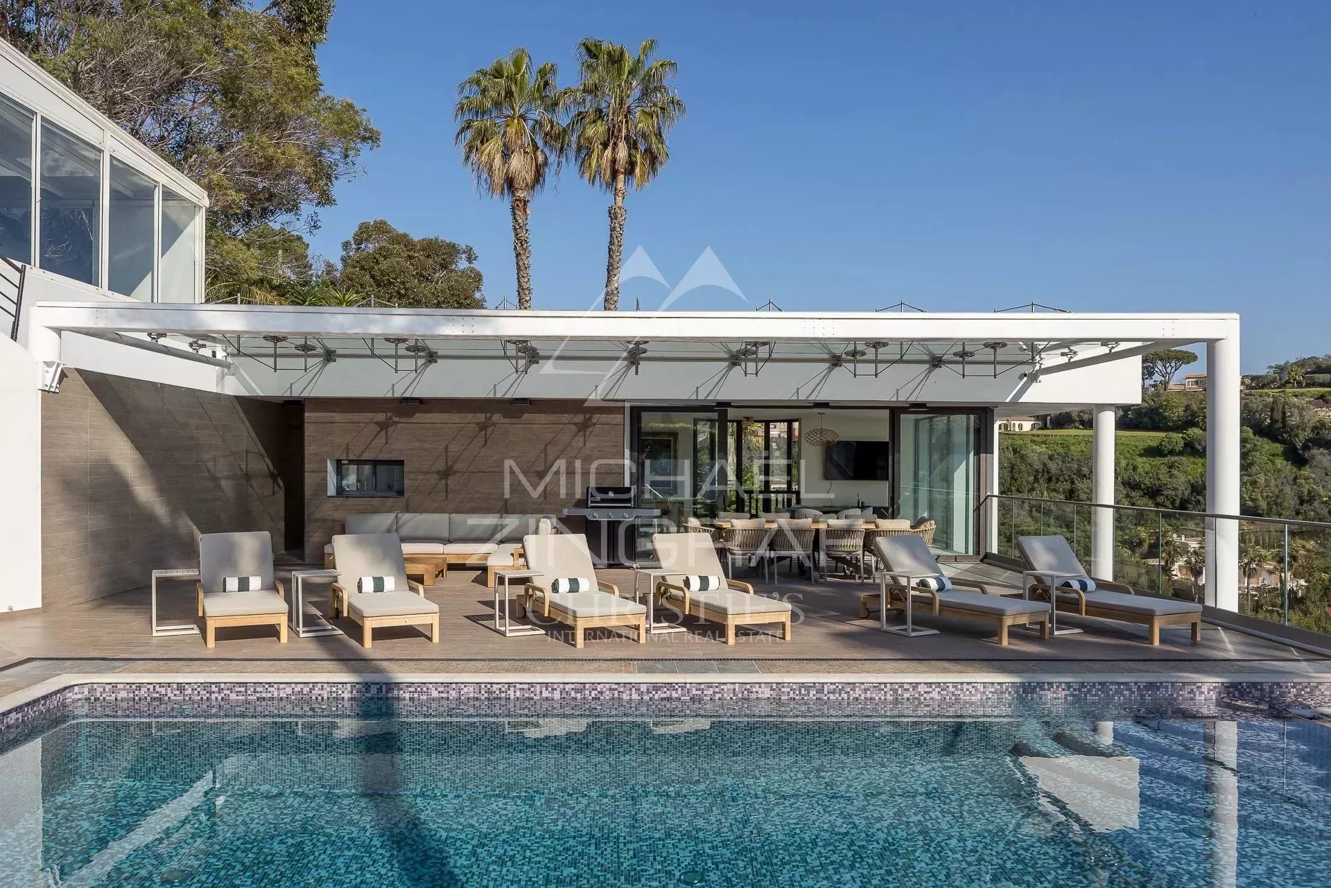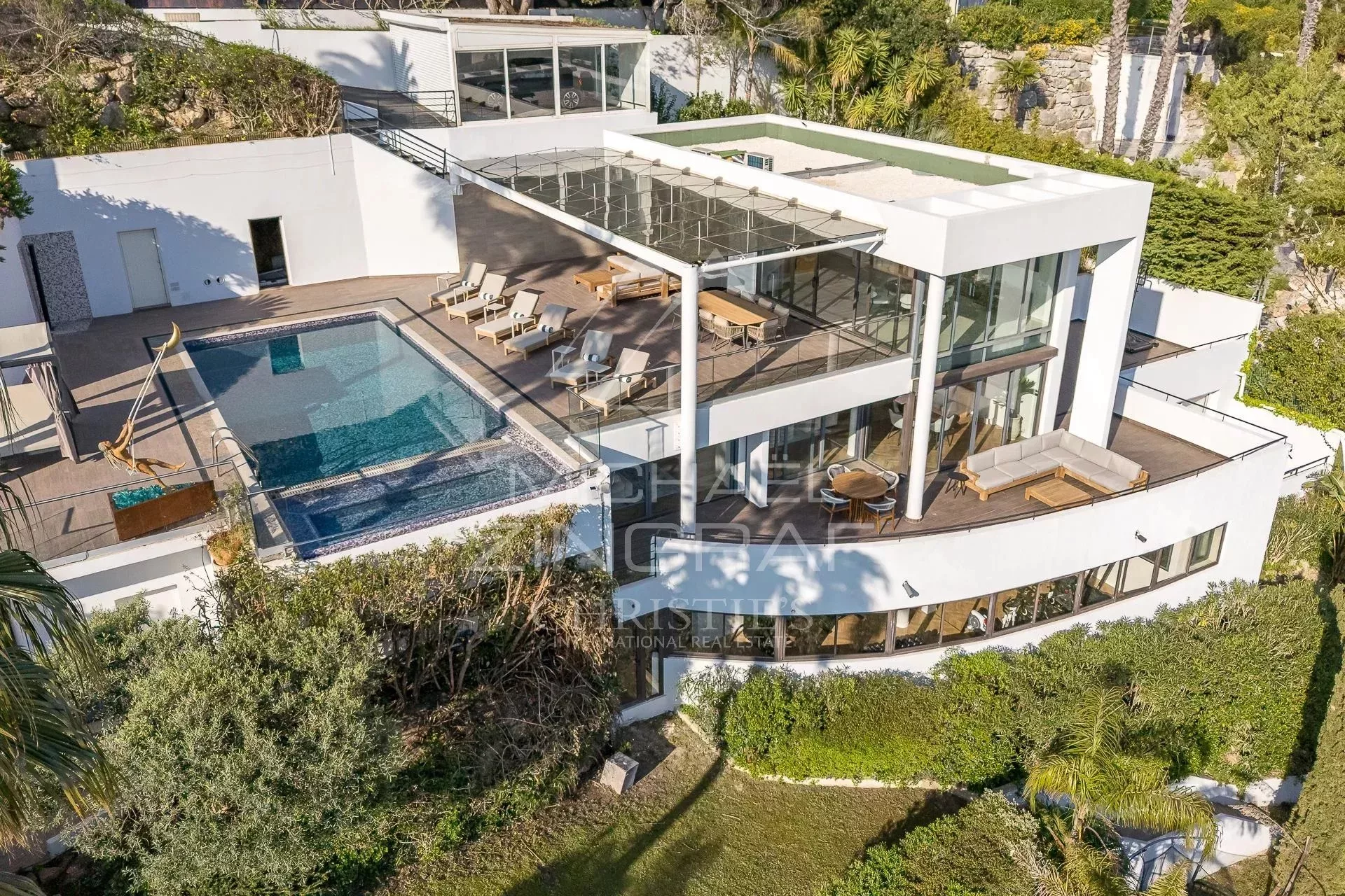 Superbe villa contemporaine de 333m² environ, entièrement rénovée avec des matériaux de qualité, comprenant : une cuisine équipée, une salle à manger, deux séjours, 5 chambres en suite avec 4 salles de douche et une salle de bains, une buanderie, une pièce libre. Piscine avec jacuzzi. Annexe avec une salle de douche et couchage. Terrain de 2172m².