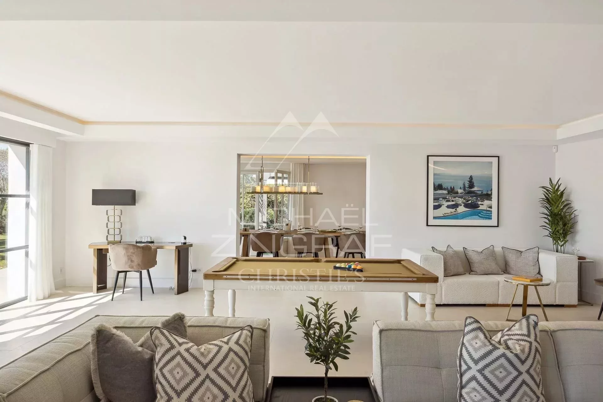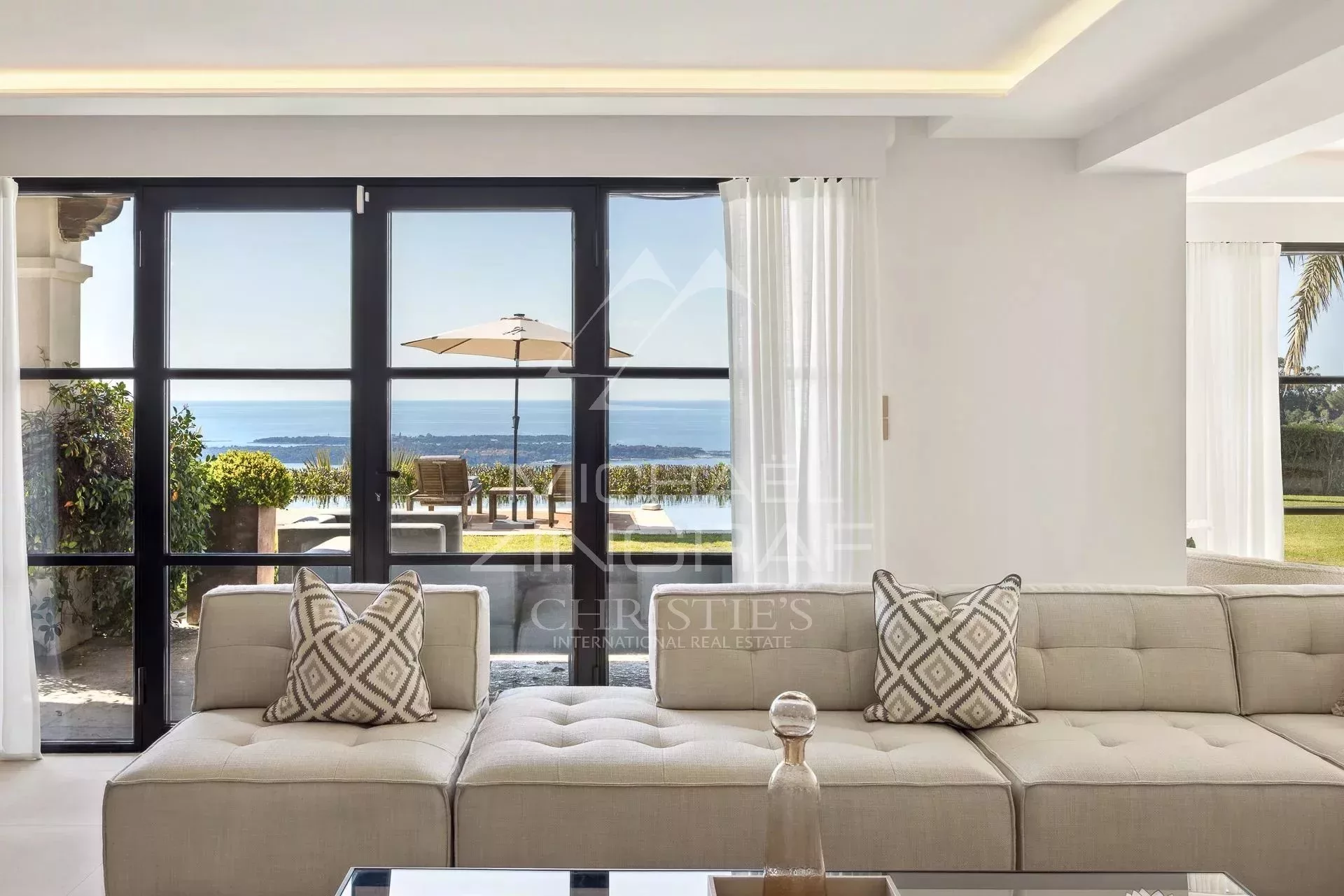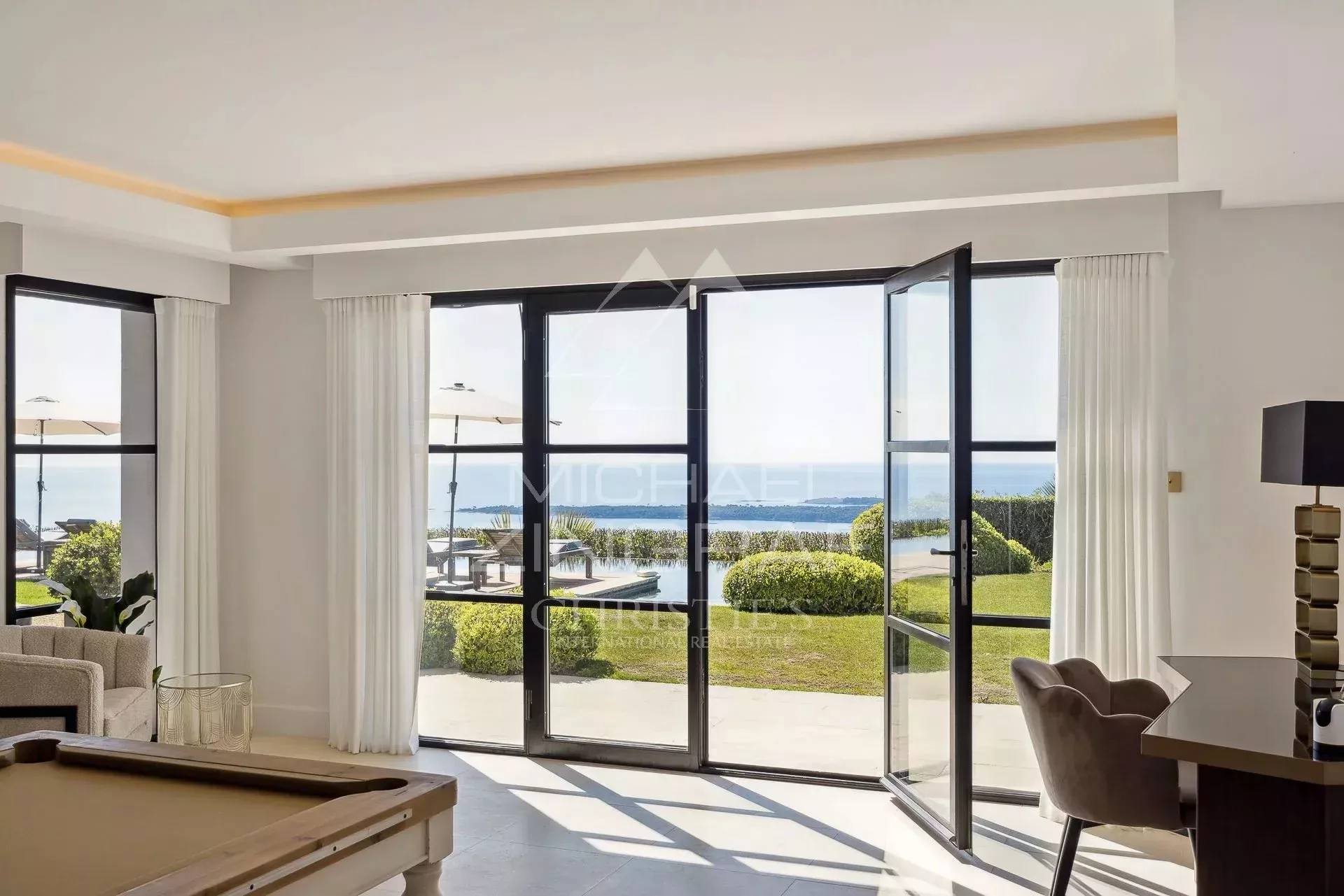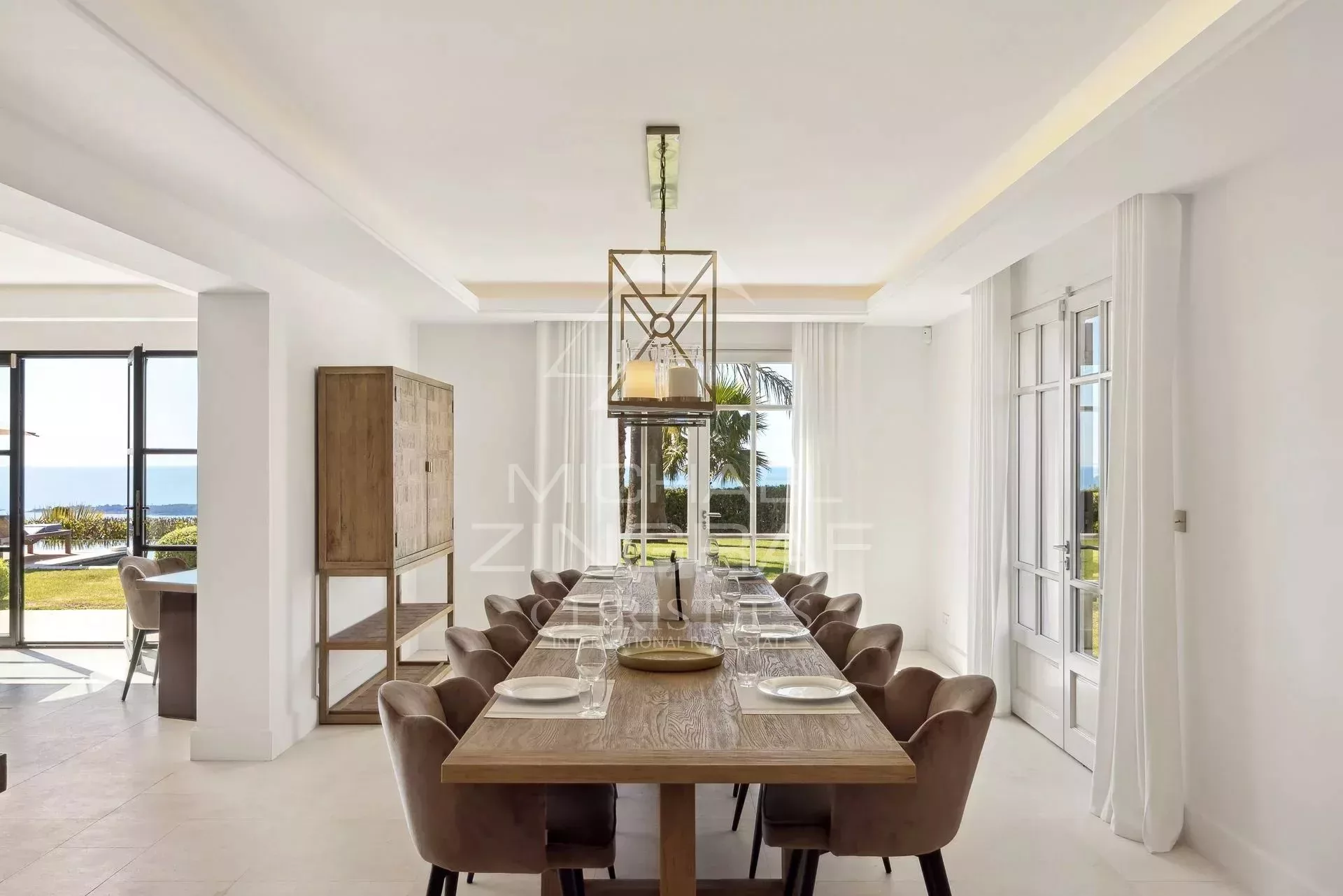 Cette magnifique villa de 450² environ, à la rénovation très moderne, sur trois niveaux, propose un très grand séjour/cuisine lumineux doté d'une vue panoramique sur la mer et donnant sur un grand jardin avec piscine chauffée 13x4.