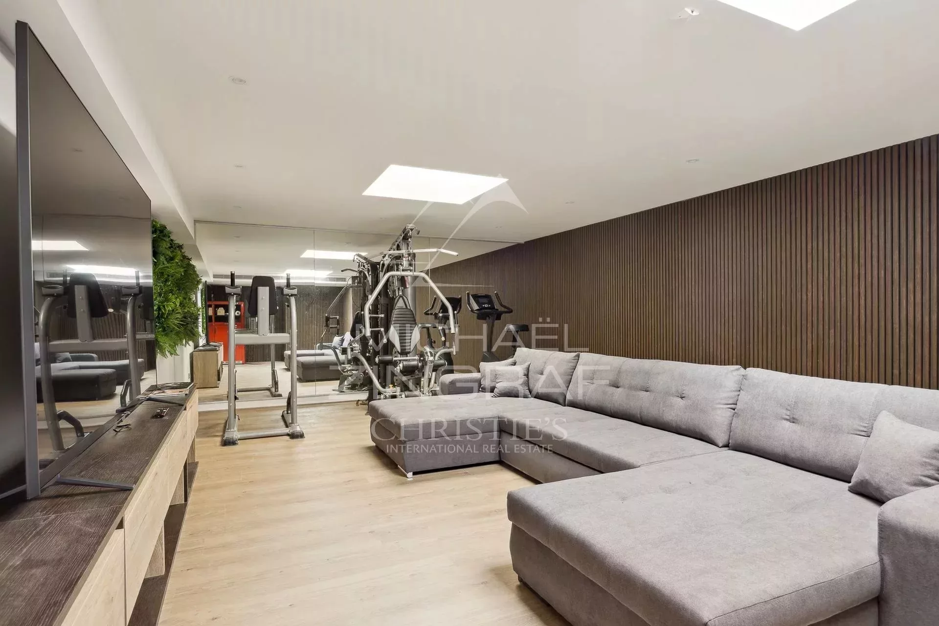 Quatre chambres en suite dont une master, un studio séparé, une salle de sport, une salle de cinéma, un terrain de jeux.