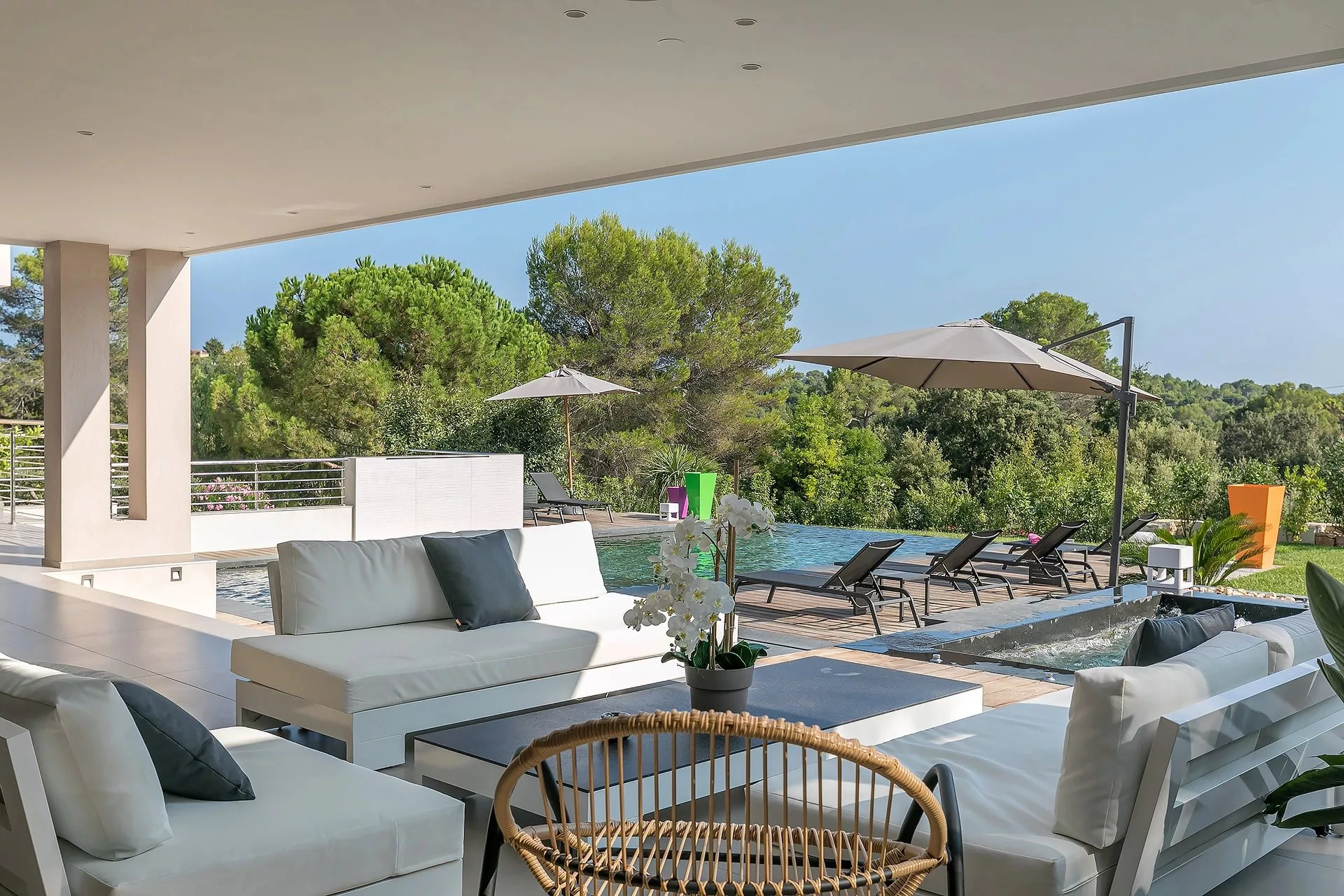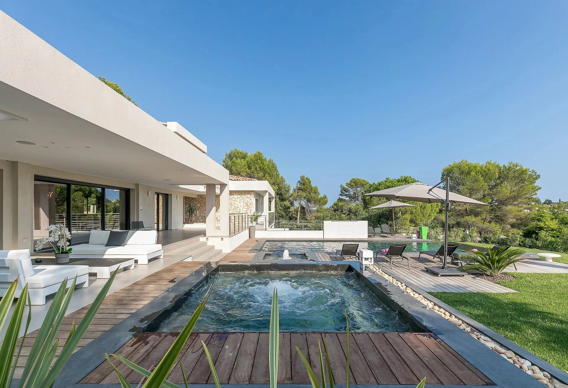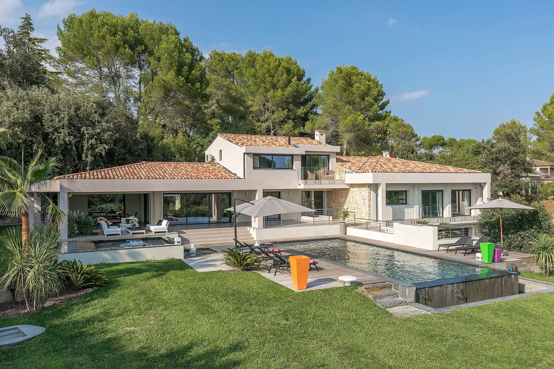 Pas très loin du vieux village de Valbonne et proche des commodités, au calme, cette magnifique villa contemporaine d'environ 300 m2 vient d'être terminée. Entièrement équipée, la maison offre une grande réception ouvrant sur la piscine et la salle à manger d'été, ainsi que six chambres (dont 5 sont en suite).