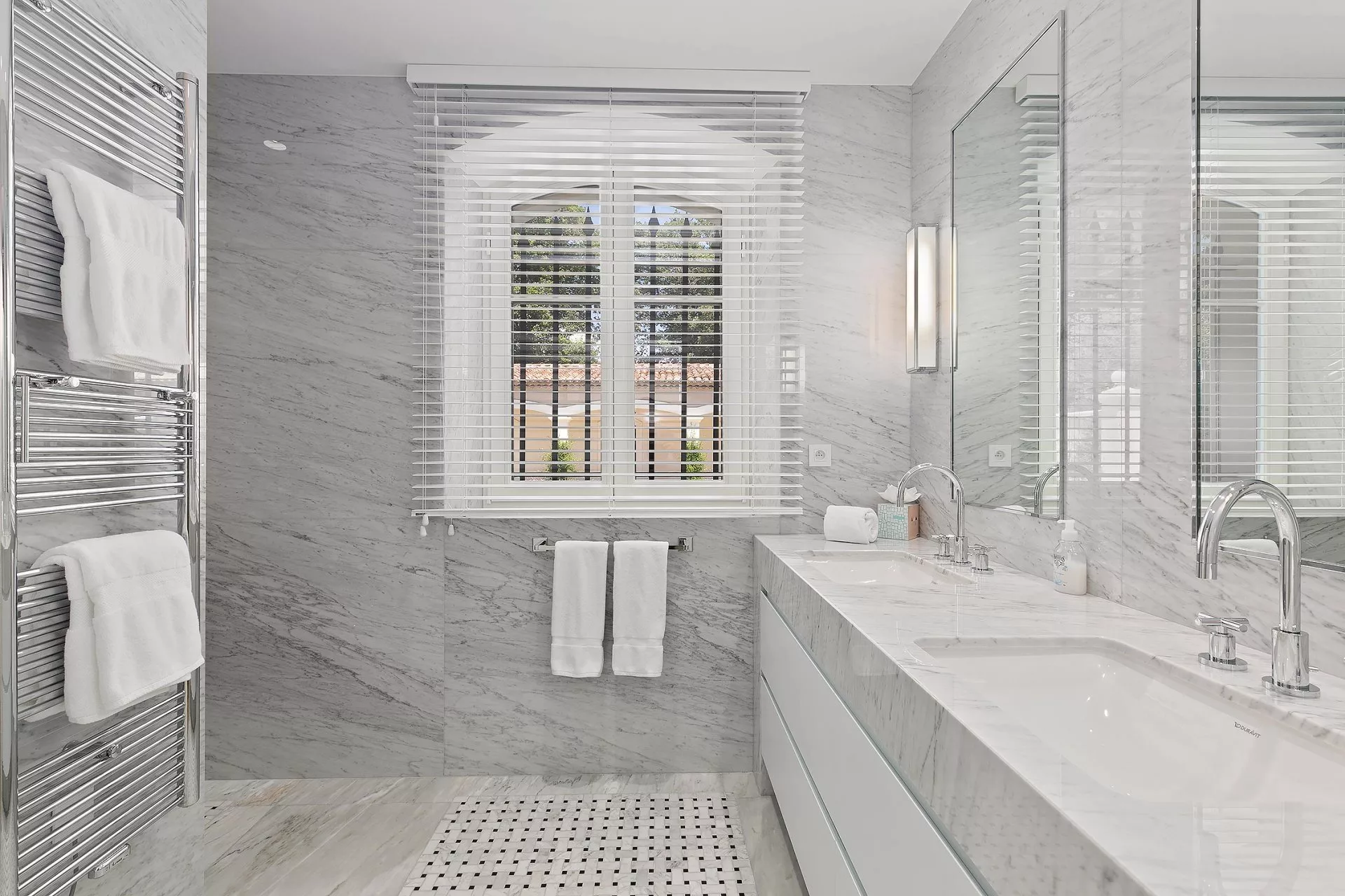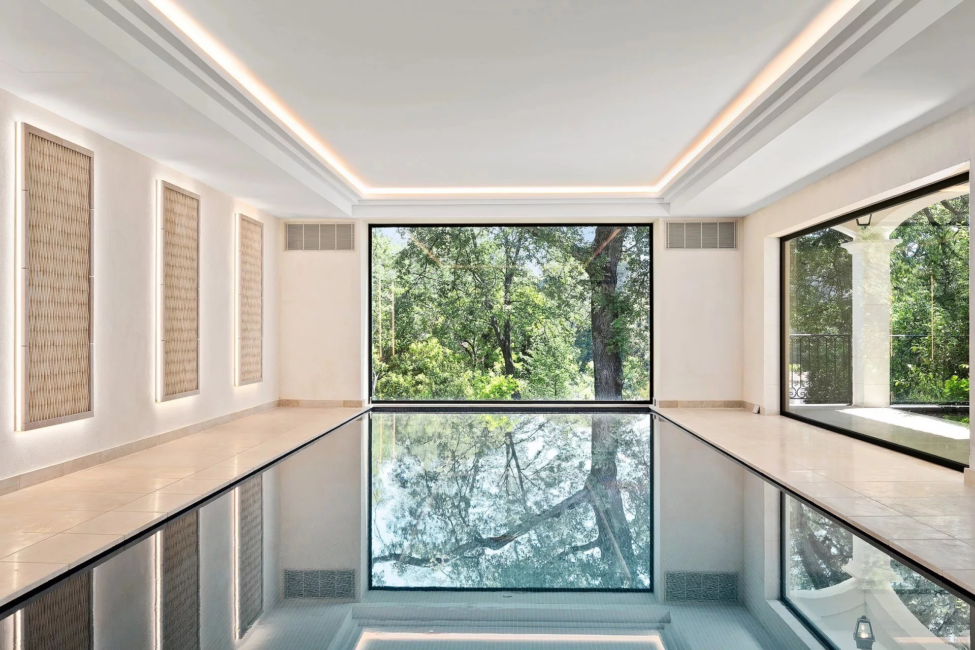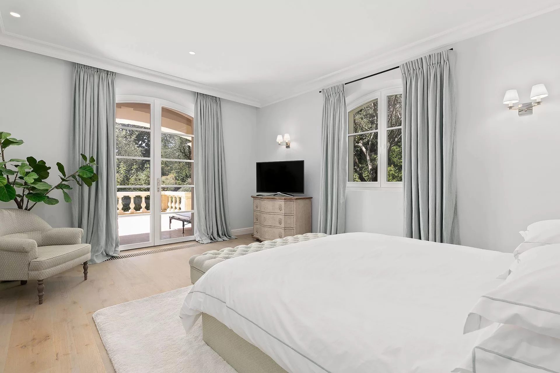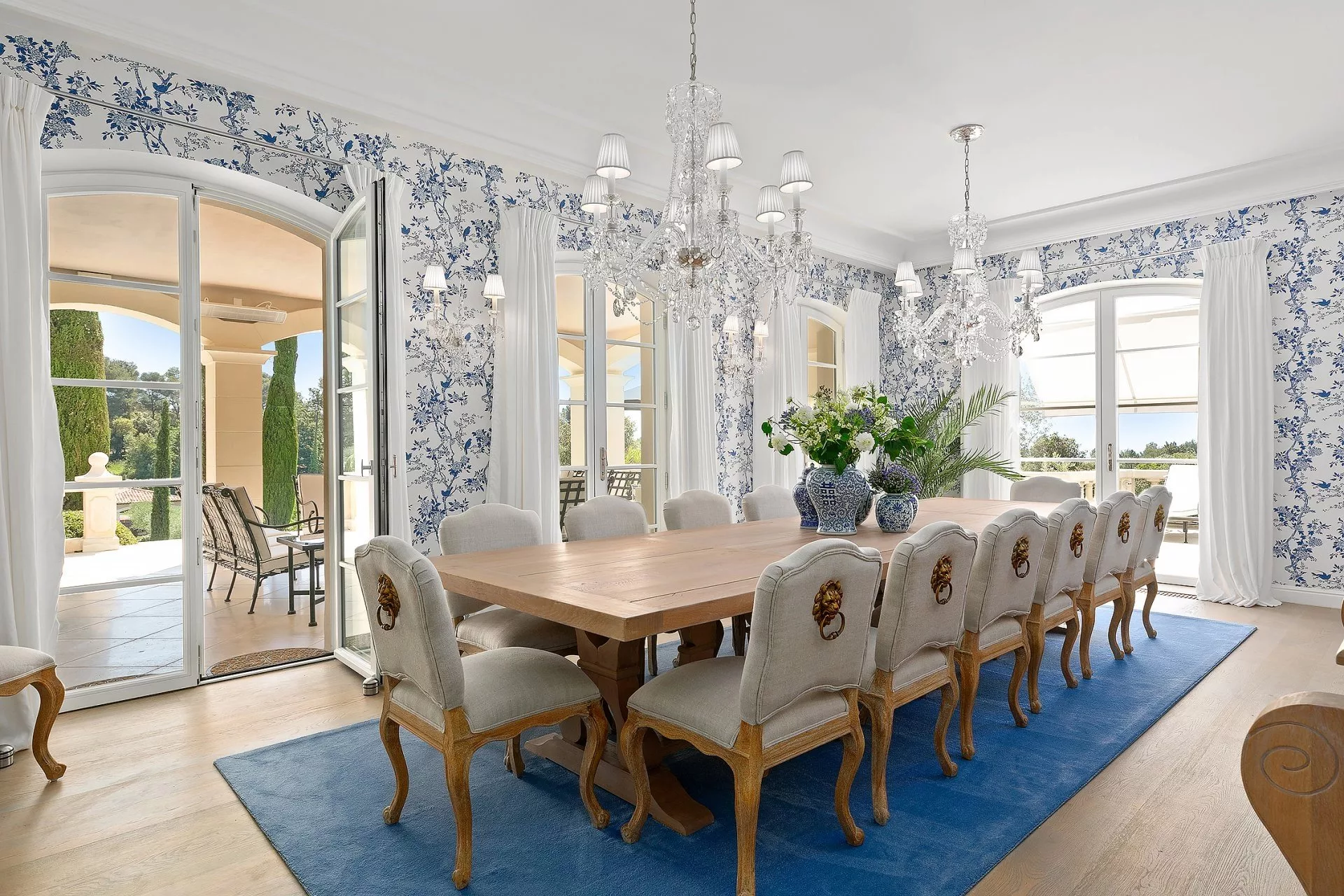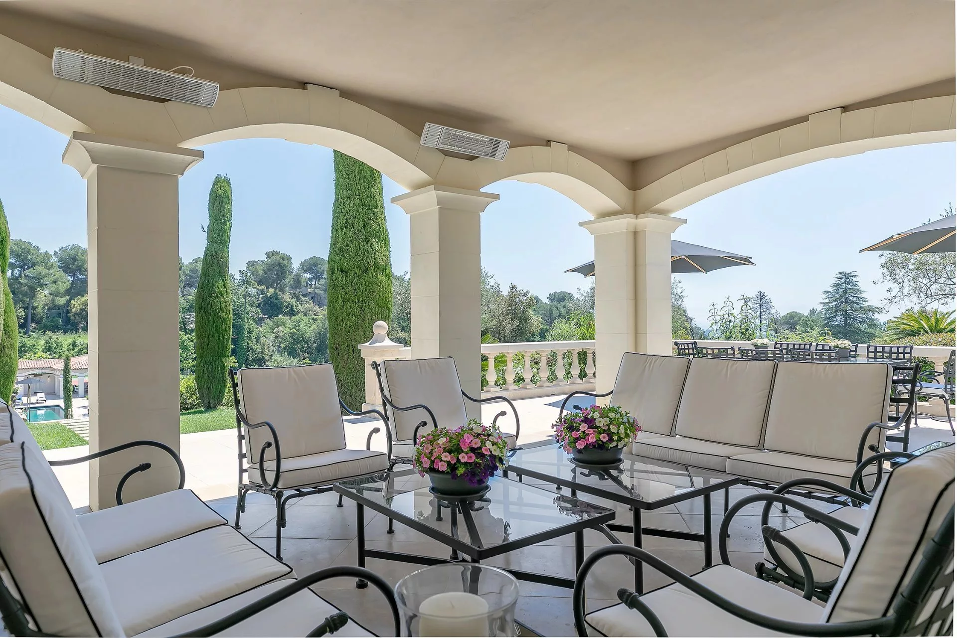 Ce magnifique domaine situé à seulement quelques minutes du village de Saint-Paul de Vence est un véritable havre de paix s'étendant sur plus de 3,75 ha. Une belle allée vous guide vers ce manoir spectaculaire aménagé avec beaucoup de goût et de prestance offrant des finitions les plus sophistiquées et modernes (Ralph Lauren). La maison principale dispose de 6 suites avec salles de bains privatives, ainsi que d'un élégant séjour donnant sur des jardins luxuriants. Il y a également un appartement d'invités indépendant, aussi joli que la propriété principale, et un logement pour le personnel (occupée pendant la location). La propriété est équipée d'un home cinéma, d'une salle de jeux avec billard, d'une salle de sport, d'un sauna, de deux piscines (intérieure et extérieure 25x8), d'un court de tennis et d'une large cuisine d'été. Belle vue sur les collines environnantes jusqu'à la mer. Le personnel est inclus.