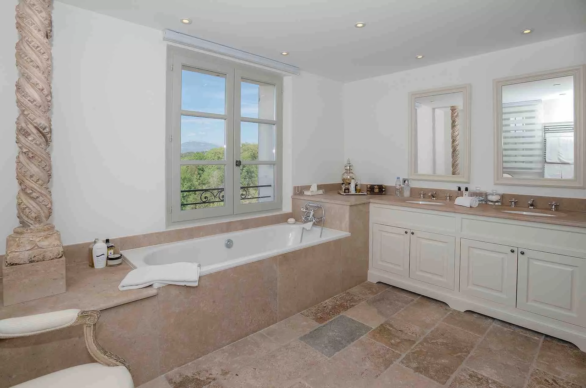 Située à quelque minutes à pied du village de Mougins, cette superbe propriété bénéficie d'un environnement calme et résidentiel. Entièrement rénovée et décorée avec goût, elle offre 5 chambres en suite, une piscine chauffée, un court de tennis.