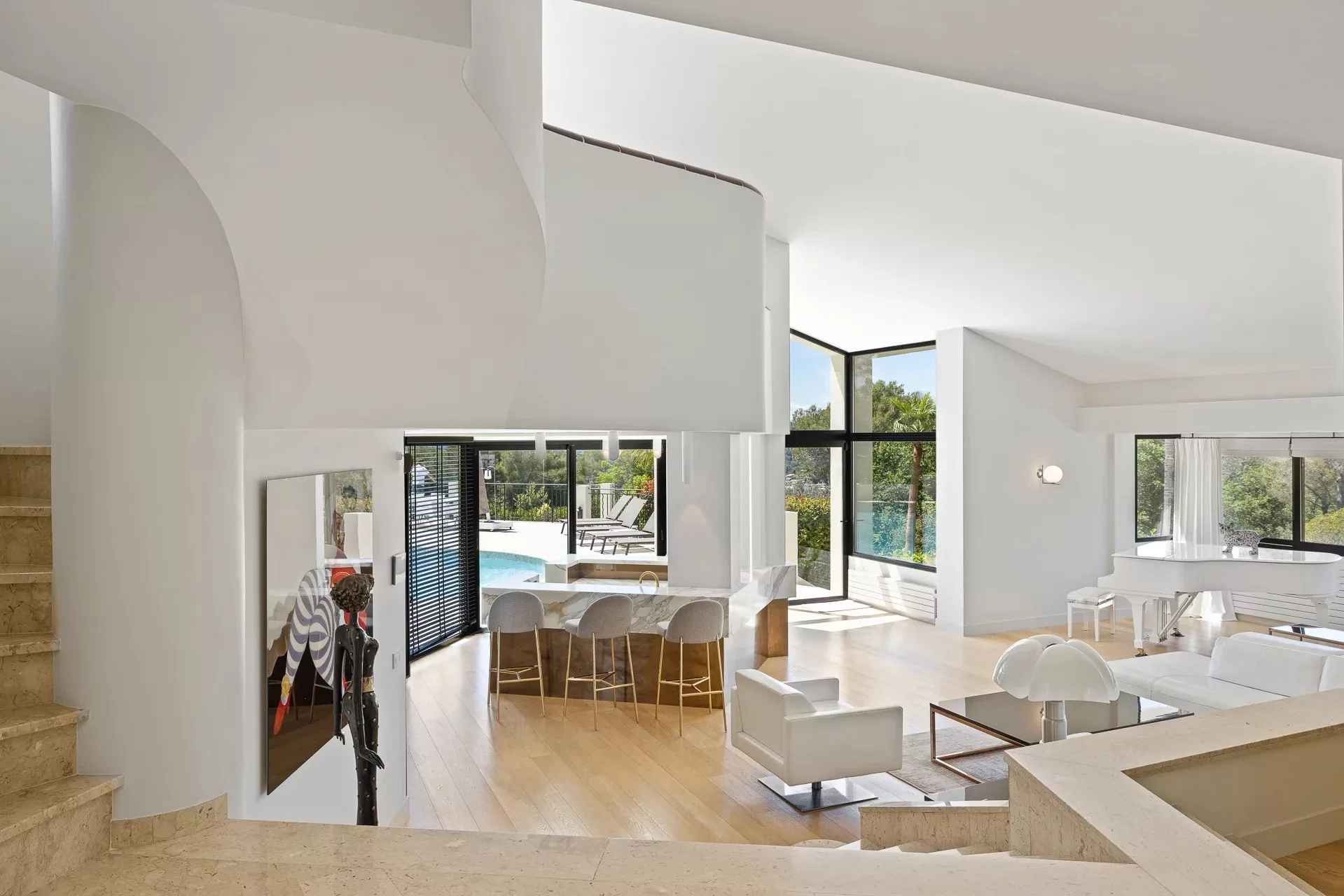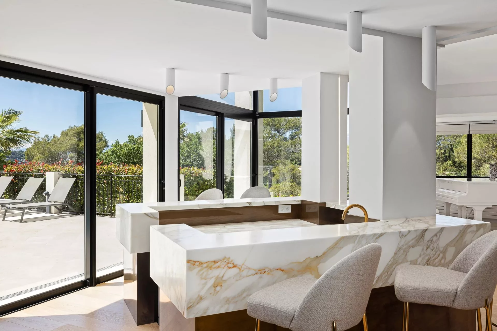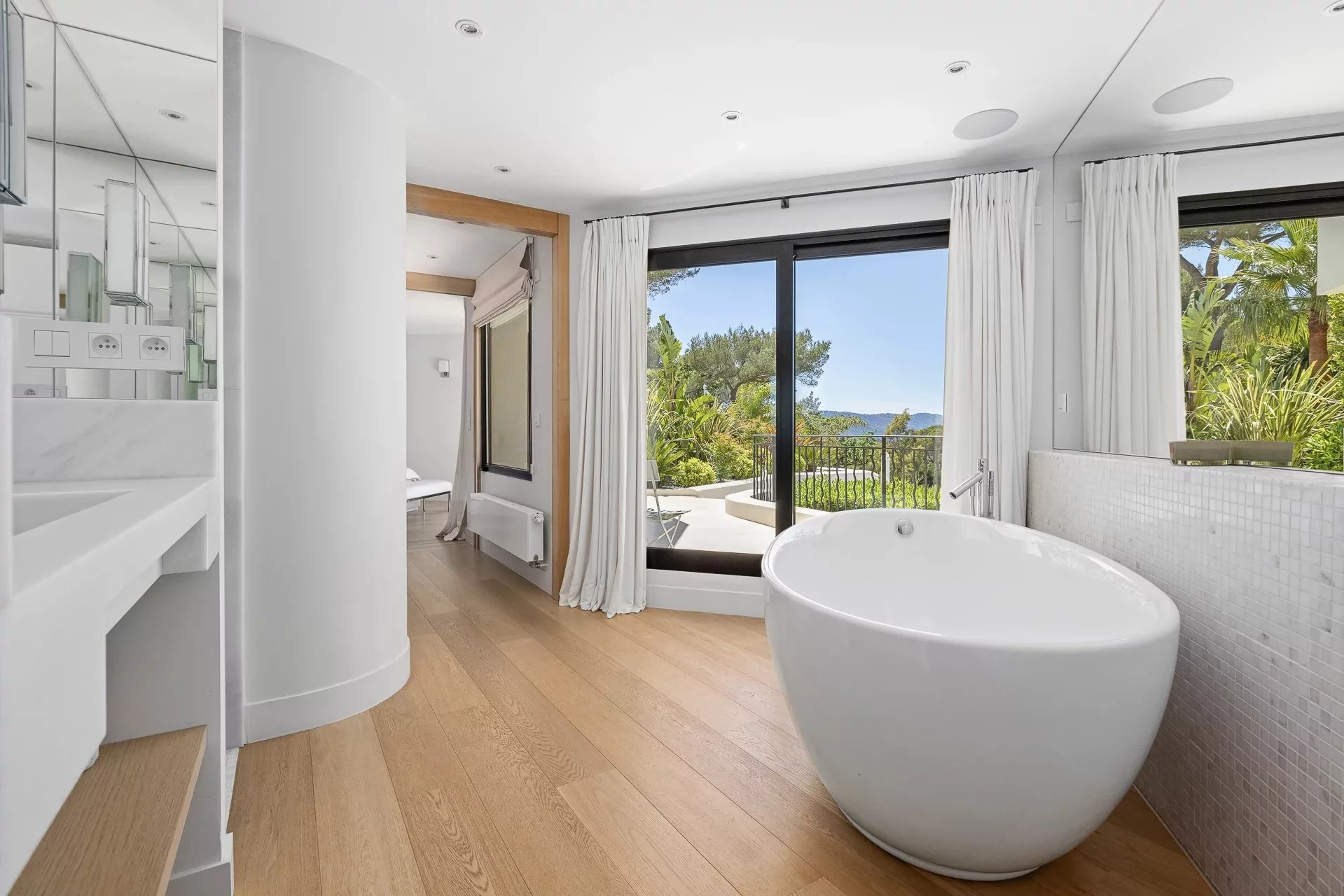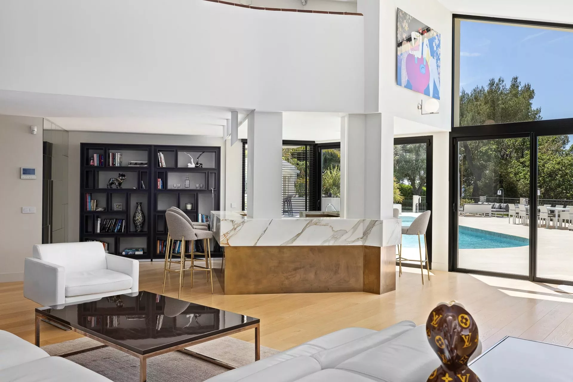 Située dans un domaine privé, dans un quartier calme et résidentiel, cette villa de 450m² à la position dominante offre 5 chambres doubles et 5 salles de bain/douche en suite, avec une vue dégagée sur les collines environnantes et le village de Mougins. Rénovée avec goût et offrant des prestations haut de gamme, cette propriété propose également de nombreux espaces de détente intérieur et extérieur avec une triple réception ouvrant sur la piscine et ses nombreuses terrasses aménagées. Piscine chauffée au sel de 17m. Pool house avec bar, douche et toilettes.