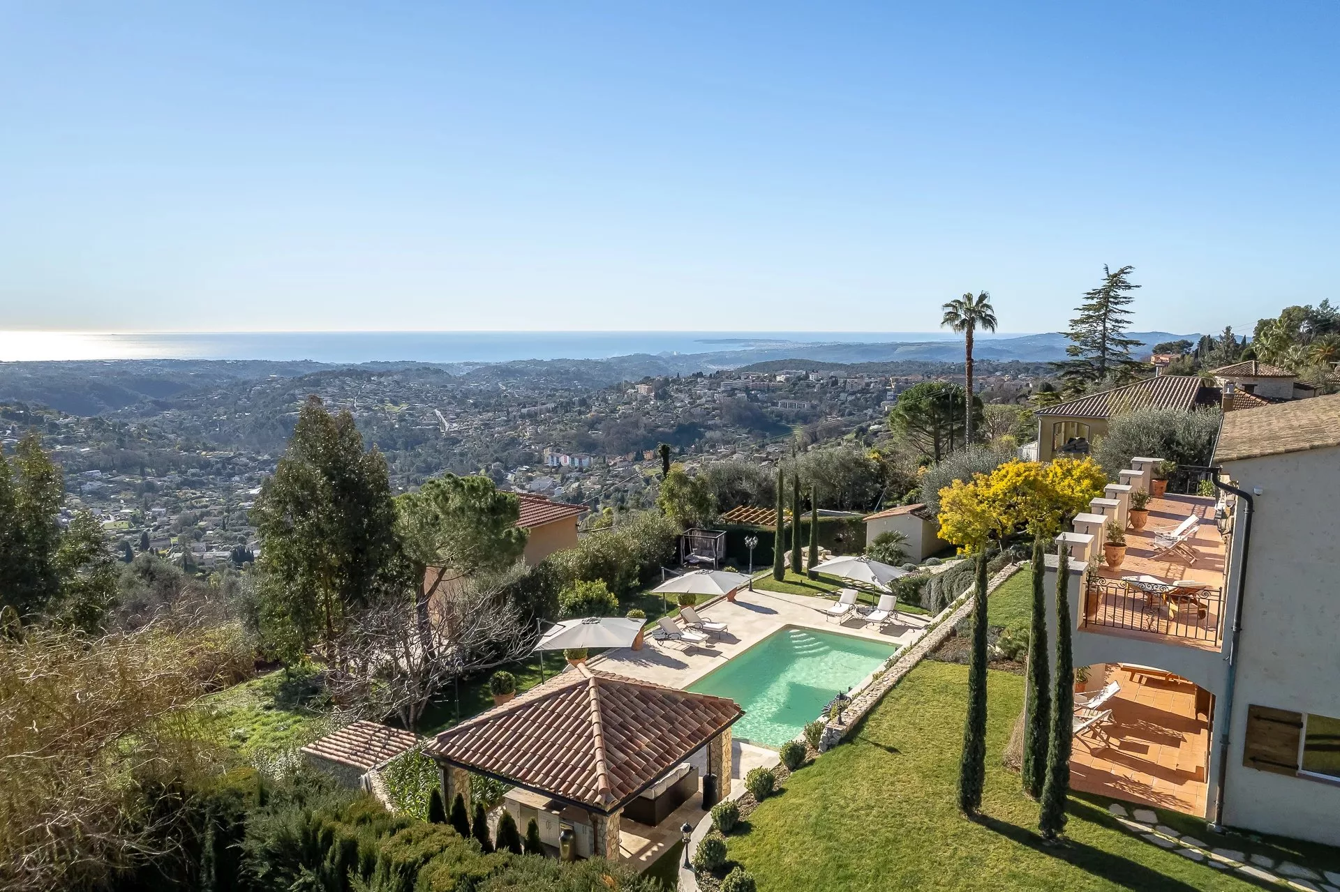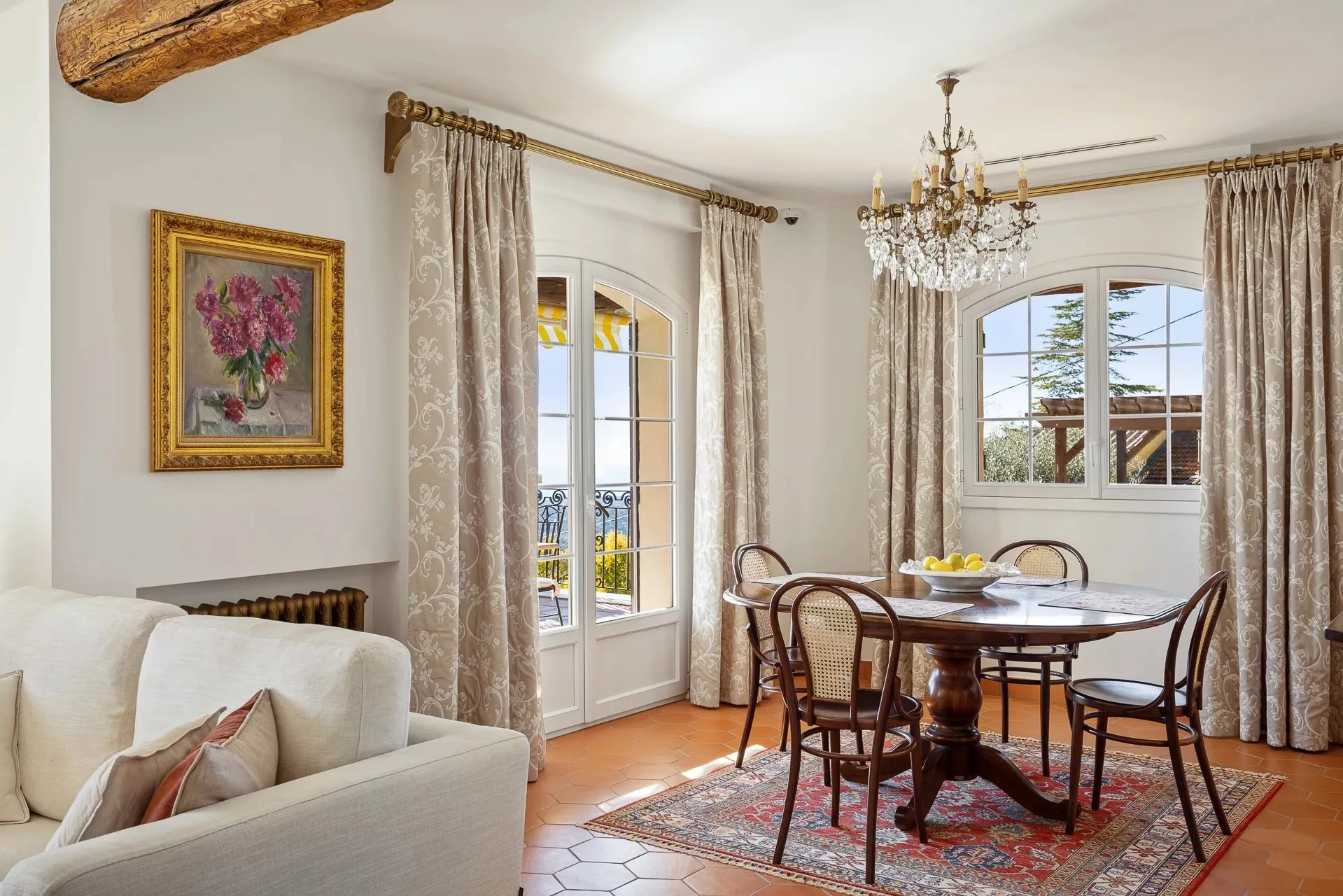Située en position dominante et offrant une vue mer époustouflante, venez profiter de cette magnifique bastide de charme entièrement rénovée et offrant des prestations de hautes qualités : 4 chambres et 4 salles de bain en suite, de nombreux espaces réceptifs intérieurs et extérieurs, 2 grandes terrasses exposées plein sud aménagées en salons et salles à manger d'été. Belle piscine au sel chauffée et pool house aménagé pour de bons moments de convivialité.