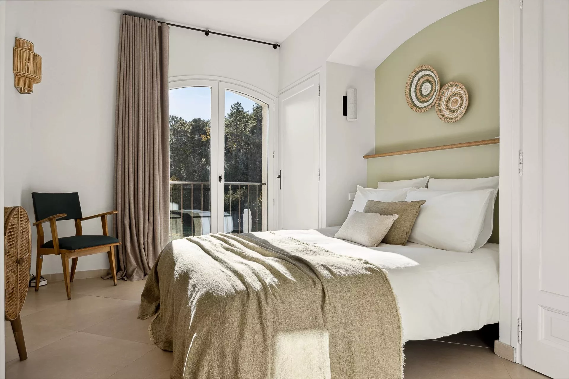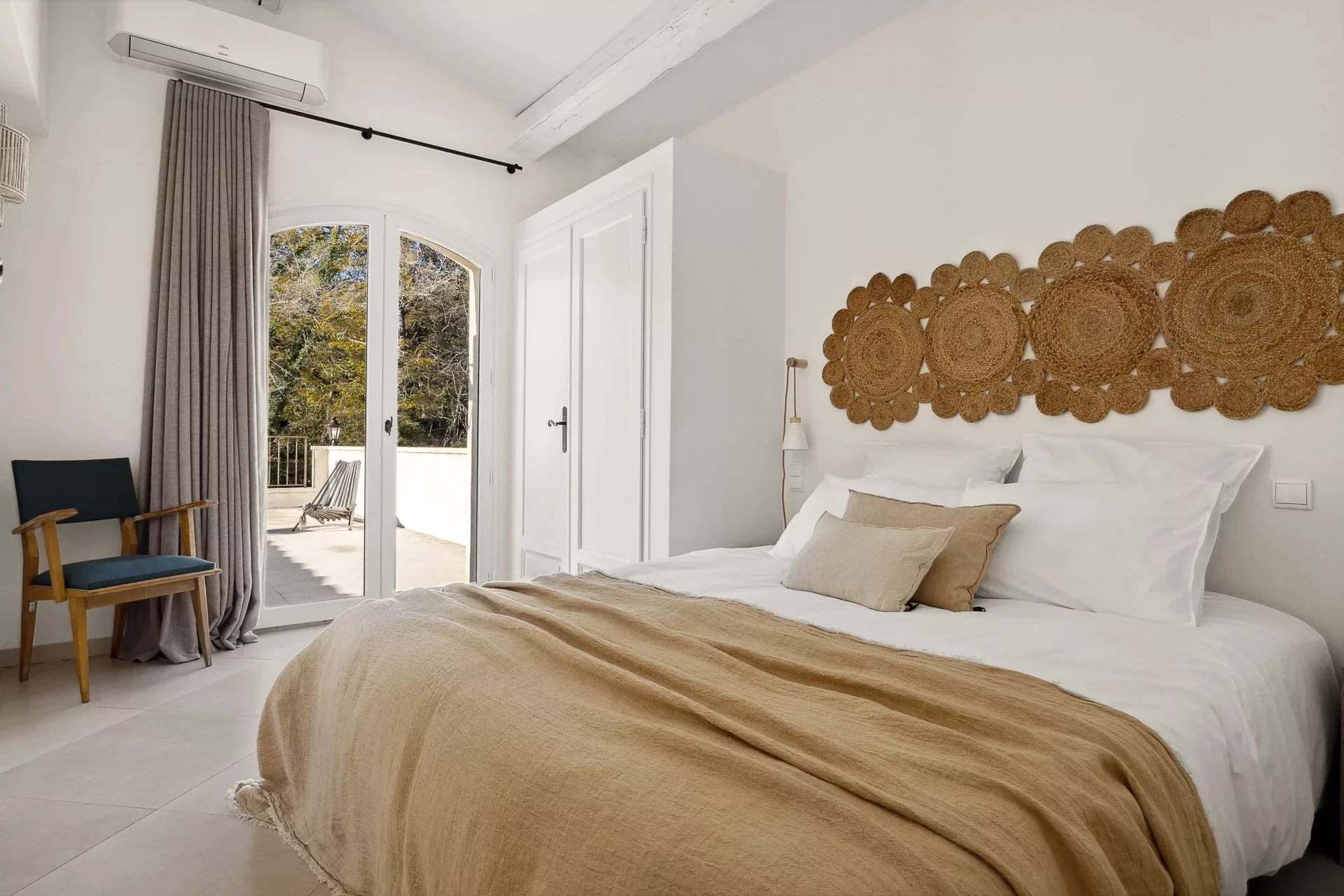 À l’étage, une chambre avec mezzanine, une salle de douche en-suite et un petit balcon privé. Sur le même étage, deux autres chambres en- suite avec une vue sur le jardin et la piscine et enfin une dernière chambre avec une salle de douche et un grand solarium aménagé.