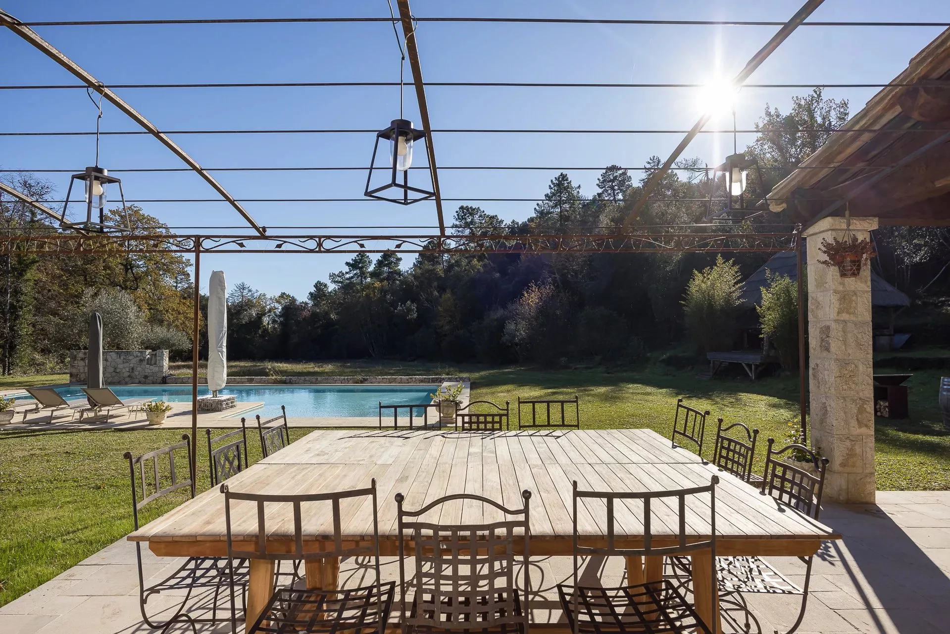 Les extérieurs offrent de belles prestations, un grand espace repas pour 12 personnes avec barbecue, plancha et four à pizza, une piscine de 15m x 8m, une belle paillote avec cuisine d’été et un grand parc arboré. Un grand espace de stationnement.