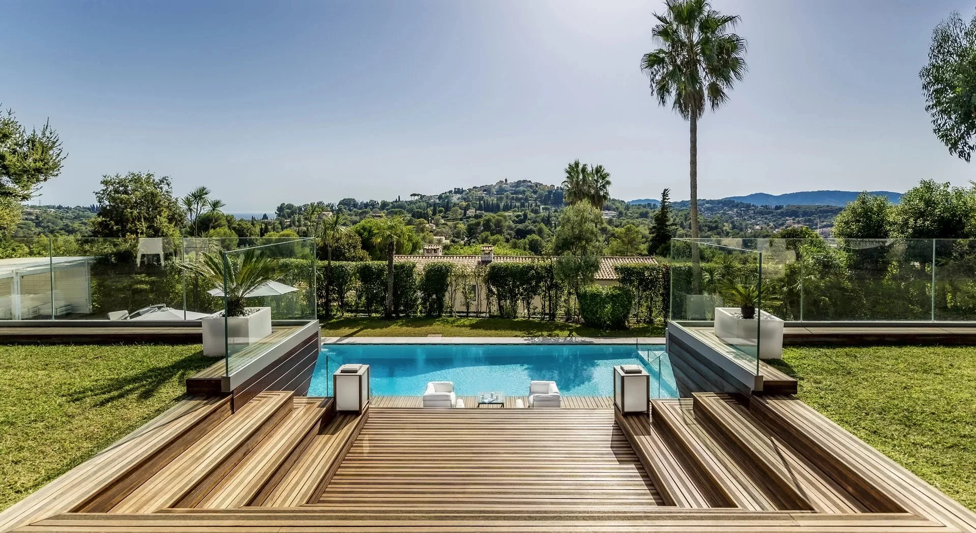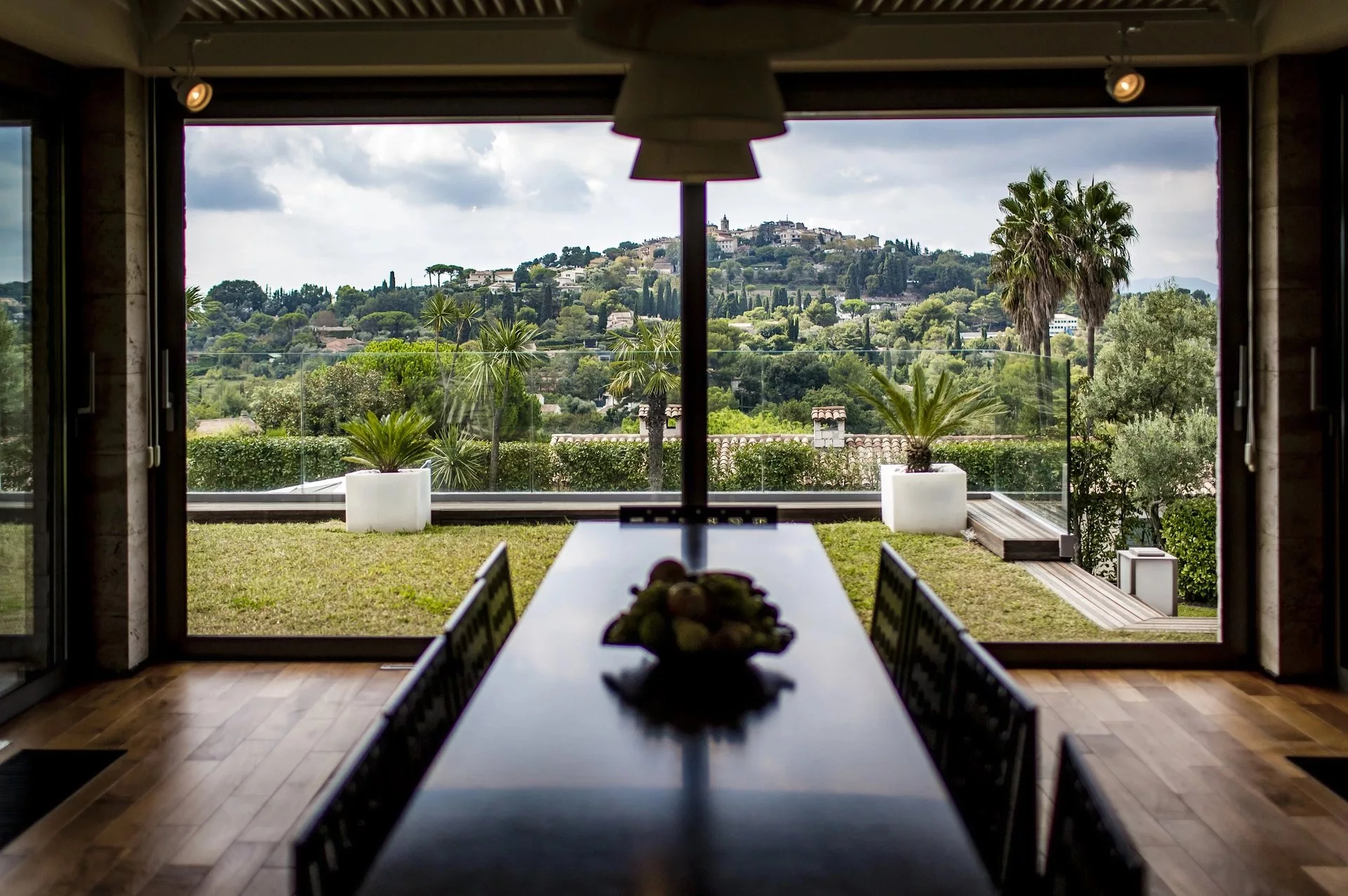 À quelques minutes du vieux village de Mougins, somptueuse propriété contemporaine avec une vue panoramique mer et village. Sur trois niveaux, la maison d'une superficie totale construite d'environ 750 m² possède un grand espace de réception avec cheminée, une cuisine/salle à manger, six chambres en suite, une majestueuse suite de Maître avec 2 jacuzzis (intérieur et extérieur) ainsi que deux chambres supplémentaires en cours de création. Large espace détente avec salle de cinéma, bar, billard, le tout ouvrant sur la piscine. Salle de gym, sauna, studio de service avec accès indépendant. Véritable coup de cœur pour ce bien d'exception dans le plus beau quartier de Mougins.
