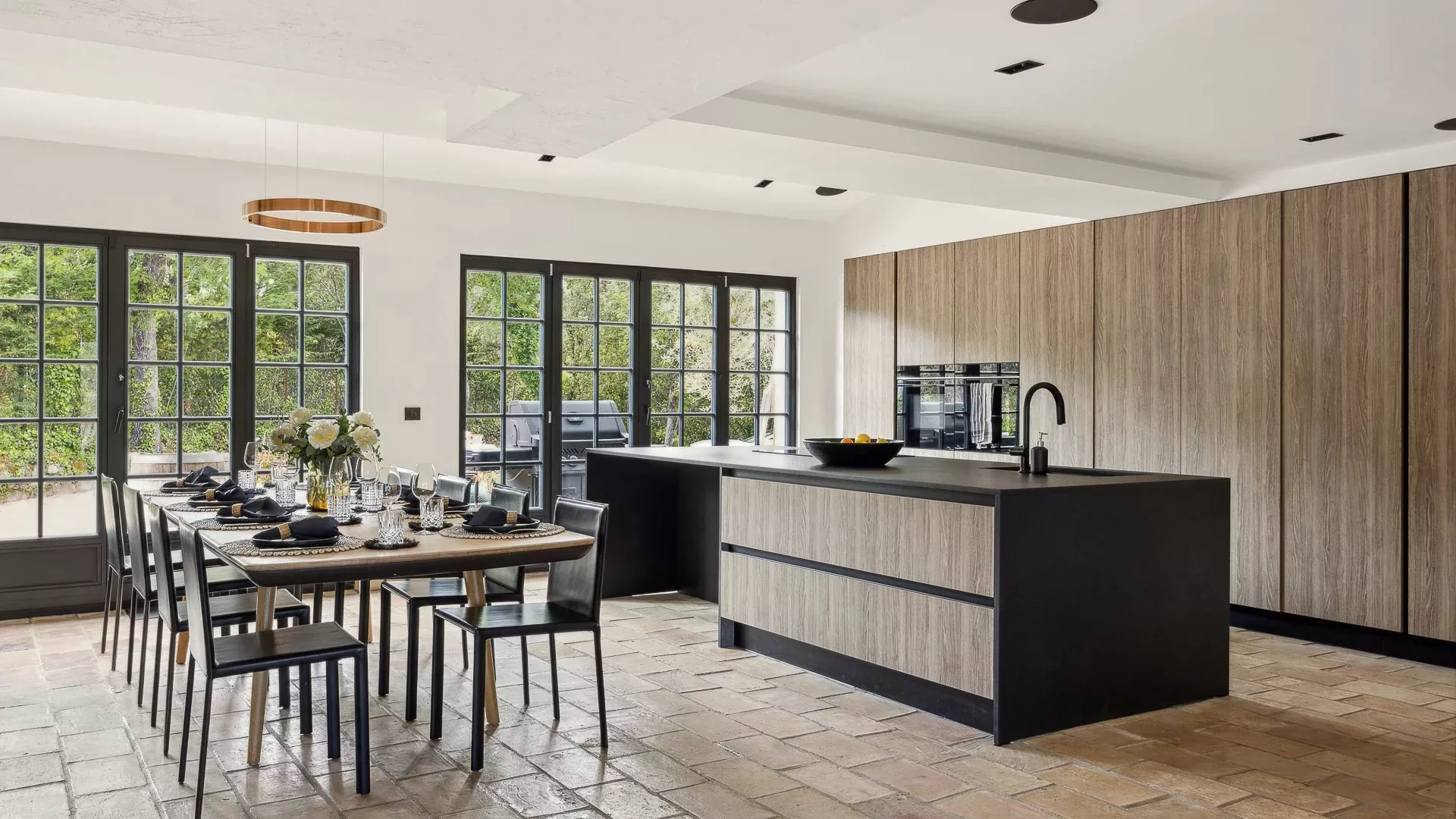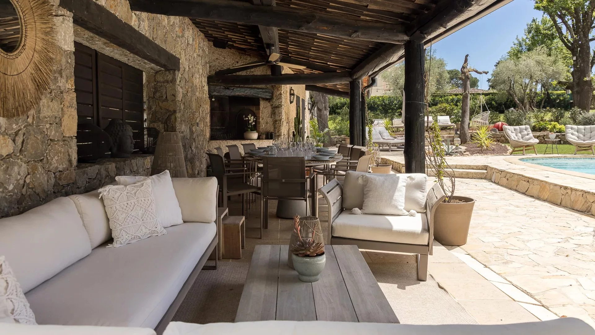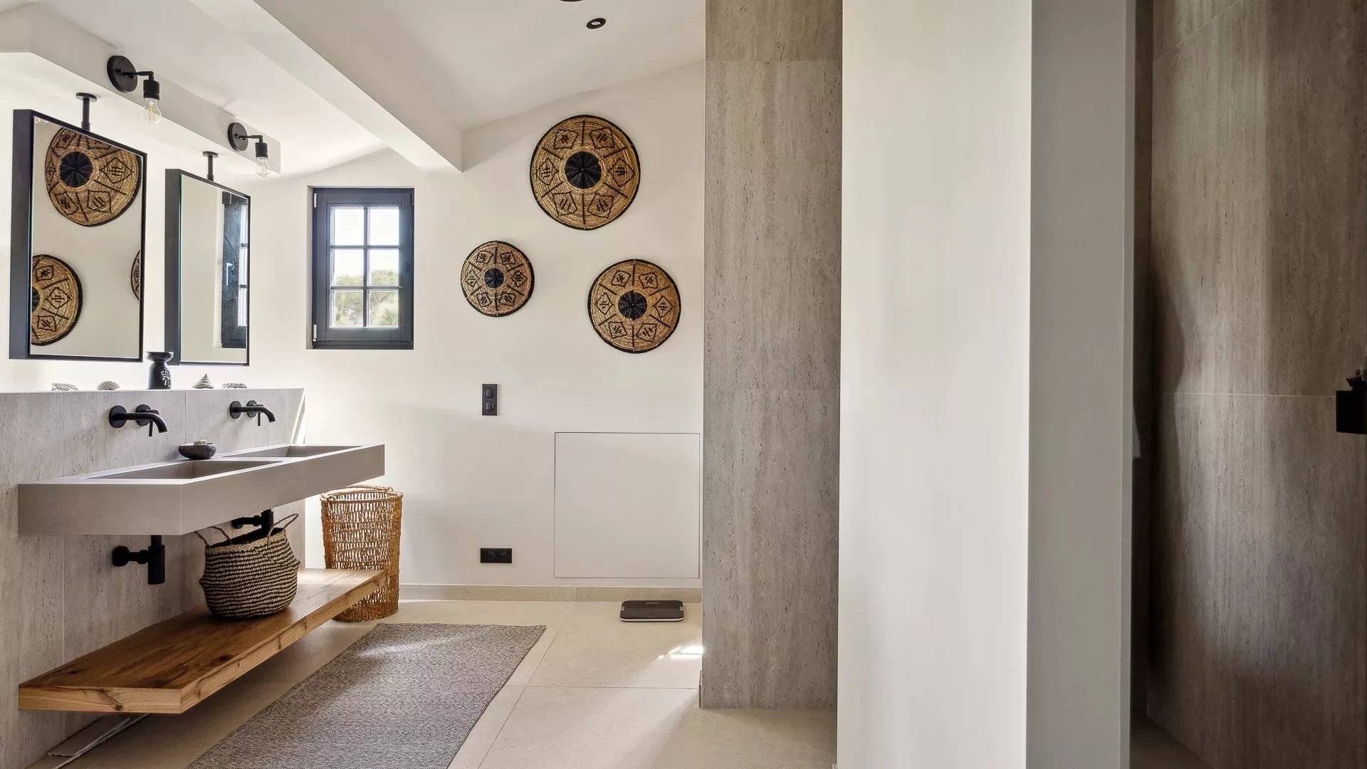 La propriété se compose d'une villa principale sur 3 niveaux, au rez-de-chaussée se trouvent de grandes pièces à vivre ouvrant sur les extérieurs et une cuisine ouverte, une chambre avec salle de douche et une chambre d'enfants avec salle de douche. Au 1ᵉʳ étage, une superbe suite de maître avec dressing et salle de bains et douche. Au rez-de-jardin, un salon TV, et coin buanderie.