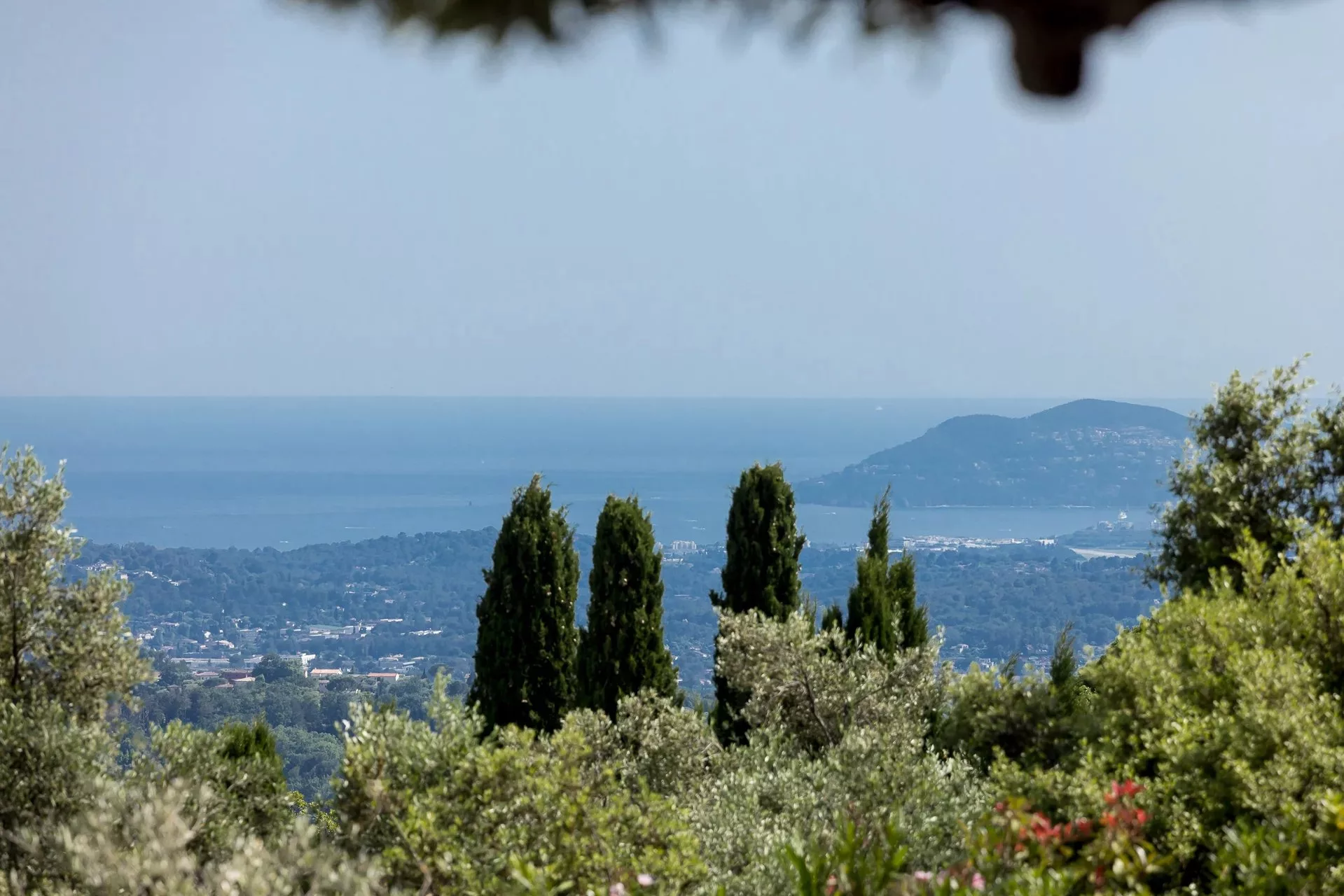Située à pied du village de Châteauneuf, dans un domaine fermé et sécurisé, la propriété bénéficie d'une vue panoramique sur la mer et les collines environnantes.