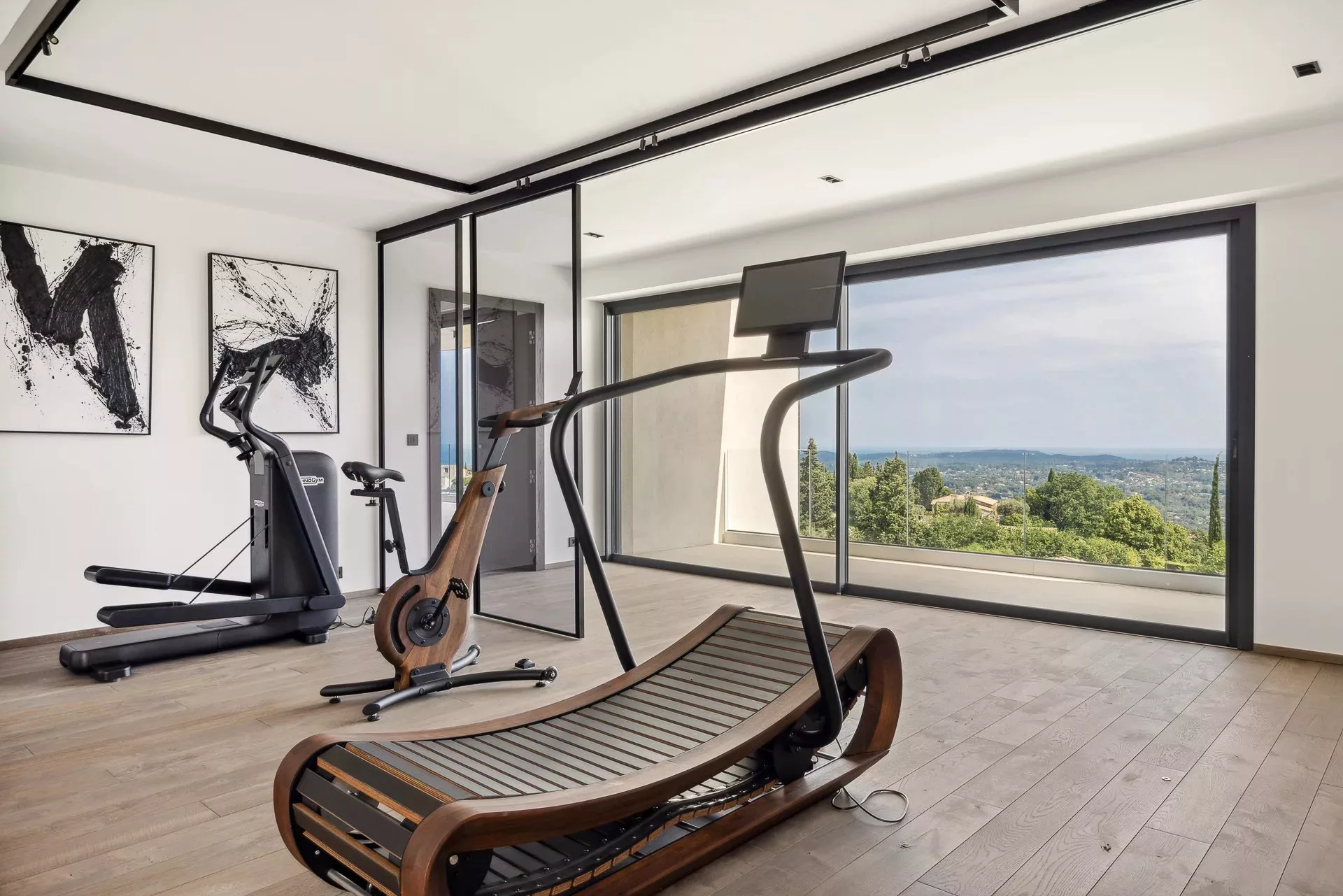 Salle de sport, grand salon TV avec salle de jeux, salle de cinéma, sauna, hammam, salle de massage, garage pour plusieurs voitures et places de parking avec borne de recharge, ascenseur, terrasse couverte avec cuisine d'été, terrain de pétanque et table de ping-pong.