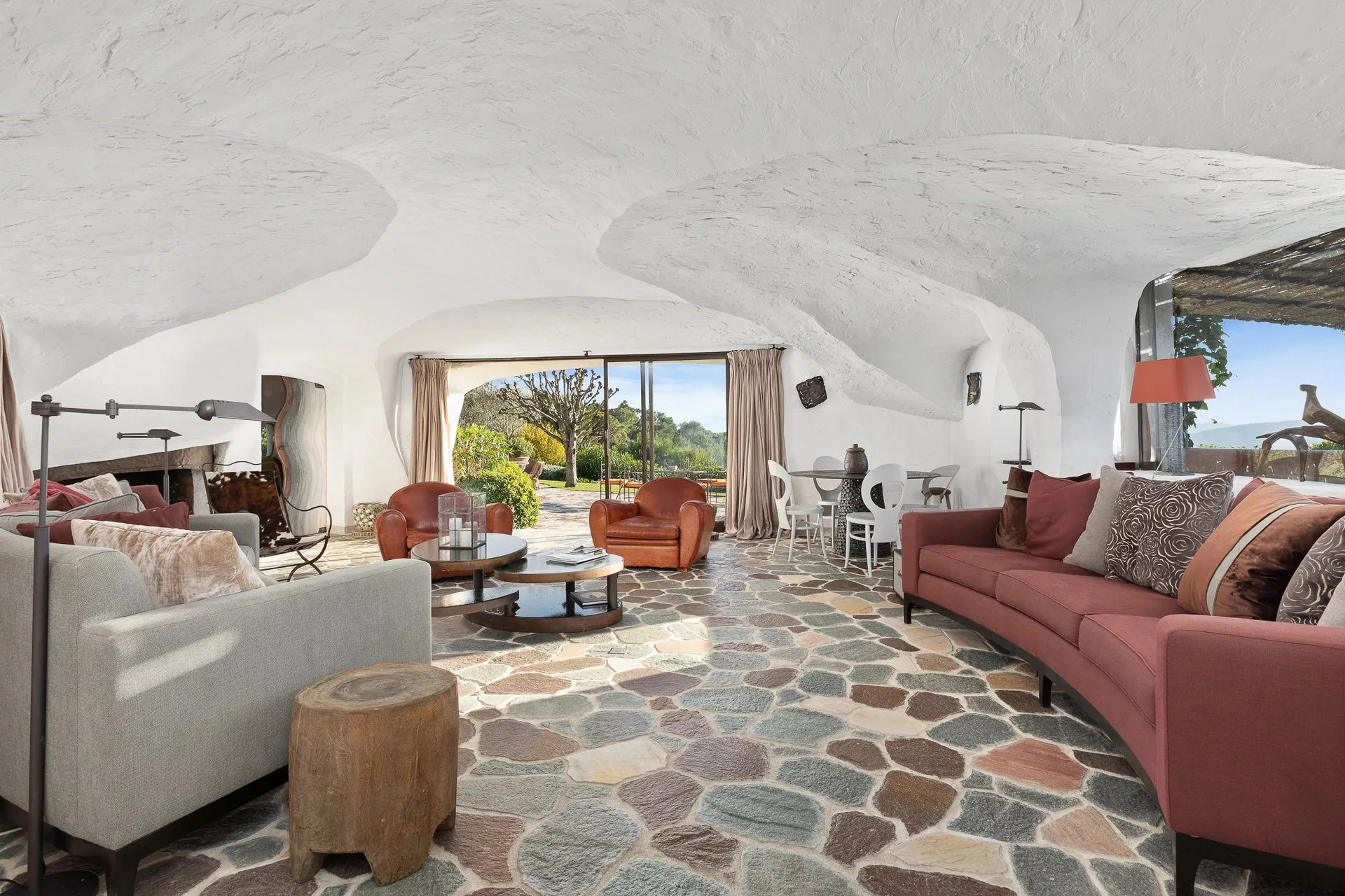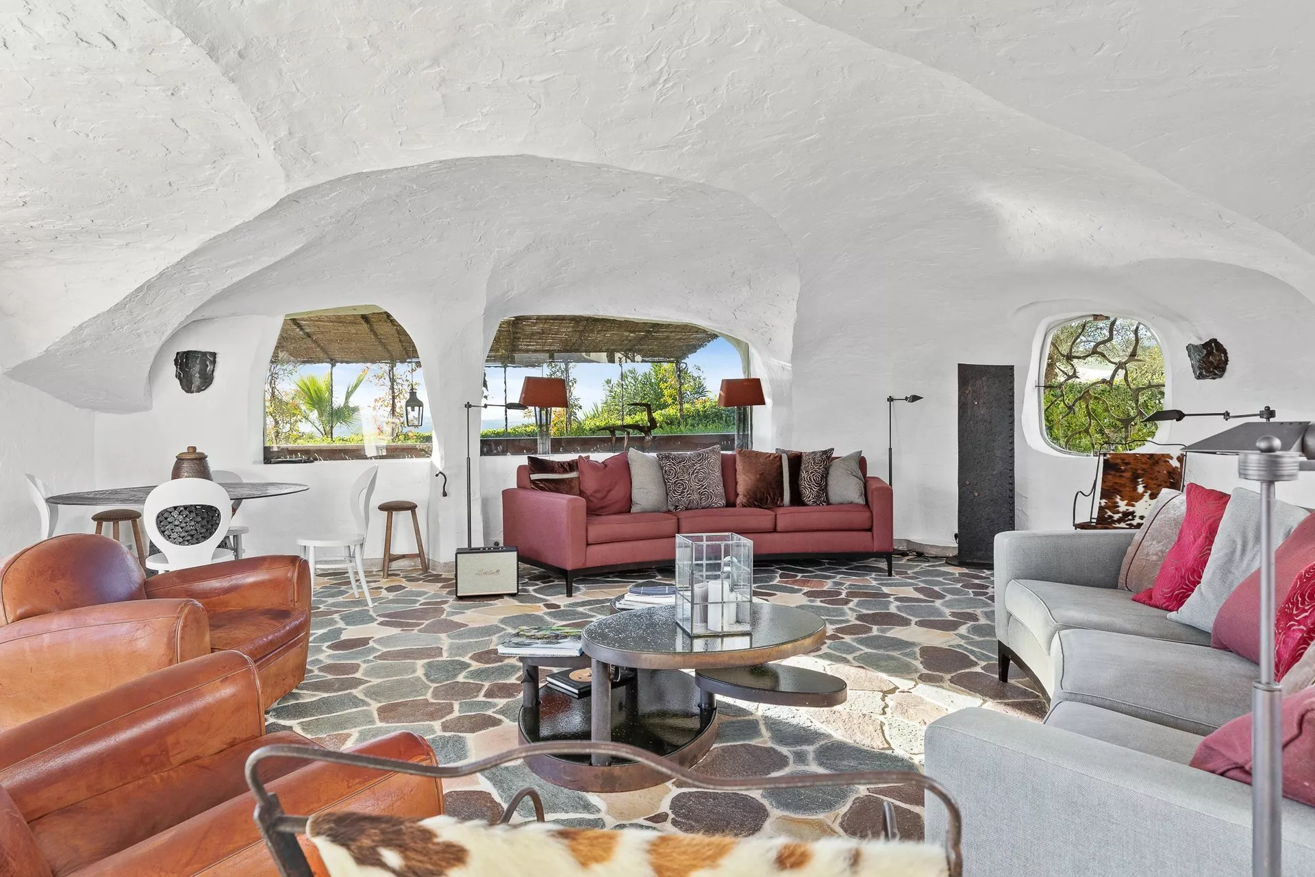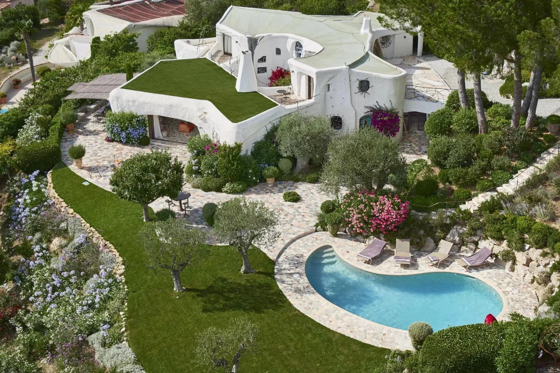 Authentique architecture sculptée, ou architecture de l’instinct, cette magnifique réalisation de 1962, classée Patrimoine XXe, est une des cinq « maisons paysage » de l’architecte Jacques Couëlle, exemple exceptionnel du mouvement de l’architecture-sculpture, plébiscitant les formes organiques et arrondies inspirées et intégrées parfaitement dans la nature, en opposition des « angles droits » du mouvement moderne de l’époque.