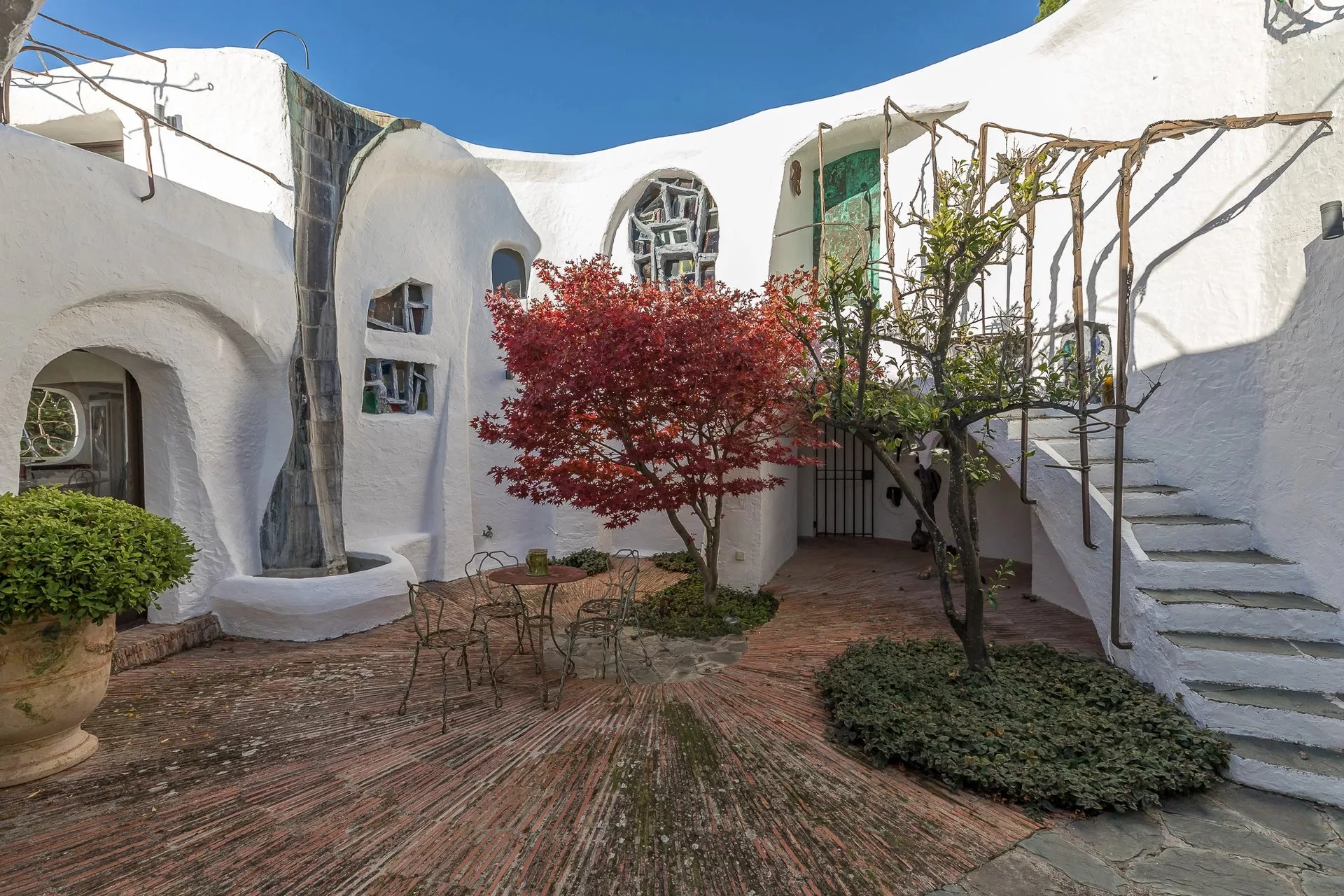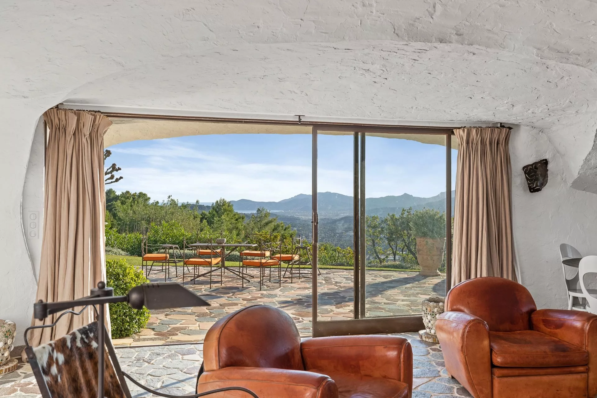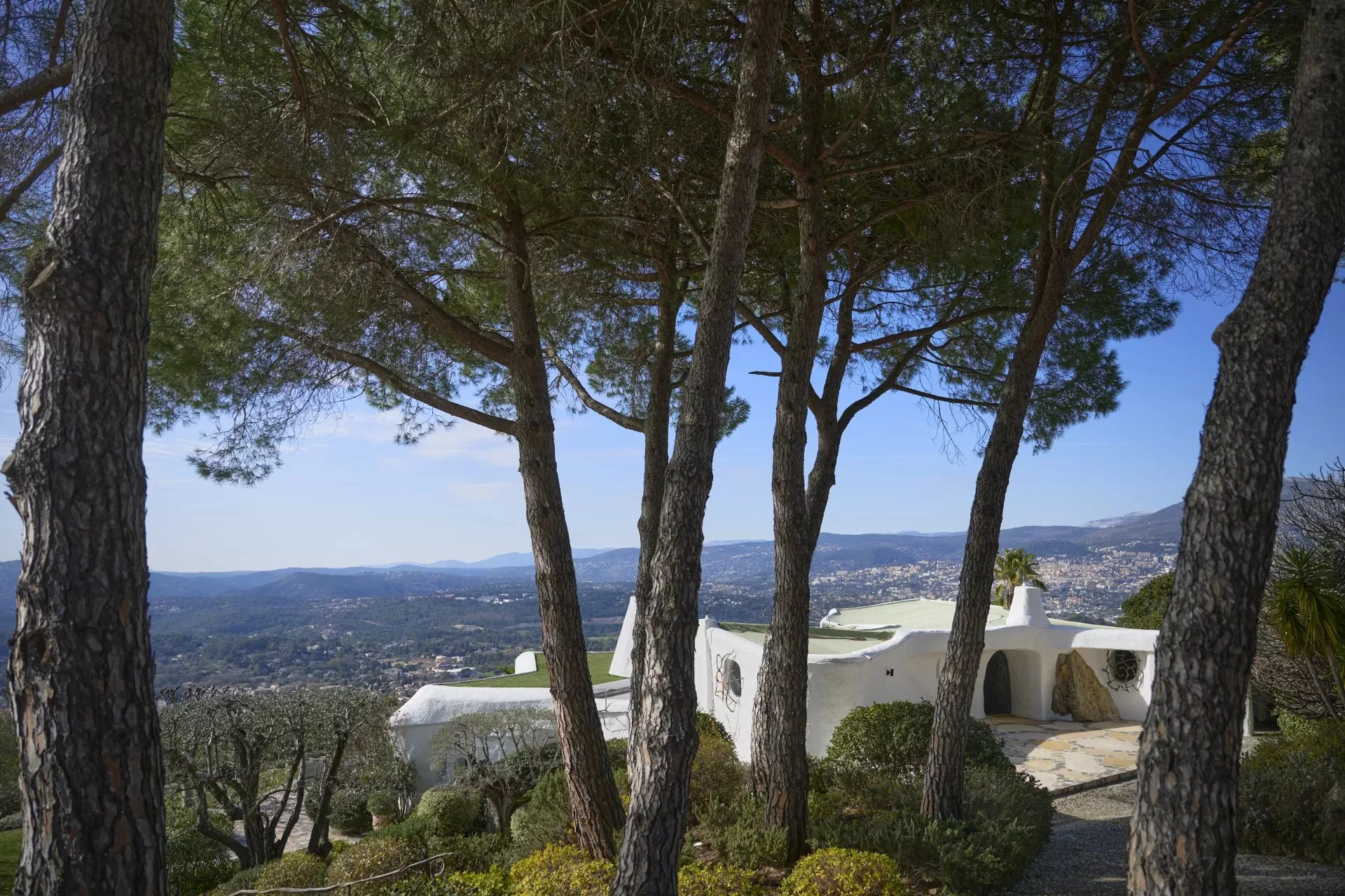 Les espaces, en grande partie de plain-pied, se développent telle une étoile autour du magnifique patio : le lumineux séjour en communication avec la nature luxuriante par des grandes ouvertures est complété par un salon lecture intimiste et coloré. Du côté opposé, la cuisine ainsi que trois chambres avec leurs salles de bains d’une originalité unique et une buanderie complètent le rez-de-chaussée. On accède à l’étage par deux escaliers internes ornés des carreaux de terre cuite colorés et illuminés par les pavés en verre aux couleurs primaires si caractéristiques des œuvres de l’architecte. La vaste entrée à l’étage donne accès de façon symétrique aux deux chambres, chacune avec salle de bains et accès au toit terrasse avec vue spectaculaire sur le paysage et les autres maisons paysagères environnantes. Les espaces extérieurs sont caractérisés par la vue sur la nature et les formes variées de la maison, par diverses terrasses et dégagements offrant des espaces de vie variés se terminant à l’est sur la piscine sans vis-à-vis et le grand parc contemplant la vue lointaine du pays cannois et la mer. Un grand abri voiture et divers parkings complètent cette œuvre hors normes. Chambre indépendante avec sa salle de douches. A 5 minutes des commerces, 10 minutes de Cannes, 35 minutes de l’aéroport international de Nice.