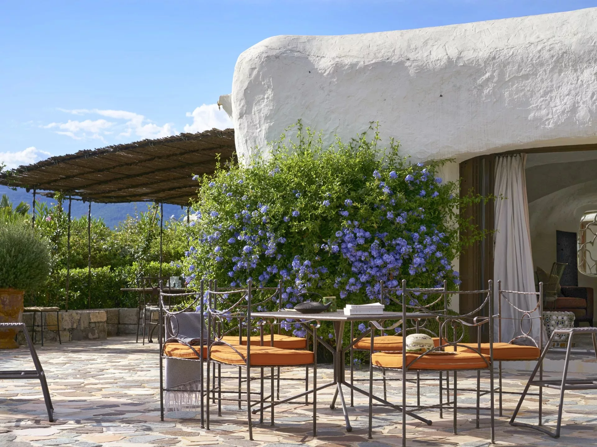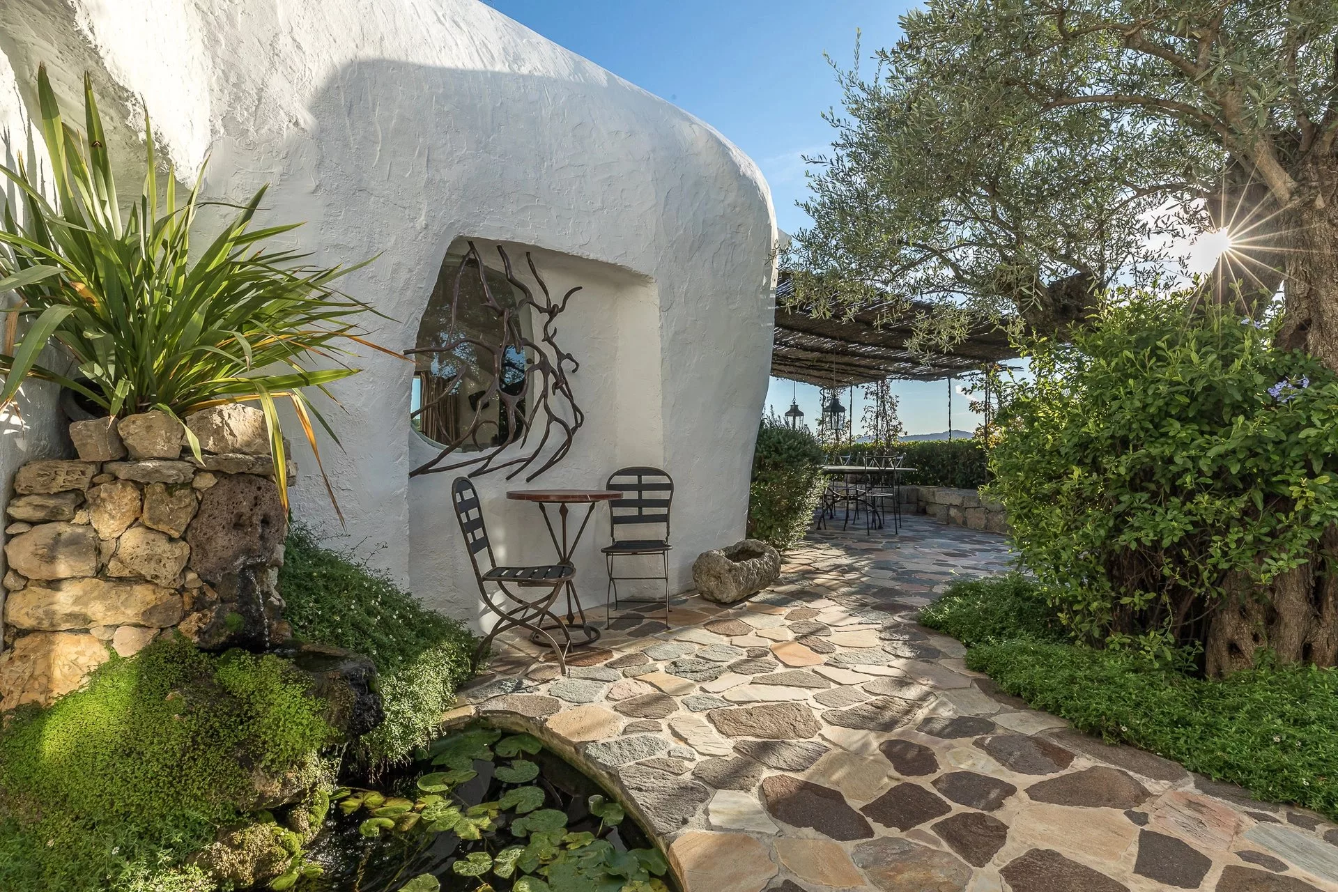 Développant une surface habitable d'environ 280 m² prolongée d'environ 250 m² de terrasses sur un terrain paysagé d'environ 4900 m² la base neutre du bâti en béton banché et projeté a été un « terrain de jeu » idéal pour laisser champ libre à la création des artistes artisans pour créer une composition aussi variée qu’incroyable de formes et de matériaux premiers. La pierre brute aux couleurs chaudes et variées ainsi que le marbre pour les sols, la céramique, le fer et le verre pour les murs, le bois et le verre pour les portes, le cuivre pour habiller les détails de façade.