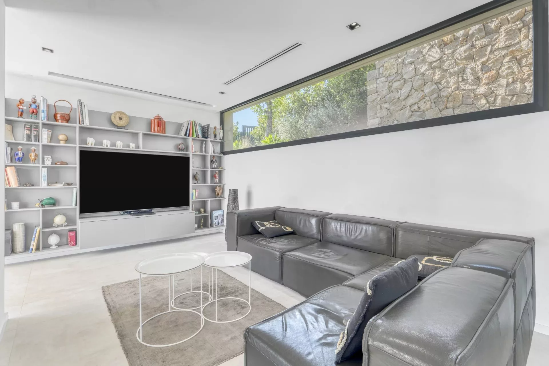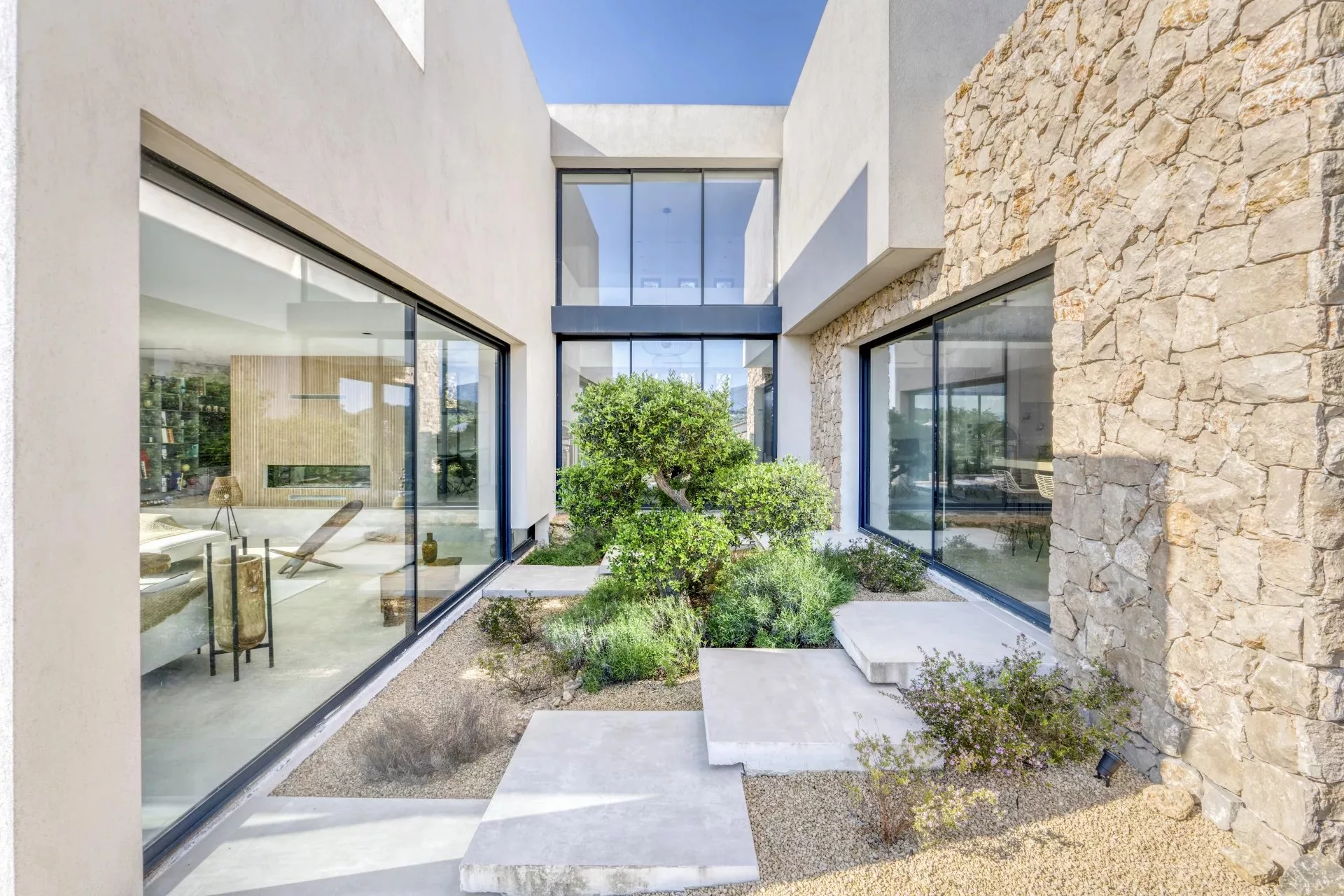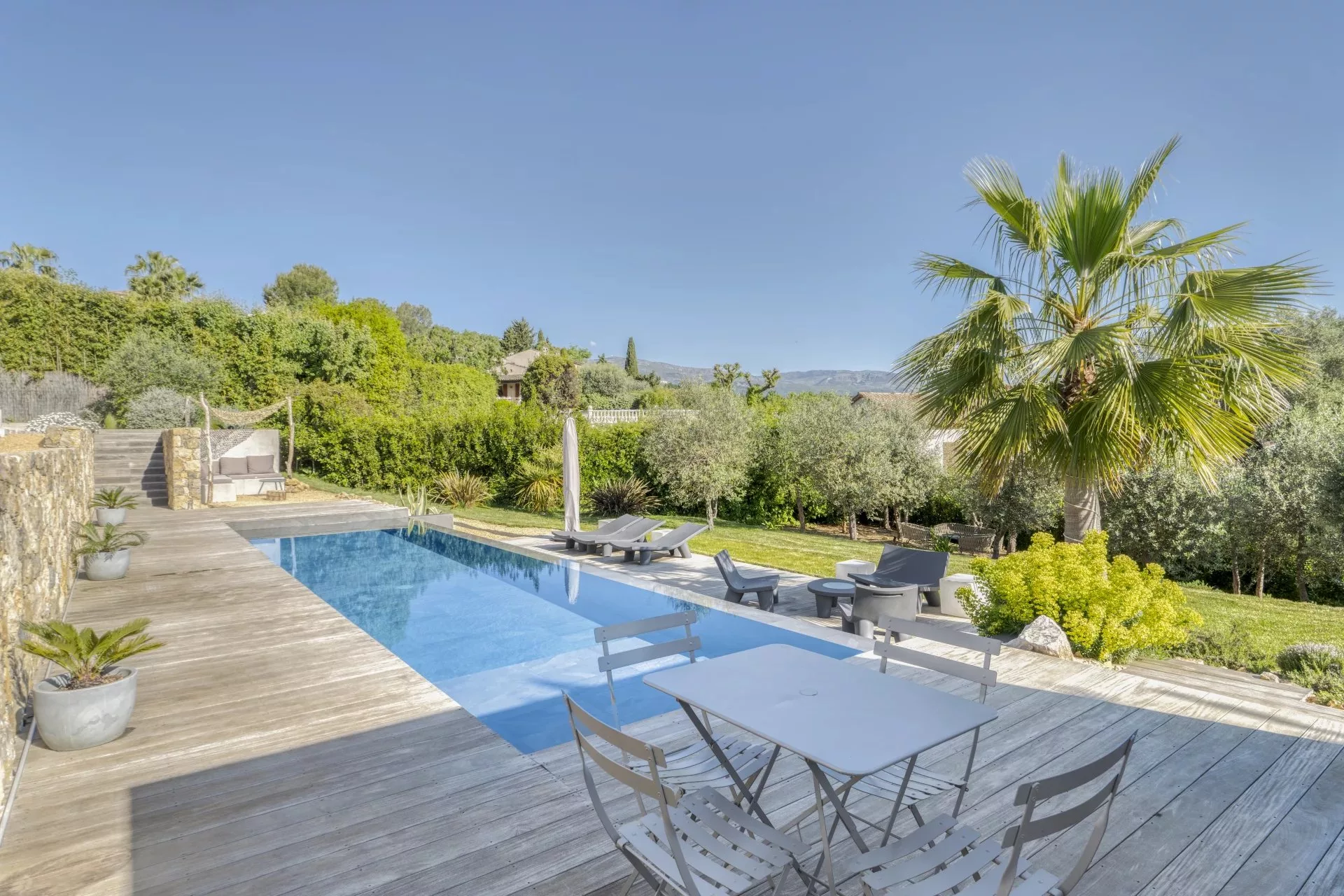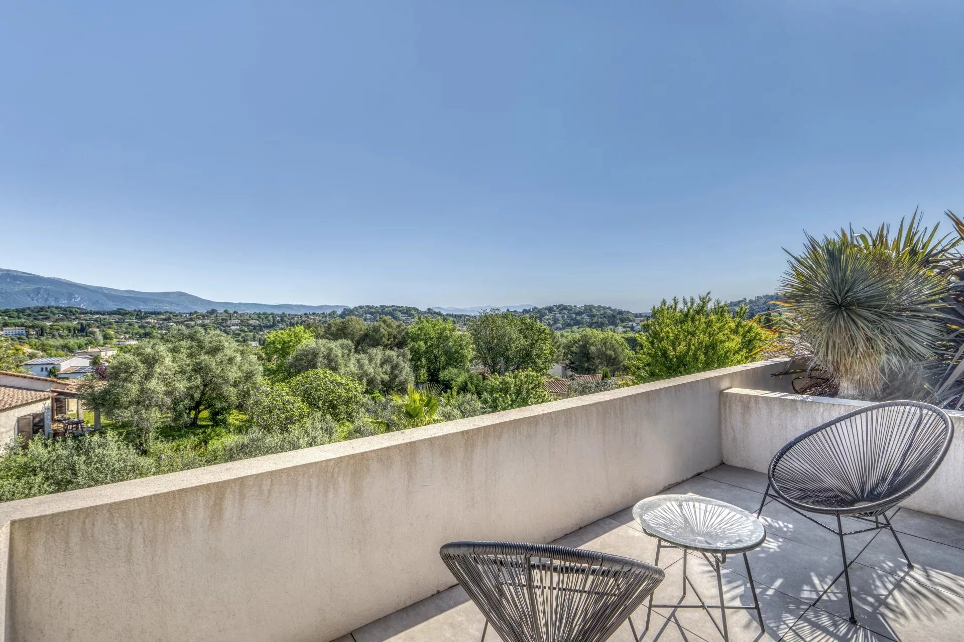 Située à quelques minutes à pied du village de Valbonne, cette villa contemporaine offre environ 300 m² habitables sur un terrain de 1 545 m². Elle bénéficie d'une vue dégagée sur les collines environnantes.