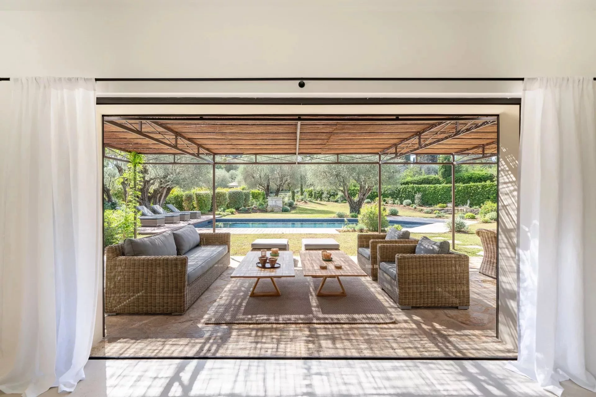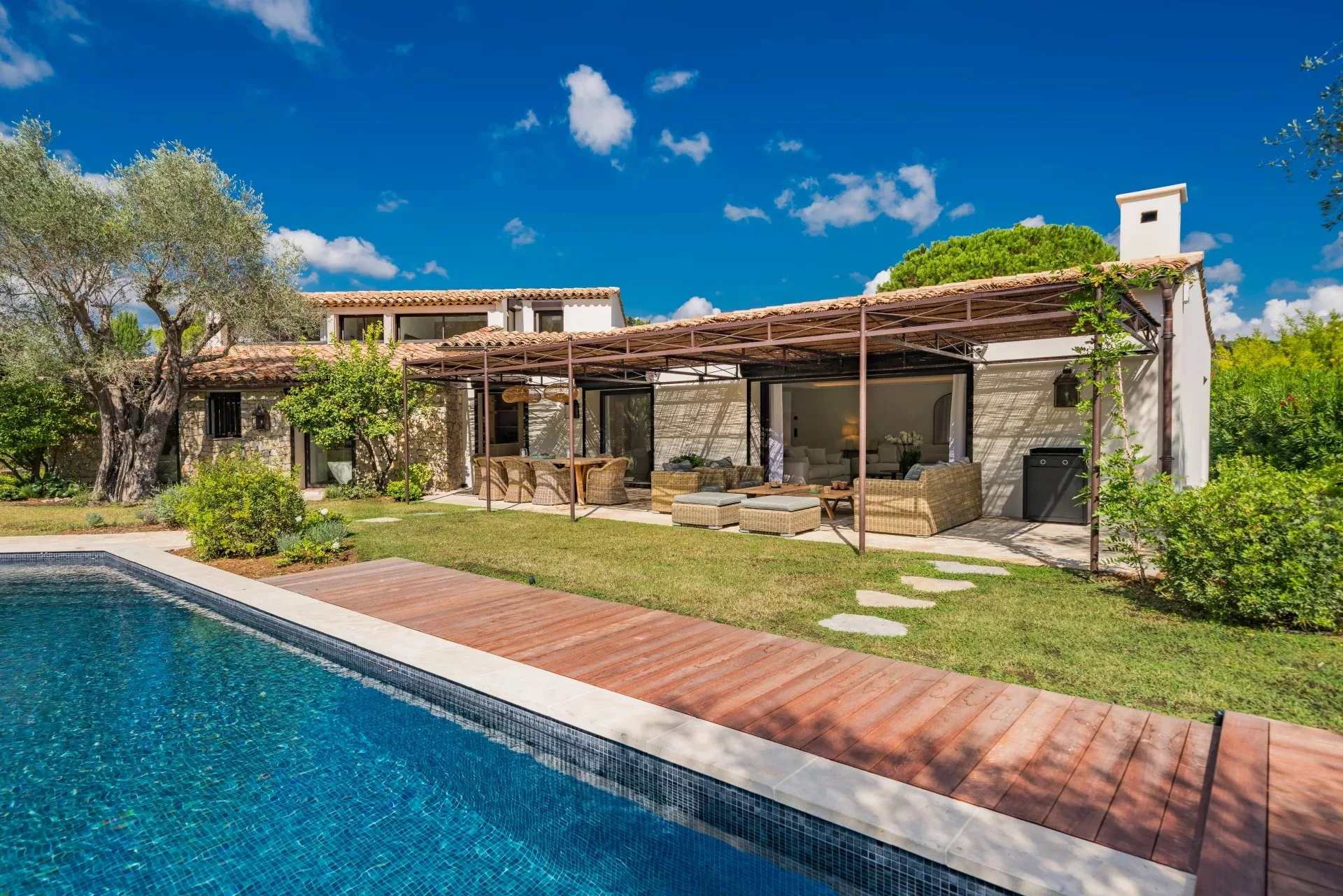 Située au sein d’un petit domaine privé et sécurisé à seulement 15 minutes de Cannes et à proximité du vieux village de Mougins en voiture, cette superbe villa vous séduira par son charme et son raffinement.