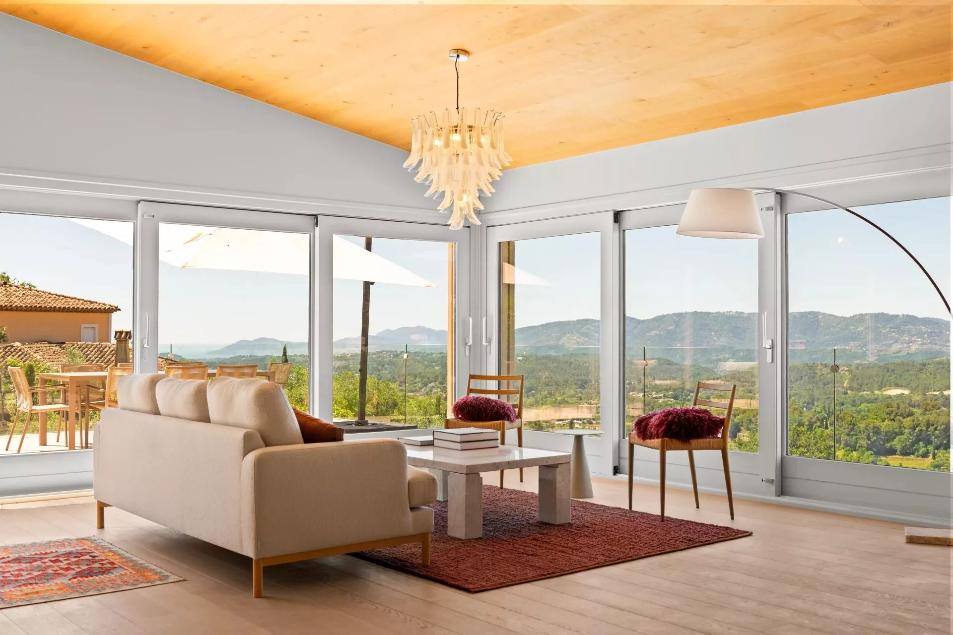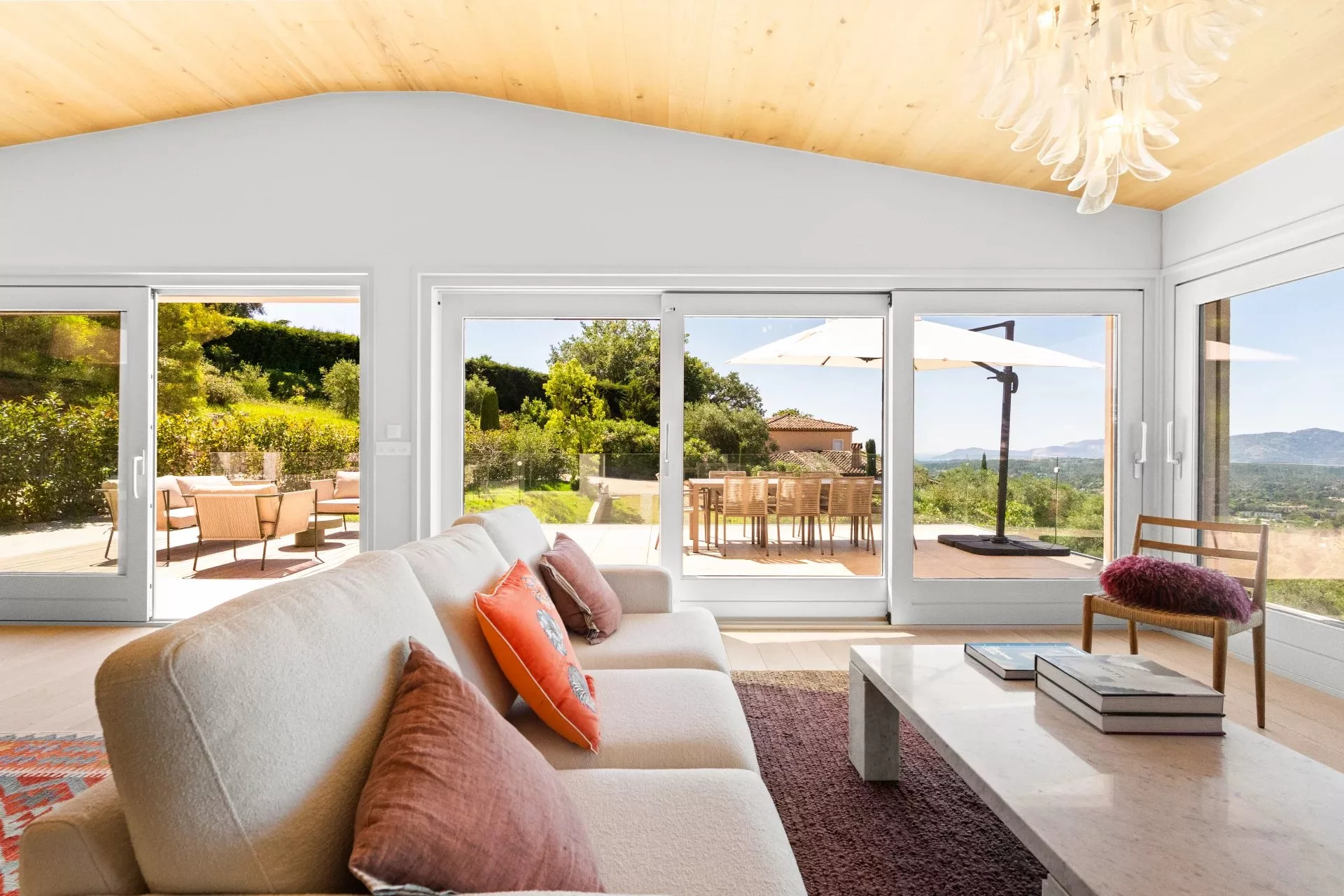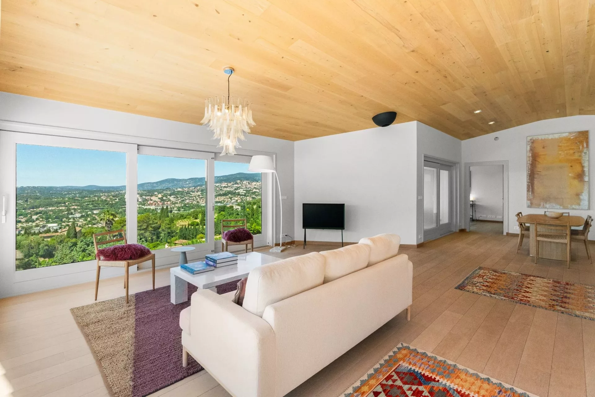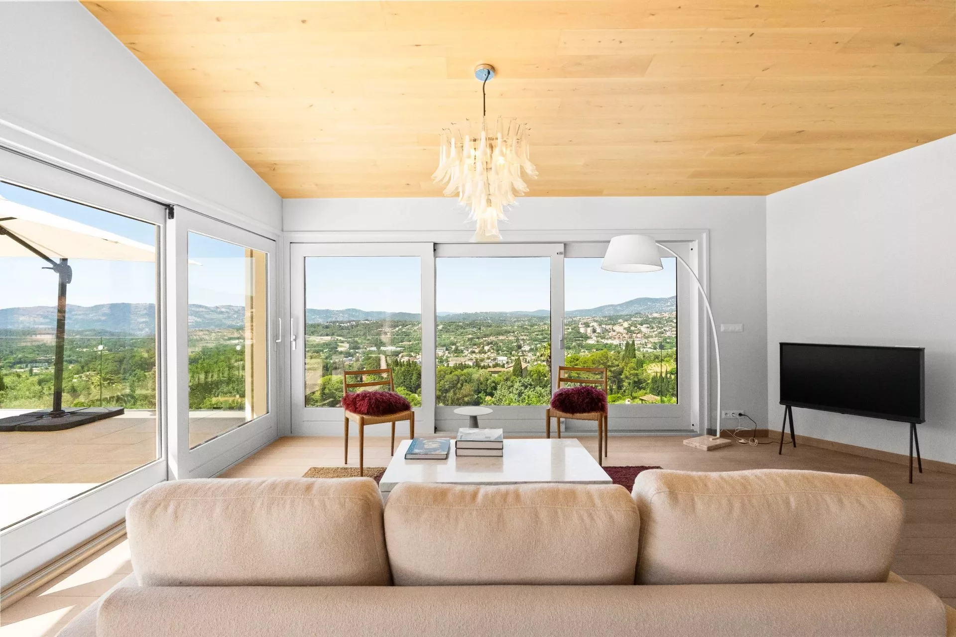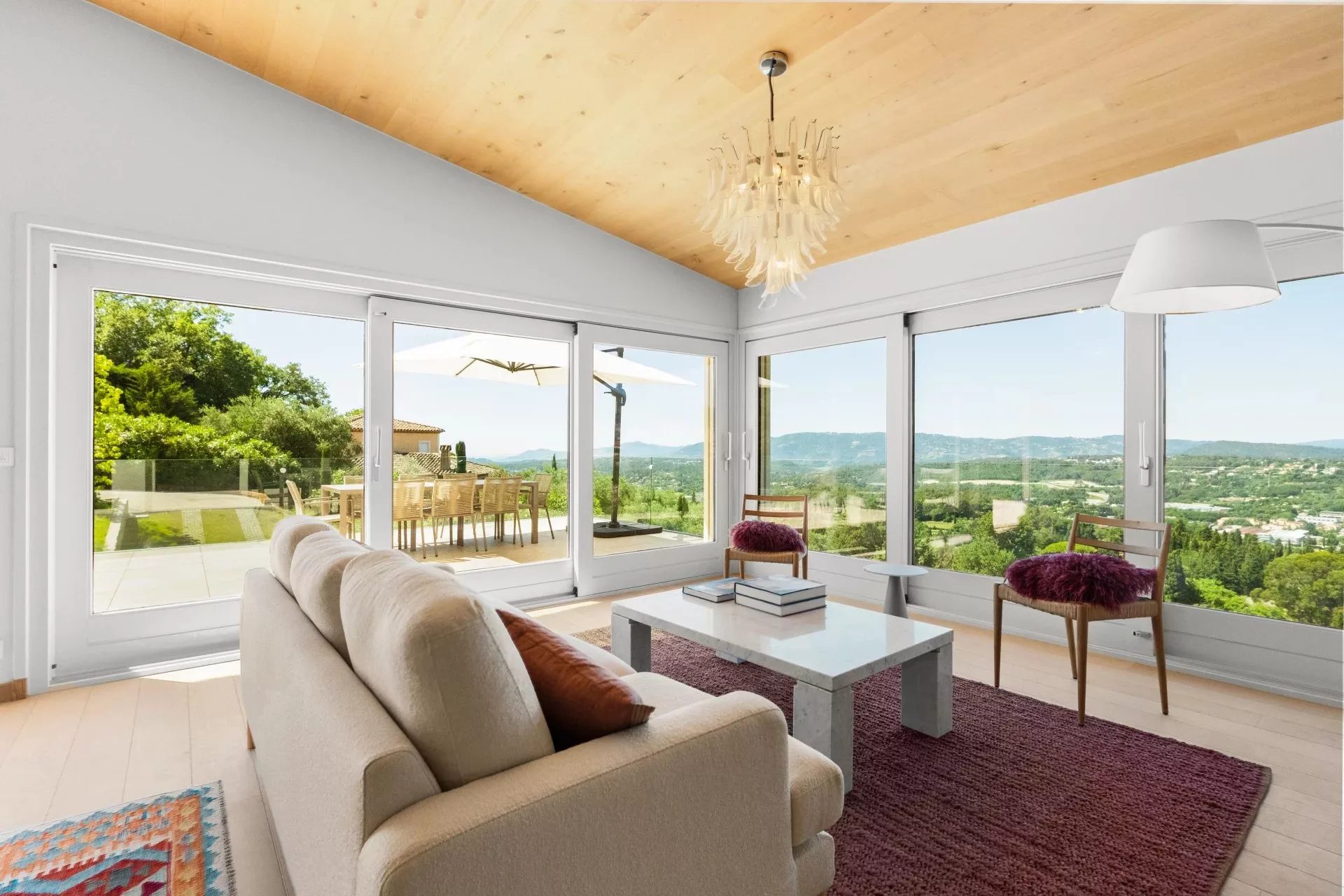 Villa contemporaine récemment rénovée d’environ 250 m², implantée sur un terrain d’environ 2400 m², offrant une vue panoramique sur les collines environnantes.