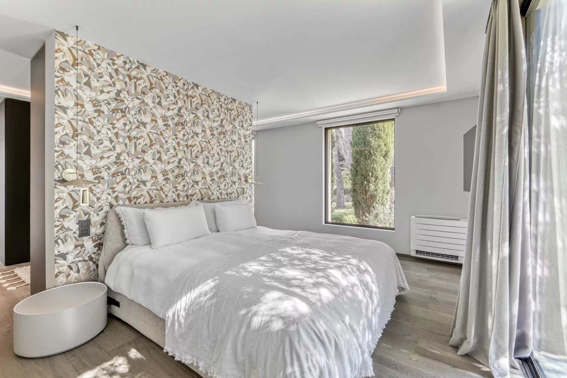La villa dispose de cinq chambres en suite, permettant d’accueillir famille et invités dans un confort optimal. Un studio de service complète l’ensemble, comprenant une kitchenette et une salle de douche.
