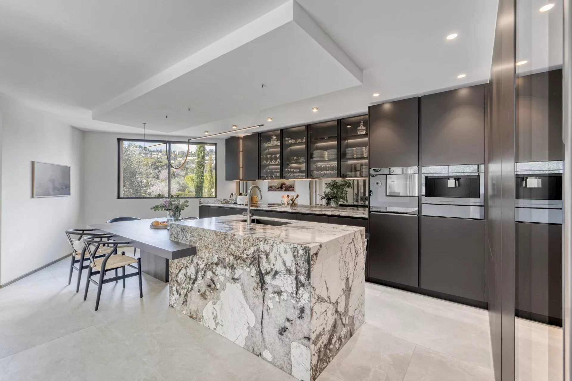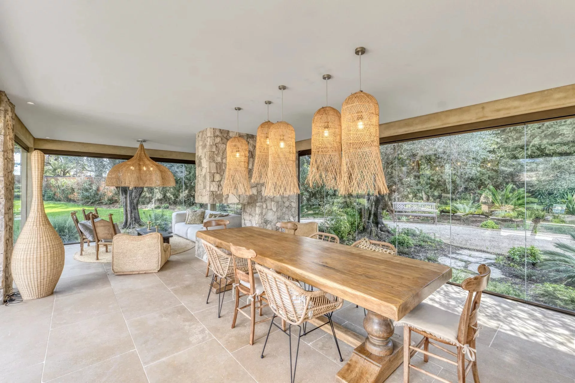 Située à Mougins, dans un environnement verdoyant et résidentiel, à proximité de Cannes, cette villa entièrement rénovée offre un cadre idéal pour des séjours au calme.