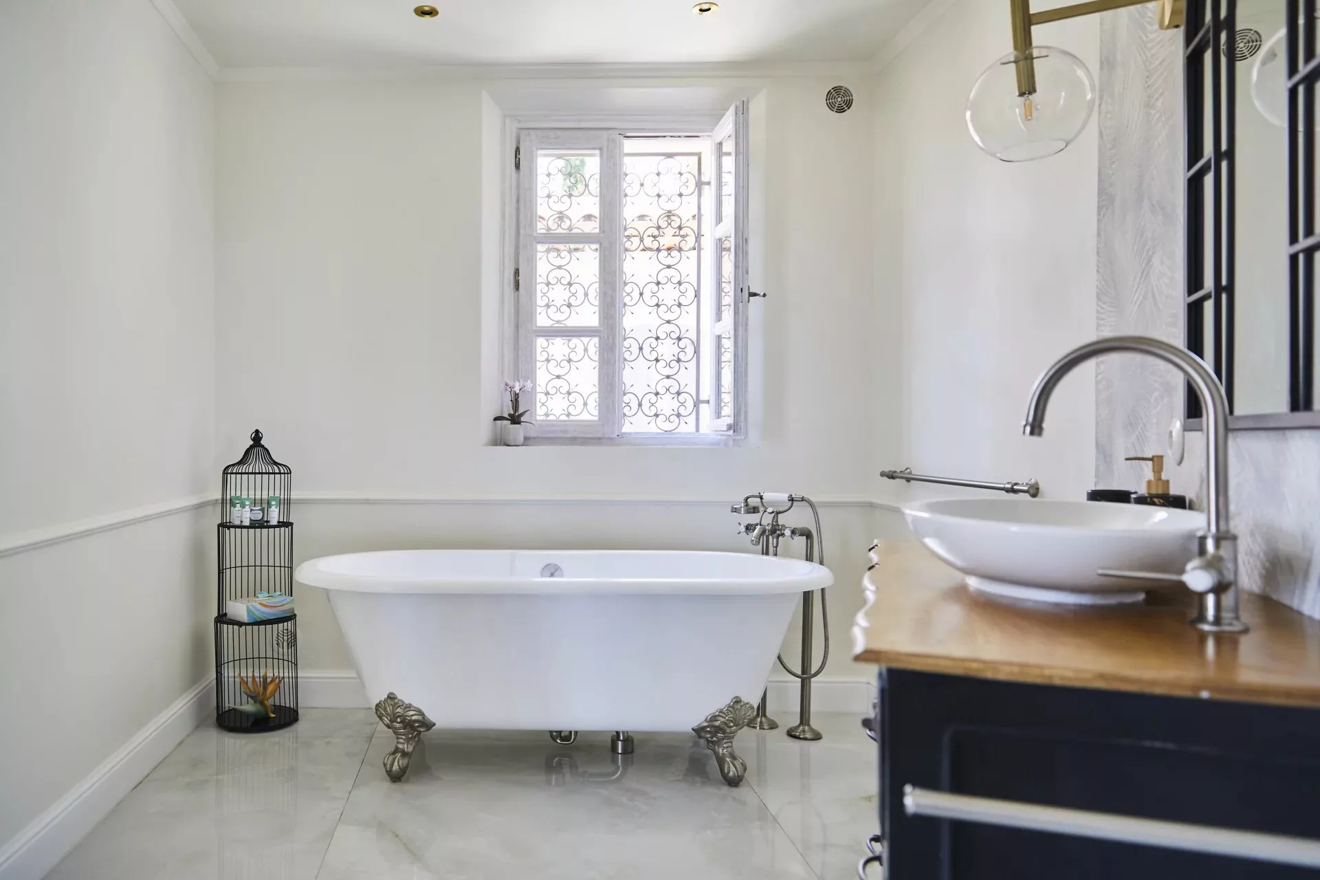 Au rez-de-jardin, un espace spa avec jacuzzi et sauna, salle de douche et wc.