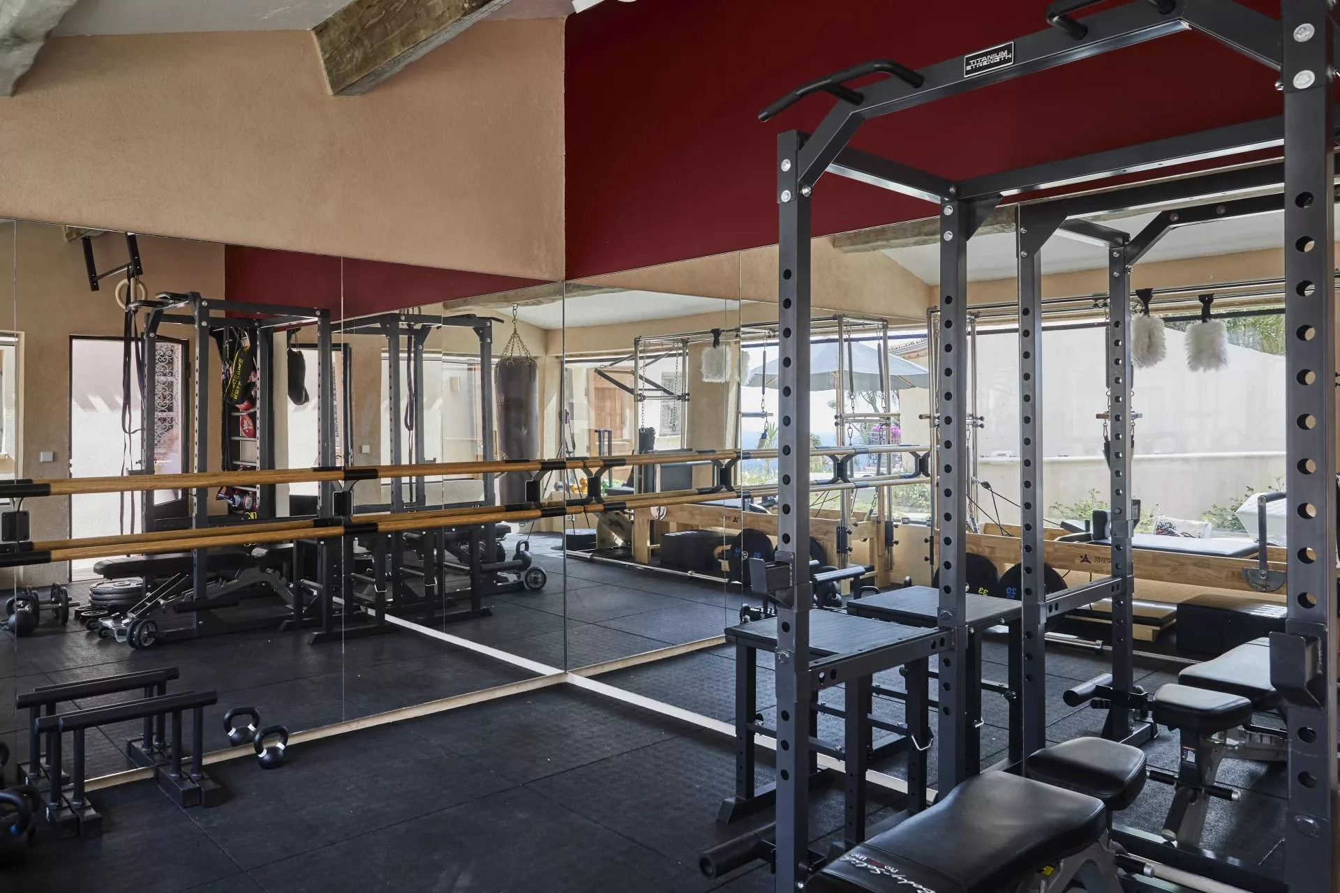 Une première annexe indépendante se compose de deux chambres, chacune avec salle de douche et wc, et une seconde annexe abrite une salle de sport.