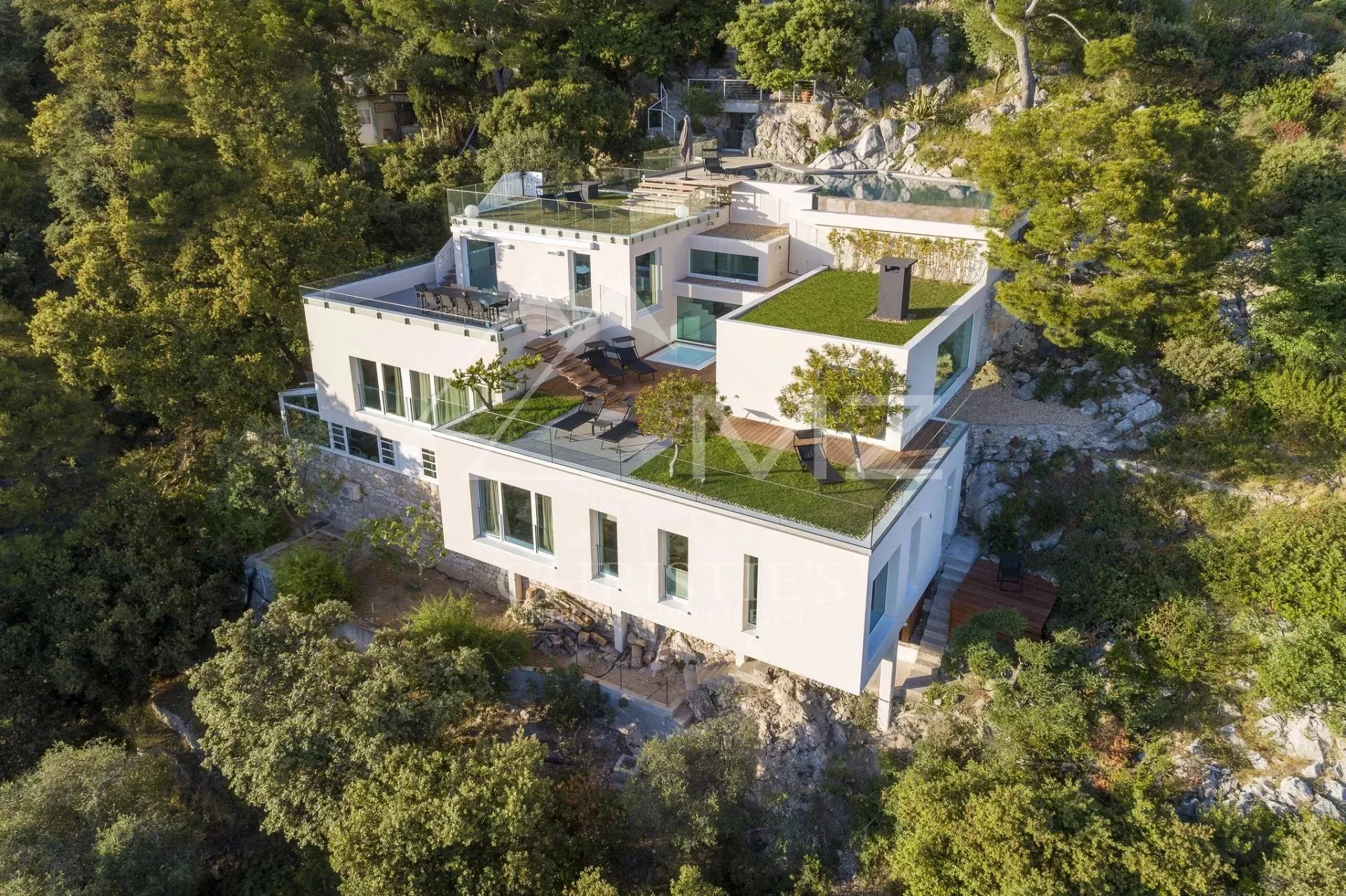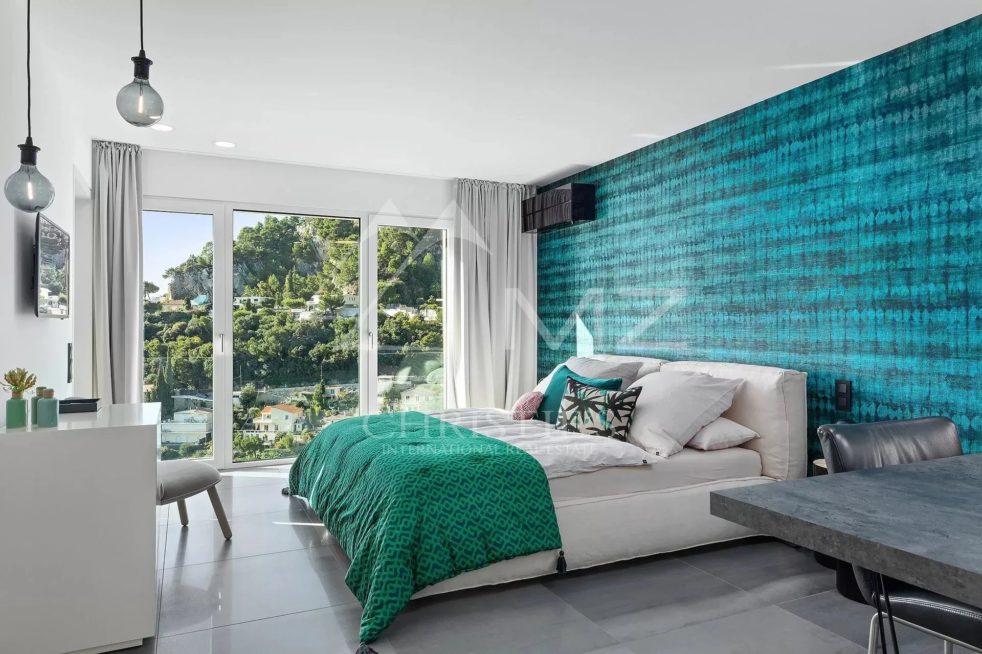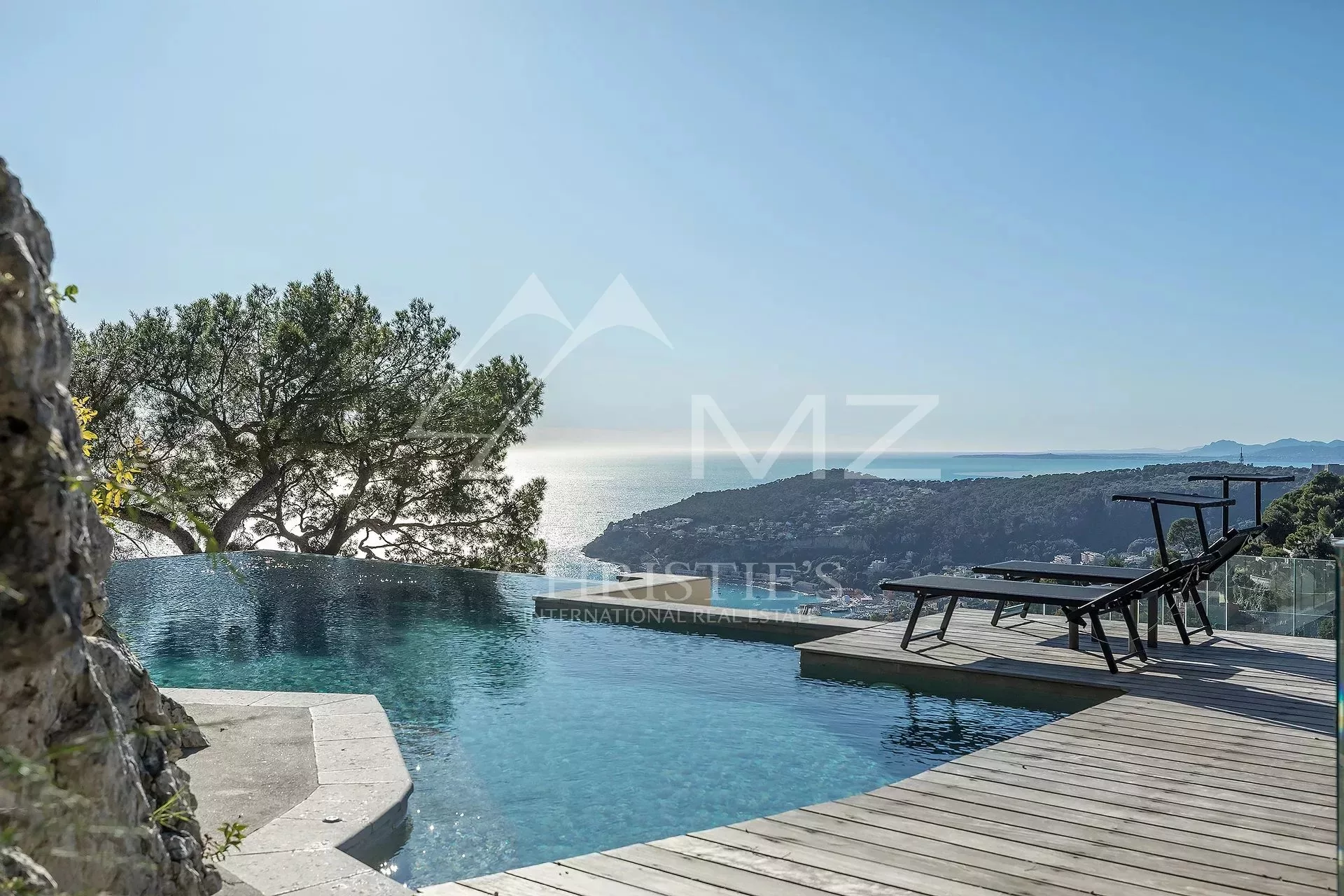 Exceptionnelle villa d'architecte offrant une époustouflante vue sur la mer et le Cap Ferrat. En flanc de falaise, accessible par un ascenseur, sans vis-à-vis, elle bénéficie d'un grand séjour ouvrant sur une terrasse avec le jacuzzi, cuisine américaine avec salle à manger ouvrant sur terrasse, grand bureau ou possibilité studio indépendant, 5 chambres dont une de Maître avec salle de bains en suite. Piscine à débordement avec large plage en teck surplombant le Cap Ferrat. Plusieurs parkings.