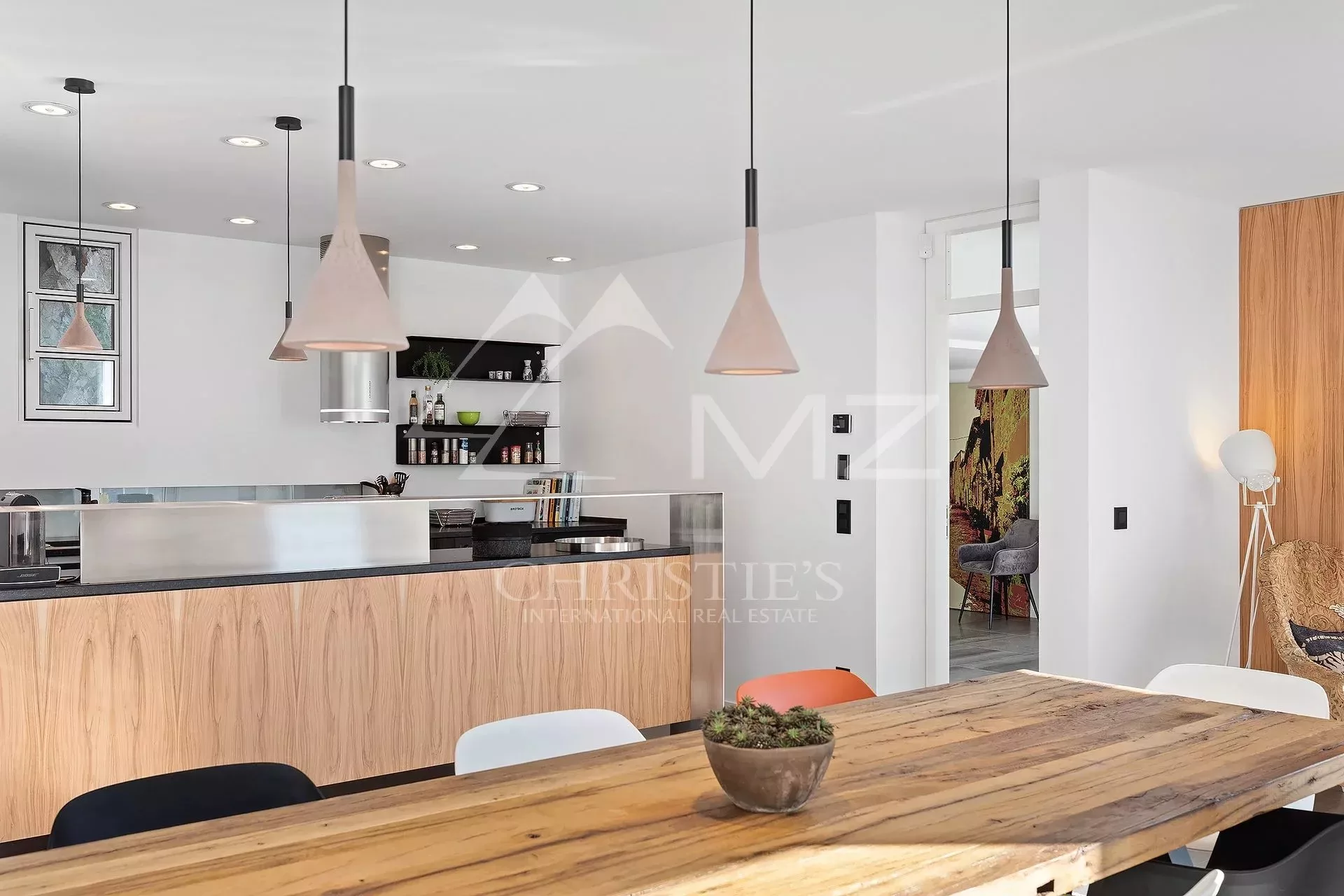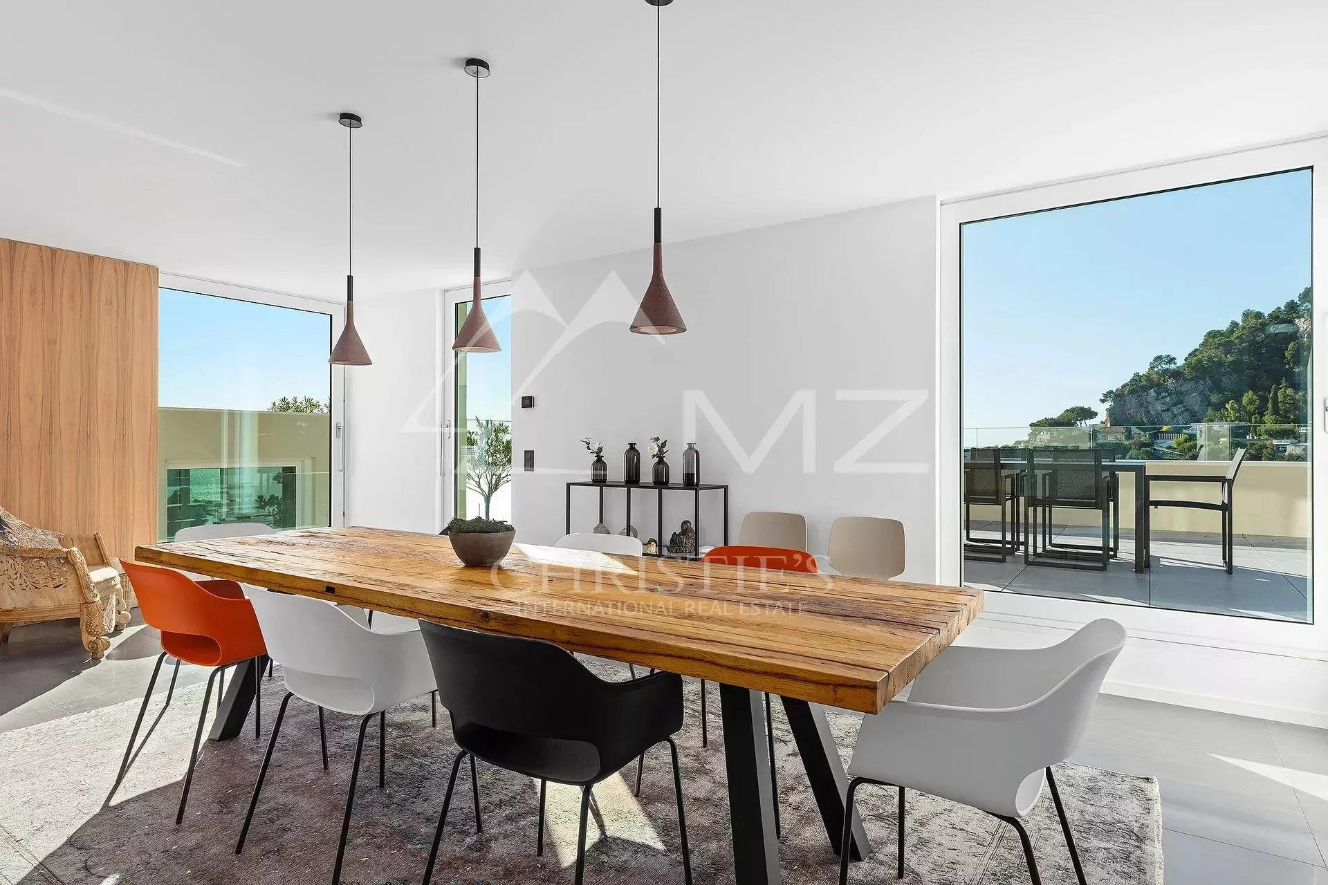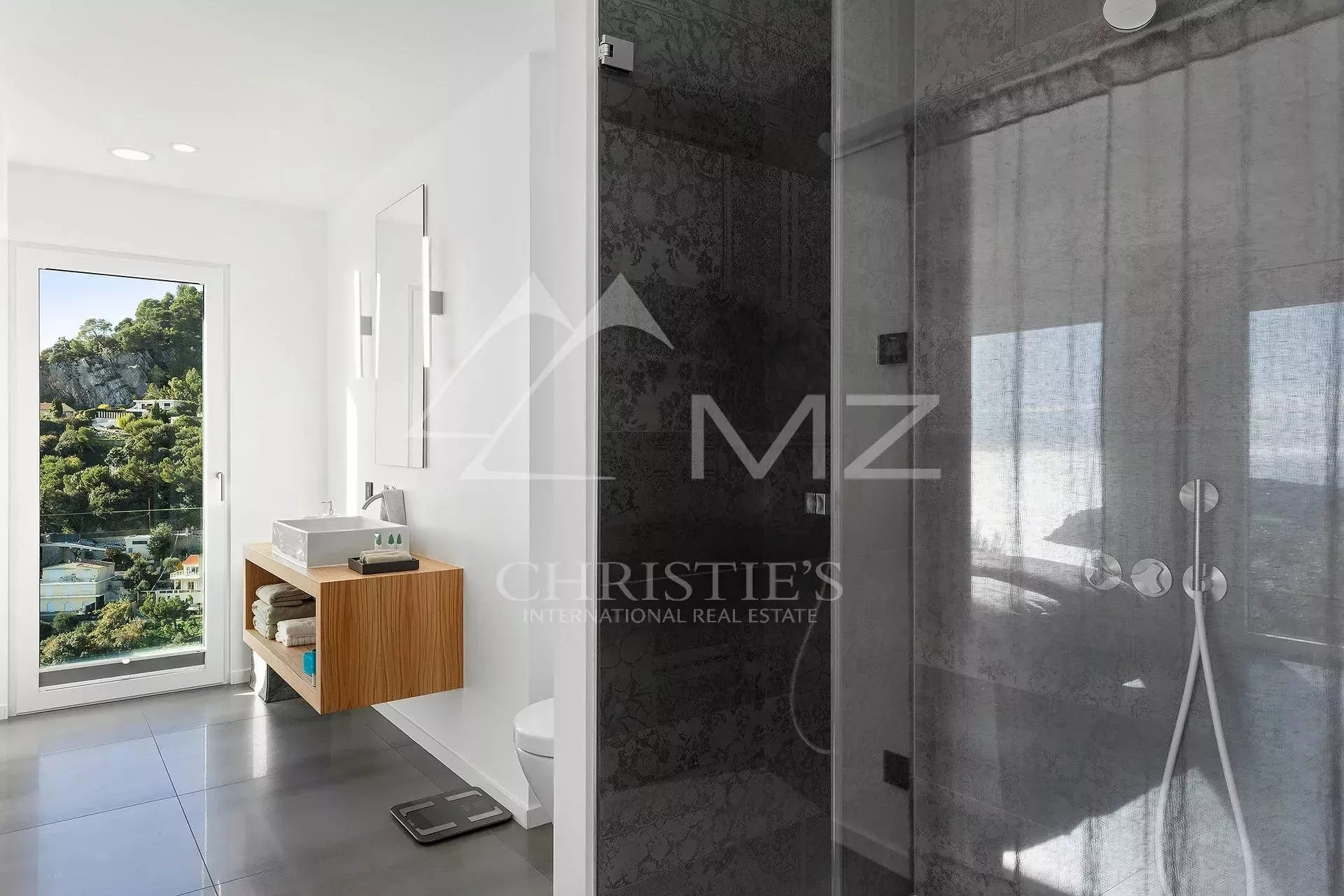 Exceptionnelle villa d'architecte offrant une époustouflante vue sur la mer et le Cap Ferrat. En flanc de falaise, accessible par un ascenseur, sans vis-à-vis, elle bénéficie d'un grand séjour ouvrant sur une terrasse avec le jacuzzi, cuisine américaine avec salle à manger ouvrant sur terrasse, grand bureau ou possibilité studio indépendant, 5 chambres dont une de Maître avec salle de bains en suite. Piscine à débordement avec large plage en teck surplombant le Cap Ferrat. Plusieurs parkings.