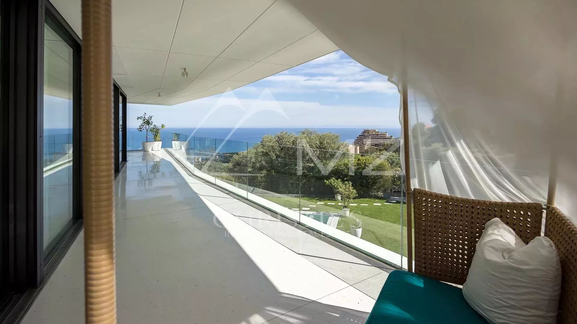 Perchée sur les hauteurs de Beausoleil, cette villa d’architecte minimaliste offre une vue panoramique spectaculaire sur la Méditerranée. Son design épuré et ses volumes ouverts créent une atmosphère où raffinement et quiétude se rencontrent.