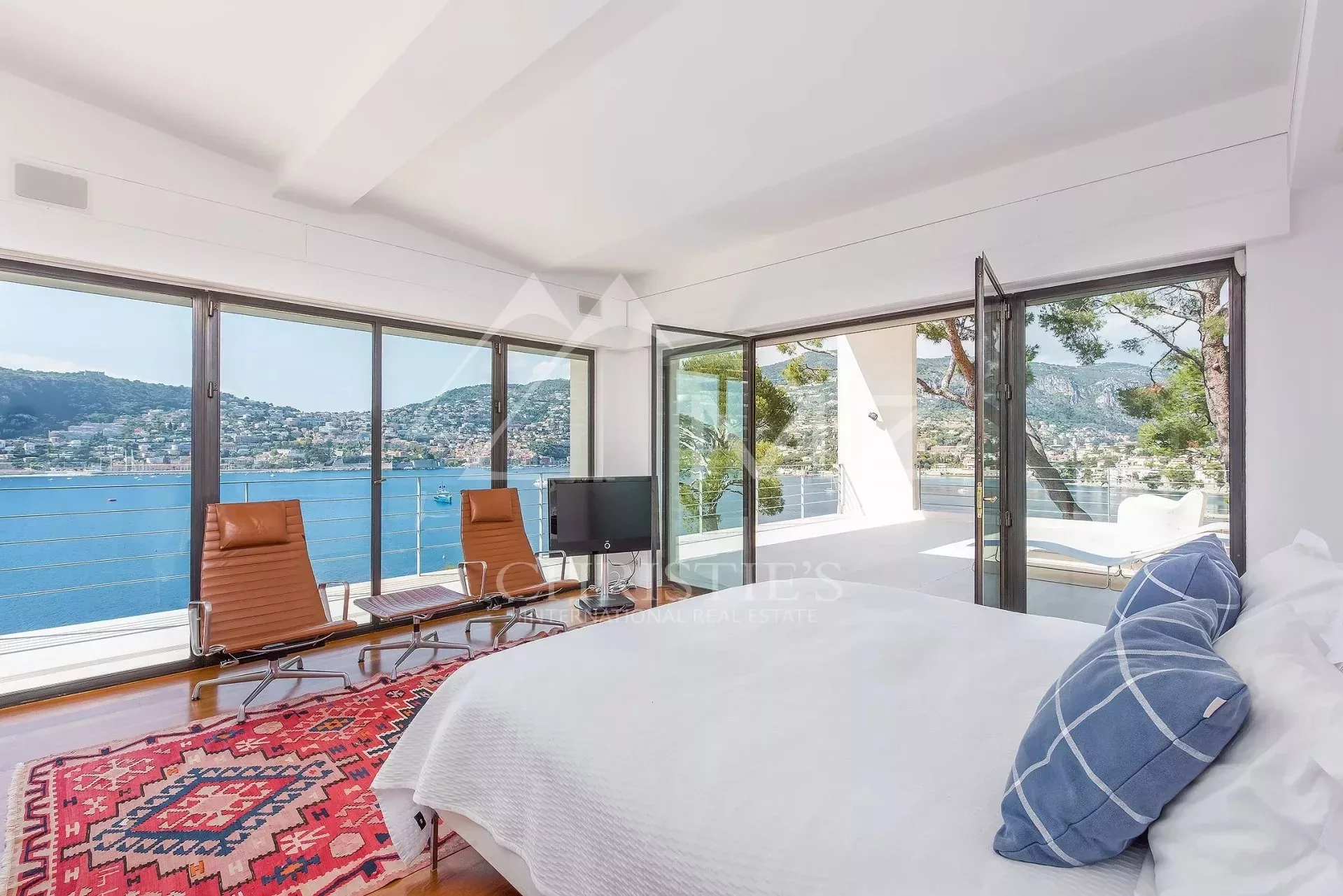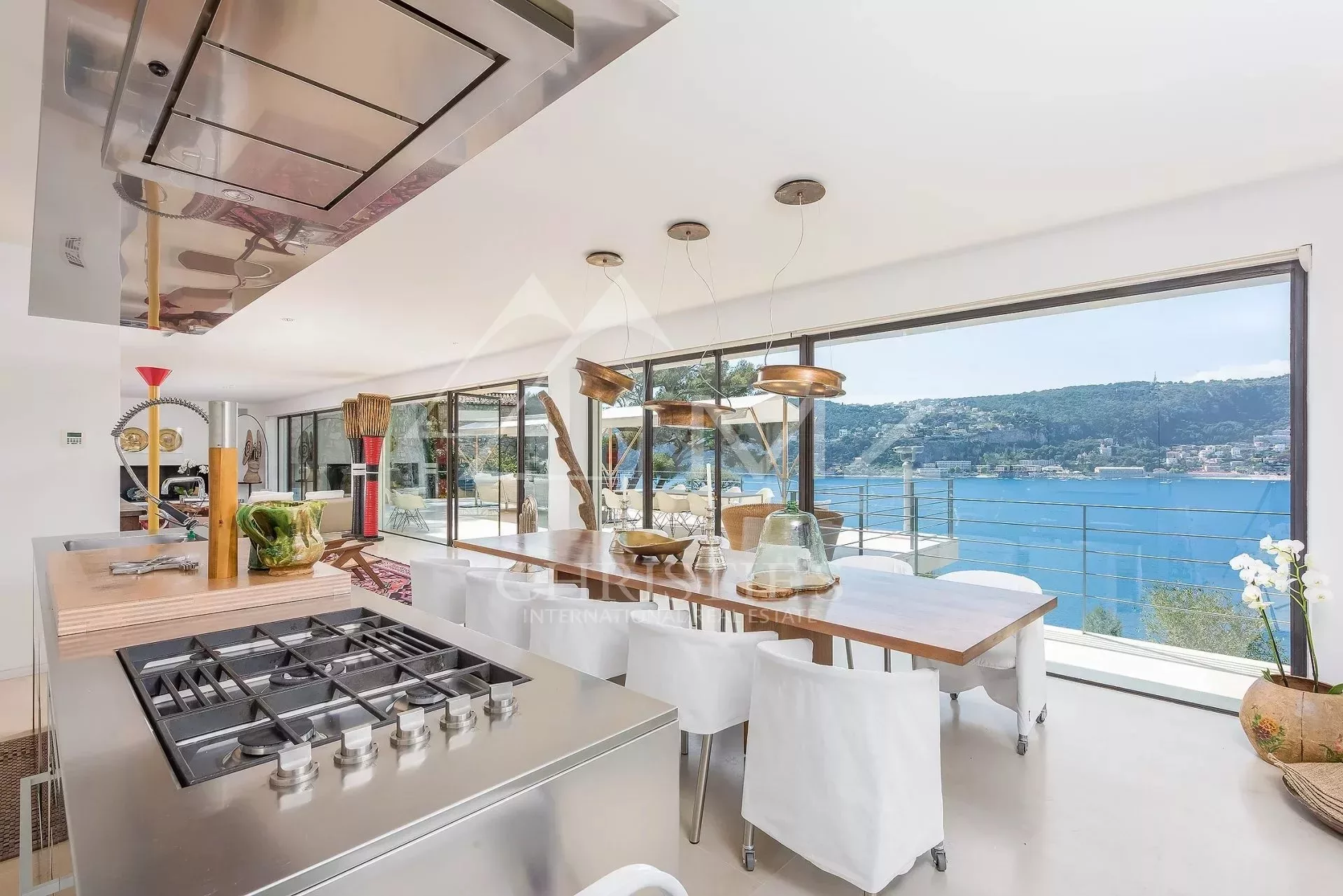 Située le coté Ouest du Cap Ferrat, cette superbe villa contemporaine offrant une vue mer époustouflante avec des couchers de soleil à couper le souffle sur la rade de Villefranche. A seulement quelques pas des plages, cette propriété se compose d'un grand salon/salle à manger, d'une cuisine équipée ouverte, l'ensemble donnant sur une terrasse spectaculaire avec salle à manger extérieure pour 12 personnes. 4 chambres avec salles de bains ou douche en-suite, 2 studio avec accès indépendant, home cinéma et salle de gym.