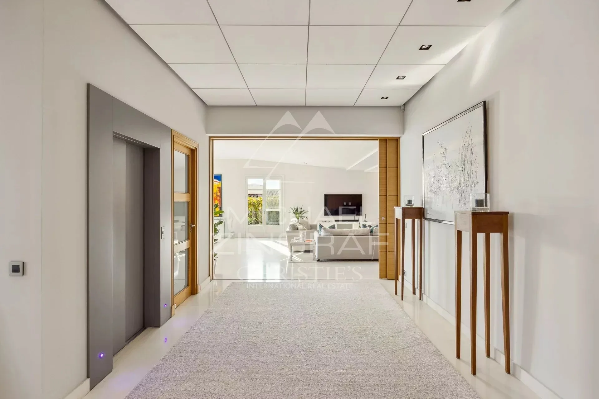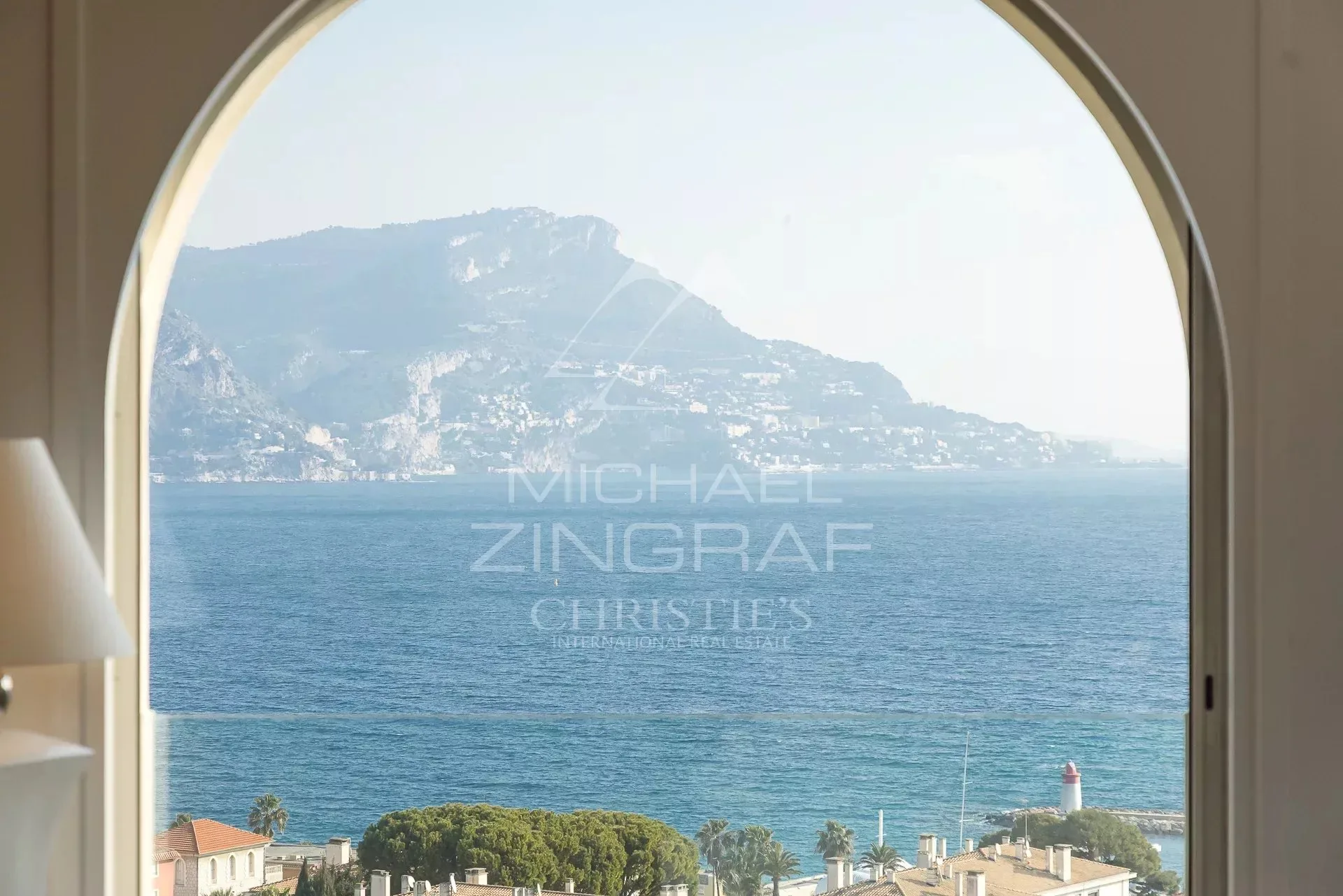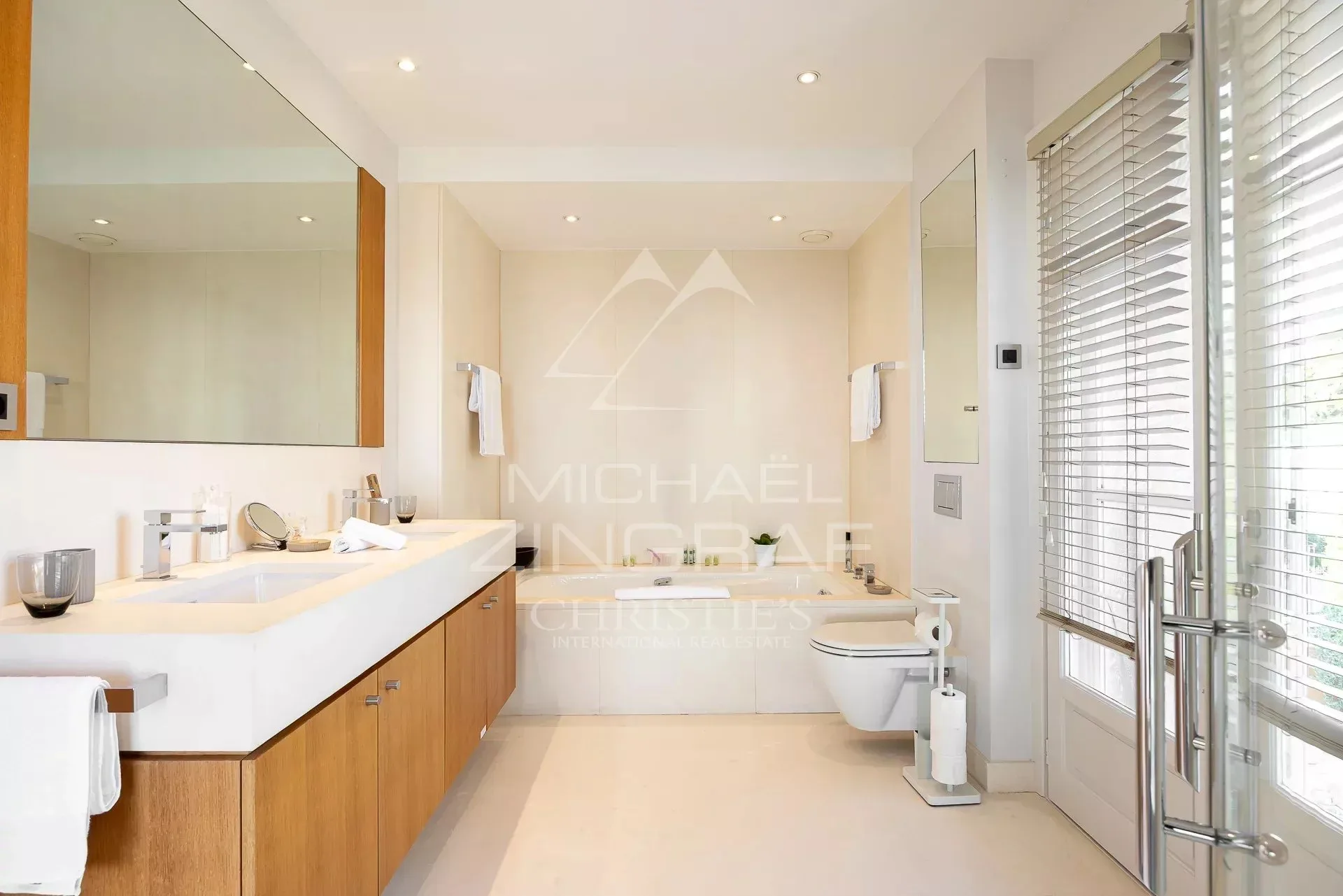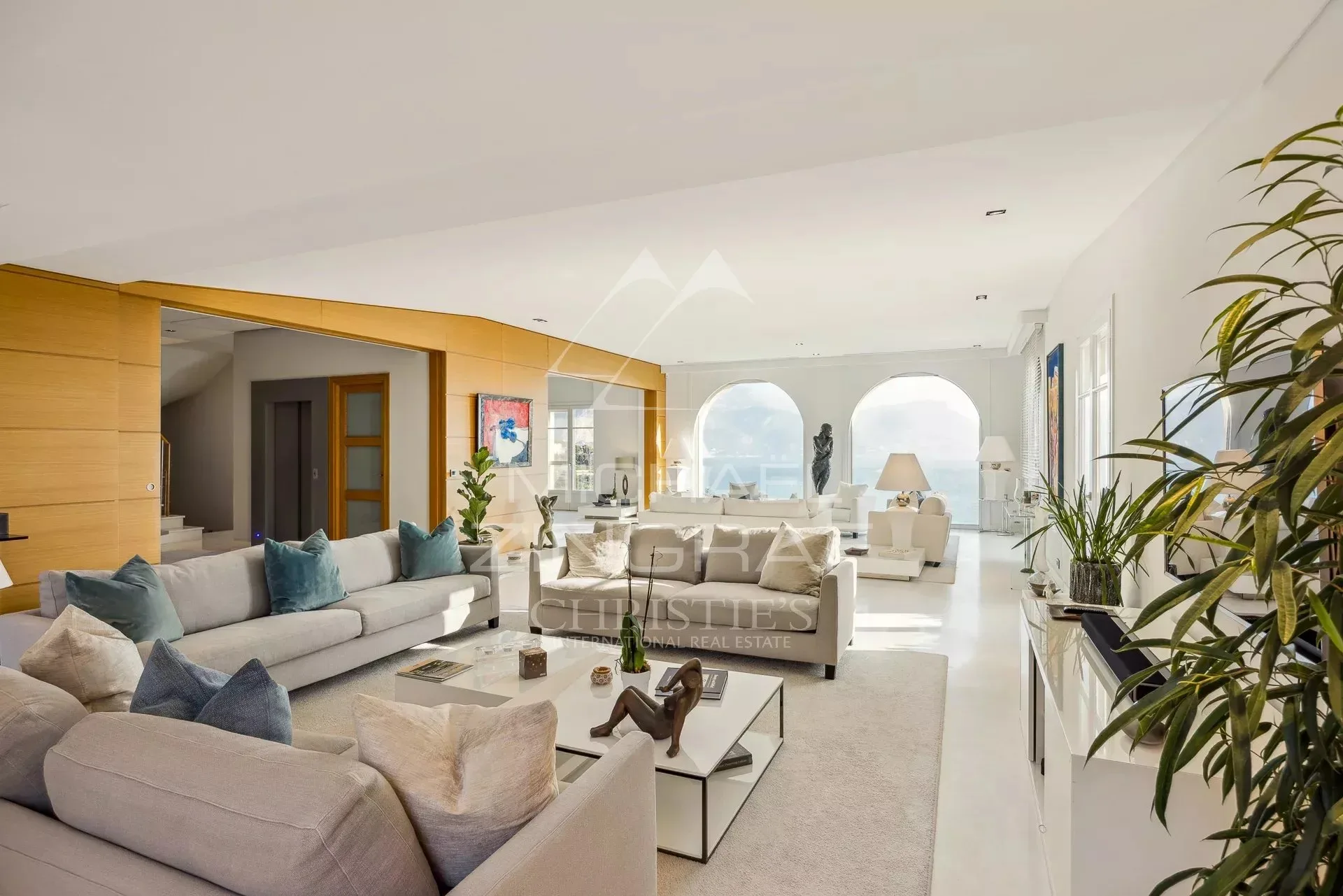Demeure de prestige d'environ 650 m² de surface habitable avec au rez-de-chaussez: hall d'entrée, vestiaire, chambre d'invités, très lumineux double séjour donnant sur le port de Saint-Jean Cap Ferrat, cuisine. Au premier étage : 5 chambres avec leurs salles de bains et dressings, kitchenette, grandes et fonctionnelle buanderie avec deux machines à laver et 2 sèche-linges. Appartement indépendant avec salon, cuisine ouverte, chambre double avec salle de douche. Piscine, terrasse, parking.
