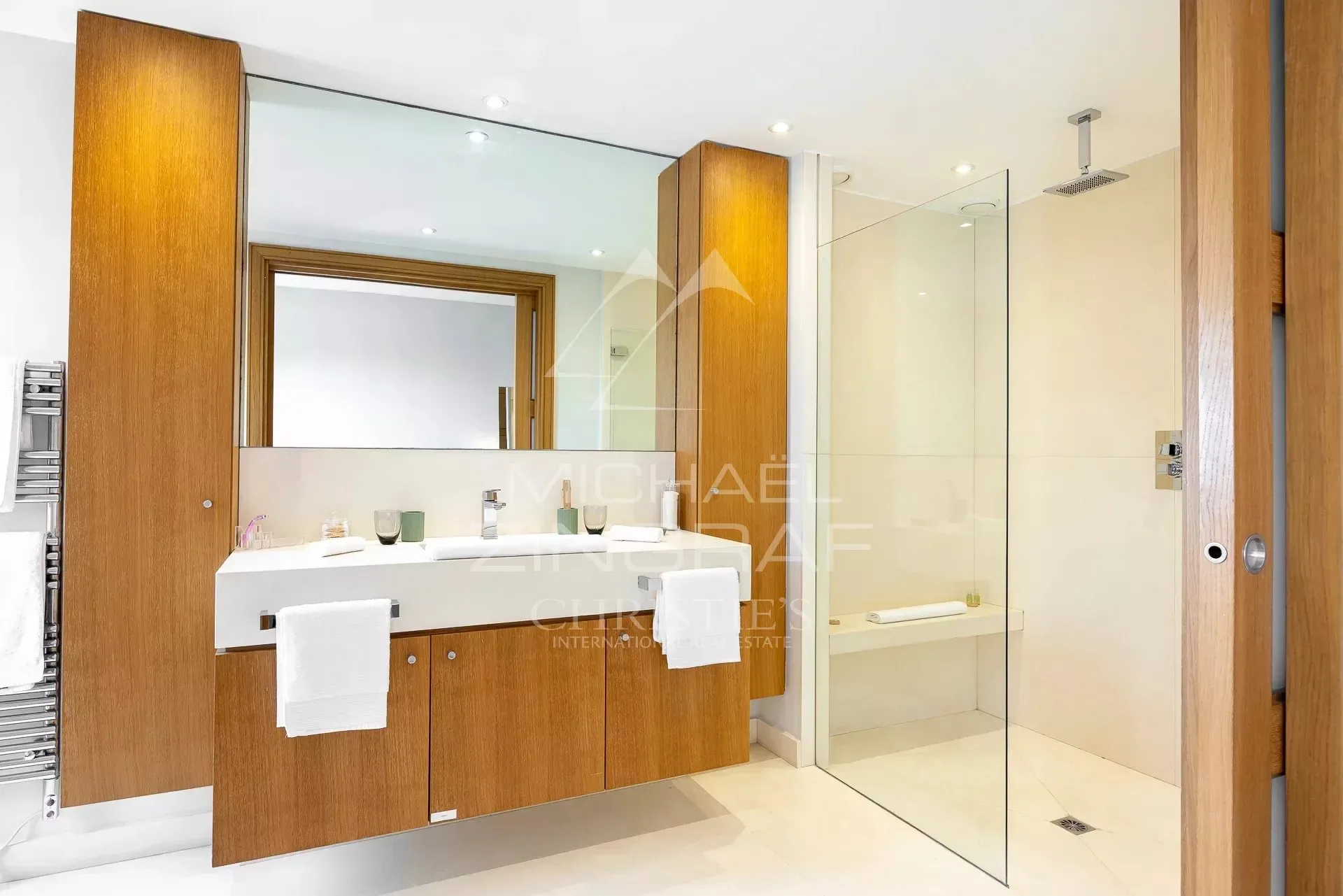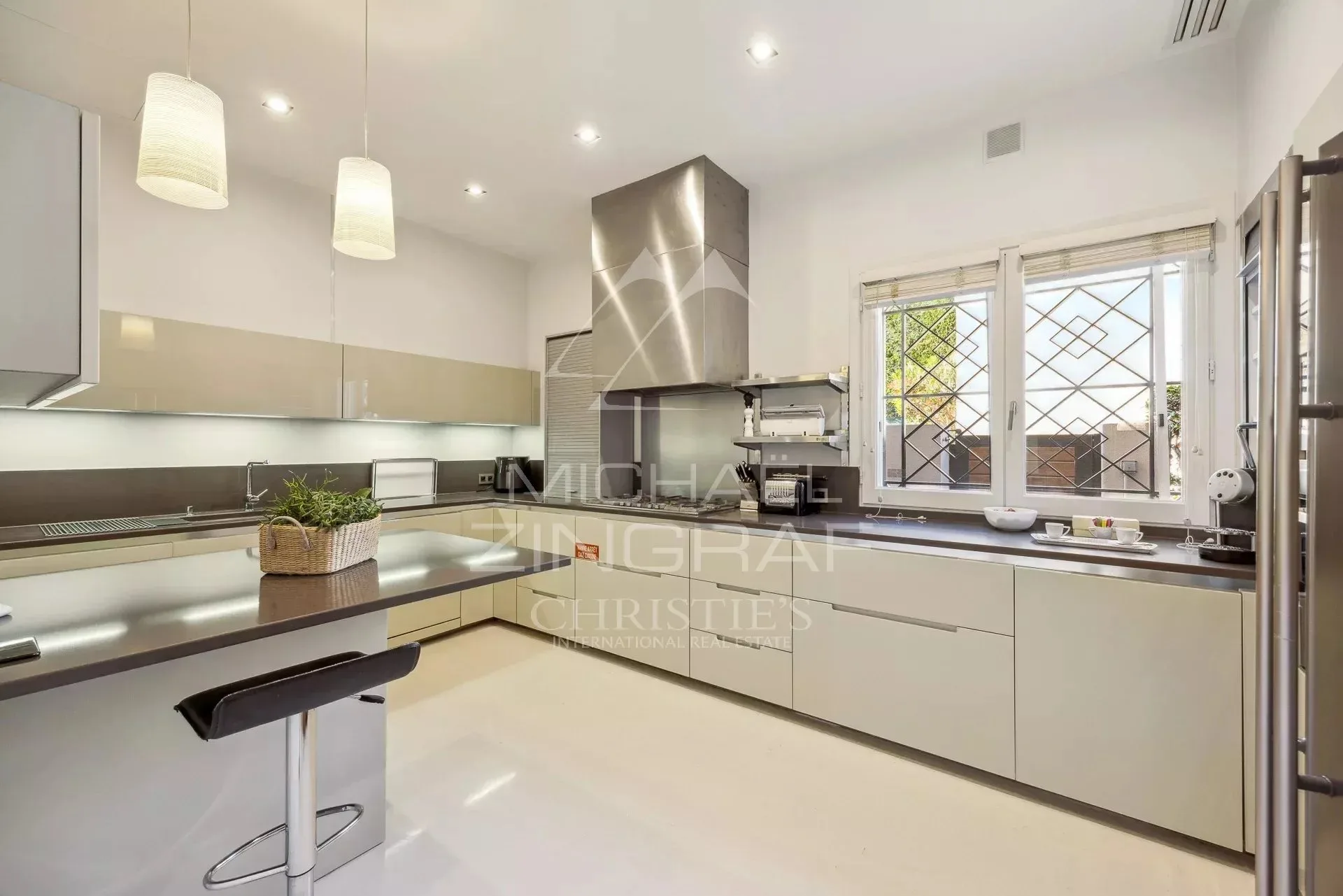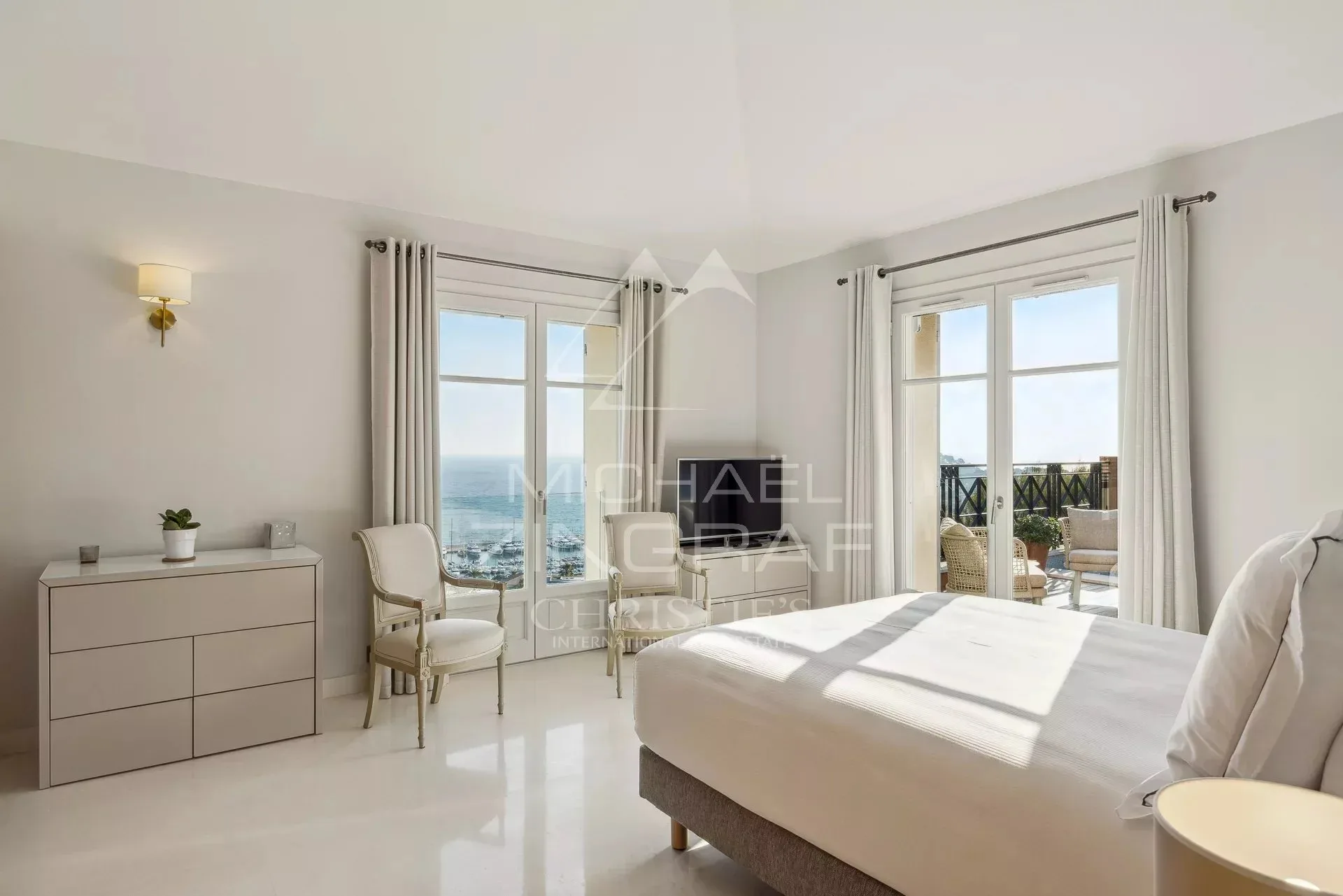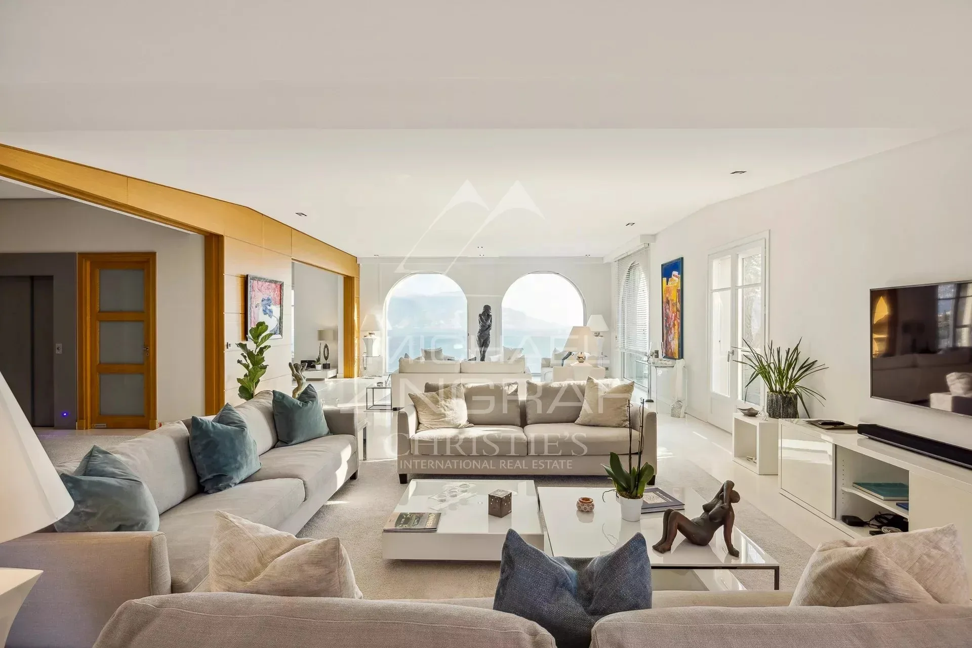 Demeure de prestige d'environ 650 m² de surface habitable avec au rez-de-chaussez: hall d'entrée, vestiaire, chambre d'invités, très lumineux double séjour donnant sur le port de Saint-Jean Cap Ferrat, cuisine. Au premier étage : 5 chambres avec leurs salles de bains et dressings, kitchenette, grandes et fonctionnelle buanderie avec deux machines à laver et 2 sèche-linges. Appartement indépendant avec salon, cuisine ouverte, chambre double avec salle de douche. Piscine, terrasse, parking.